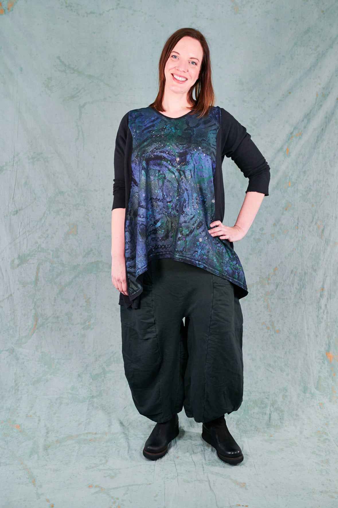1244 Organic Hemp Cotton Hi Lo Tunic-Black-P