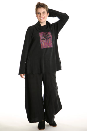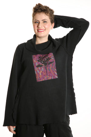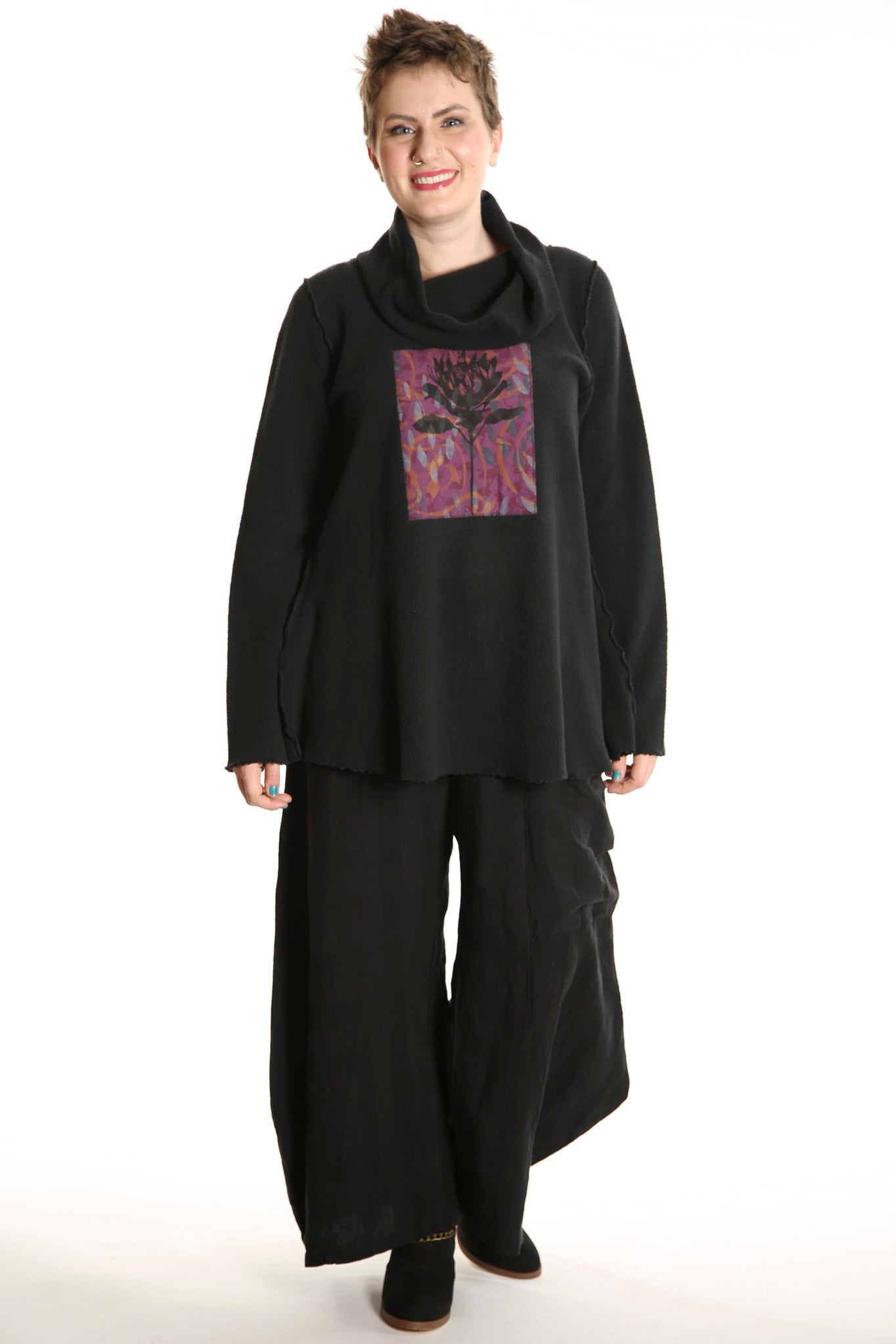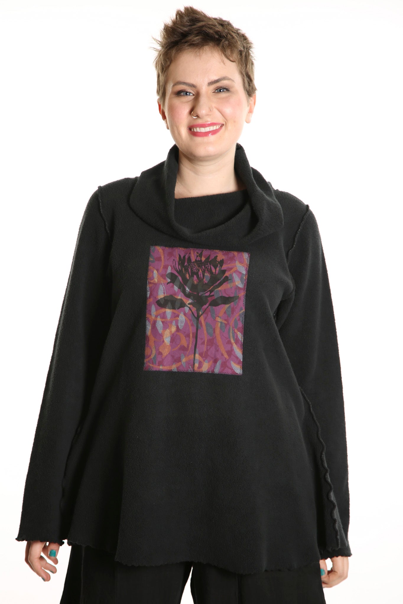 Thick,warm and soft, our organic sherpa Cafe Cowl Neck is a cozy A-line with a big cowl neck, reversed seaming and lettuce edge sleeve hems. Textured sherpa organic cotton to the outside, or reverse if you wish.
