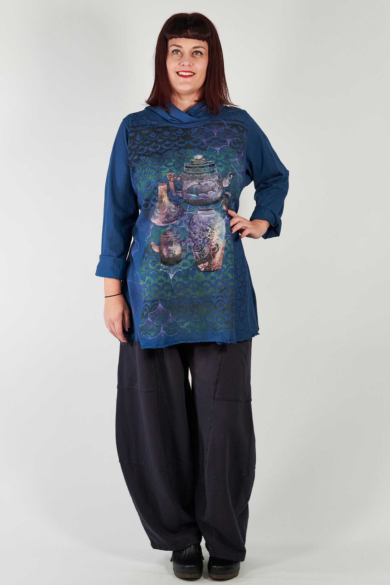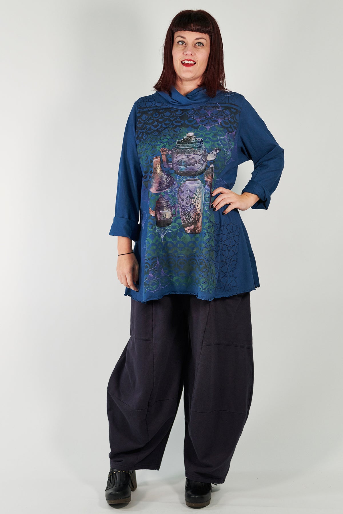 A favorite style in organic cotton! This long tee is a basic you'll use all year long. This is just the thing to layer with your favorite coats, jackets, & sweaters. Cowl neck adds style and will keep you warm.