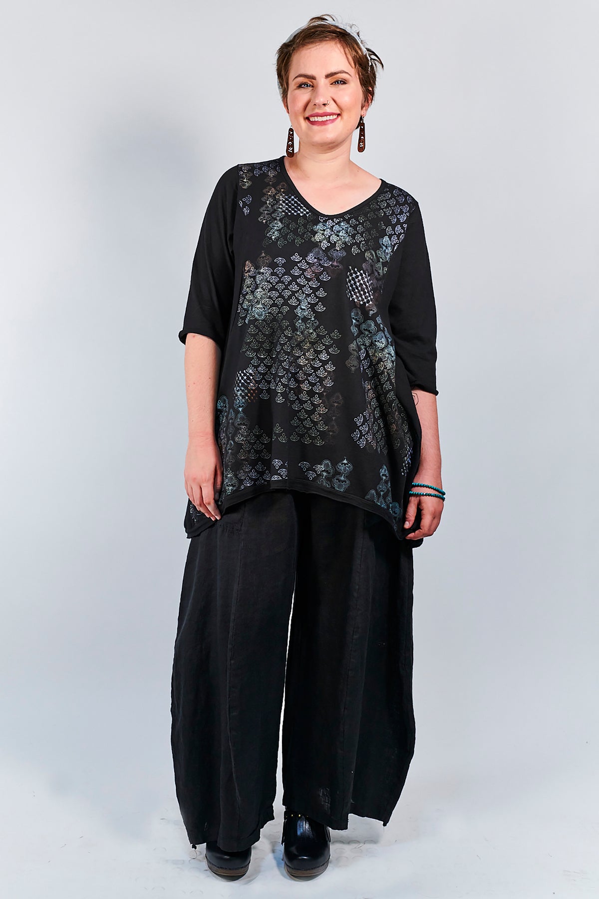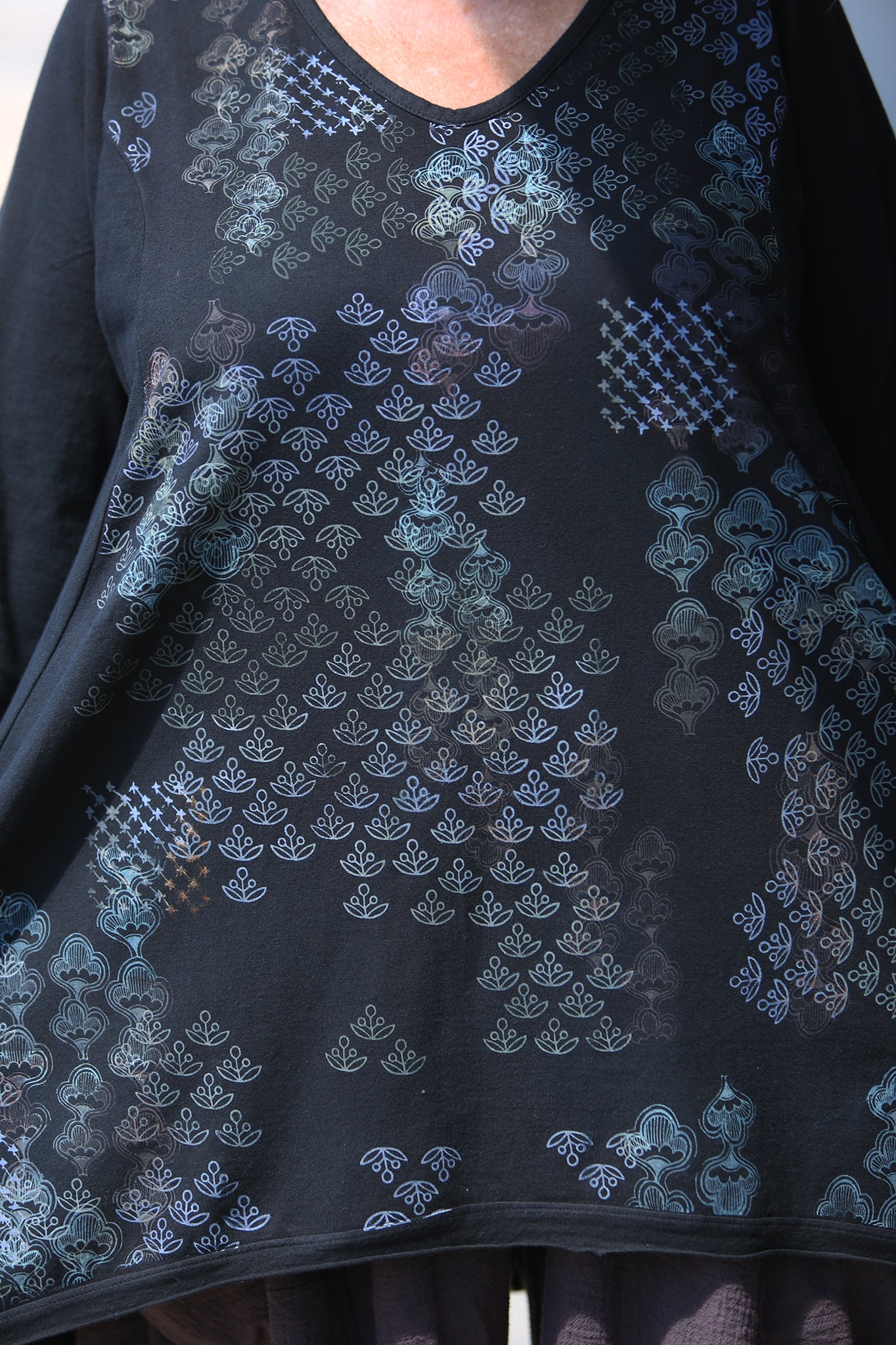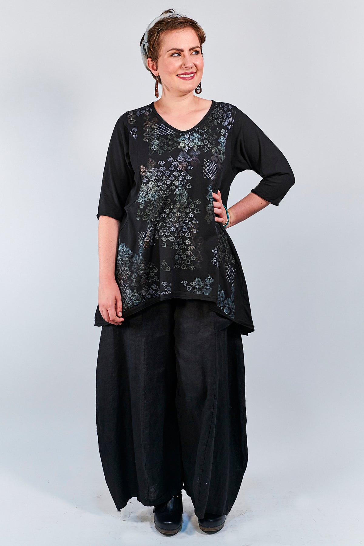 Pair with any blue fish pants, or layer a Slant Skirt over the pants. A lightweight and pretty top to wear through fall and into winter. Click on the small pictures below the main picture to see details and different shots.