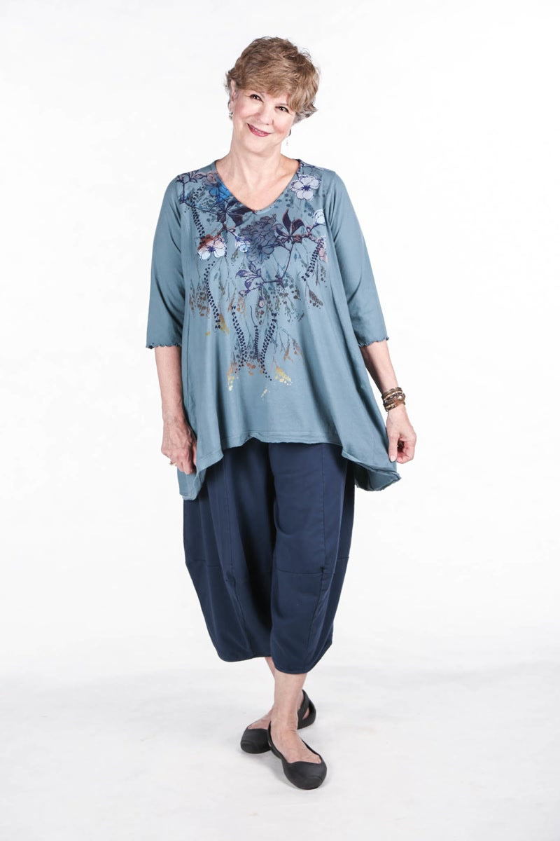 Pair with any blue fish pants, or layer a Slant Skirt over the pants as shown in some of our photos. A light and pretty top to wear into spring and through summer. Click on the small pictures below the main picture to see details and different shots.