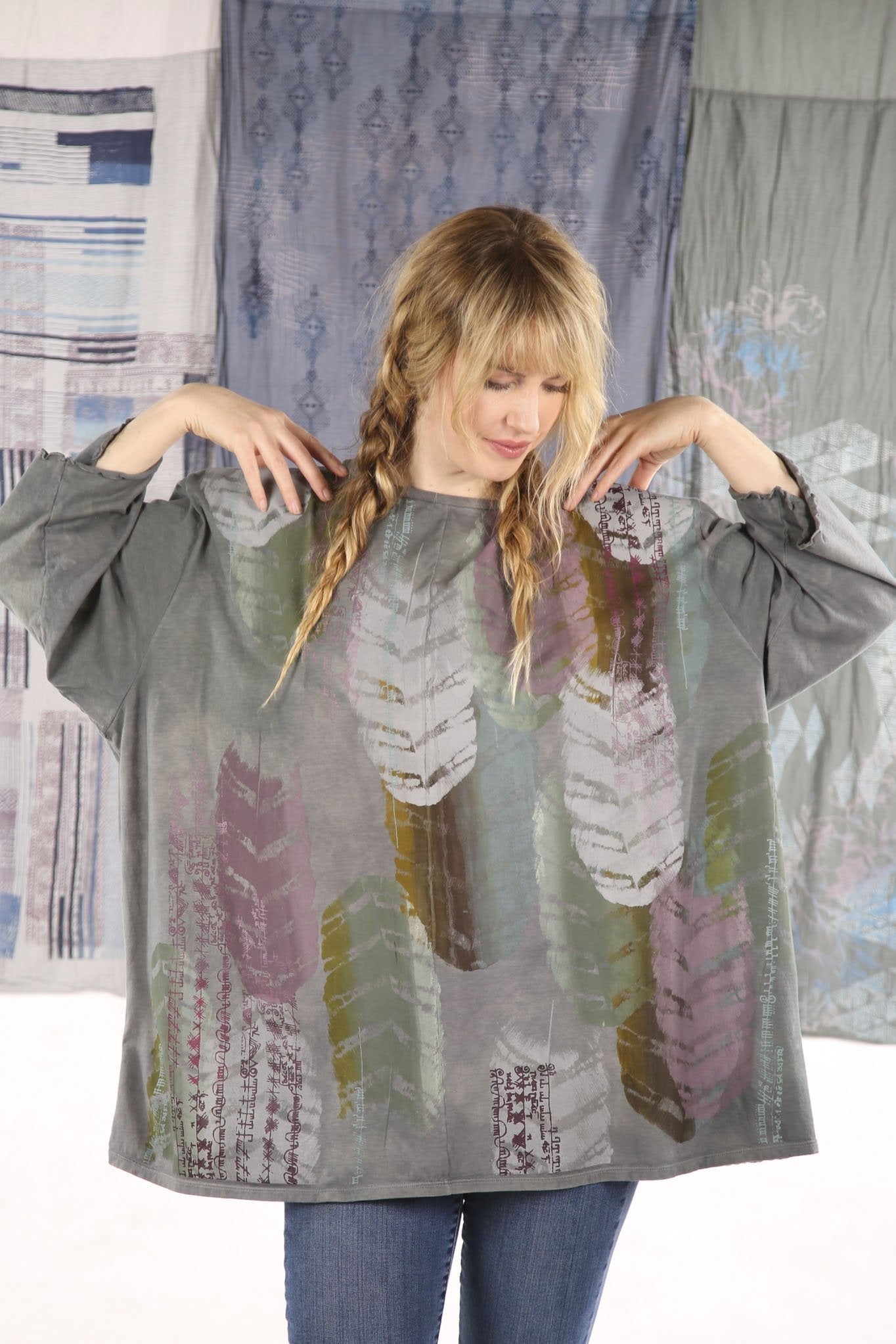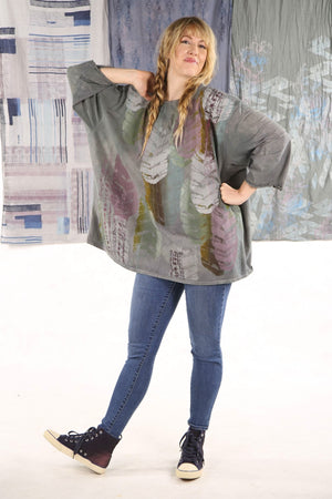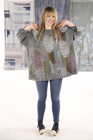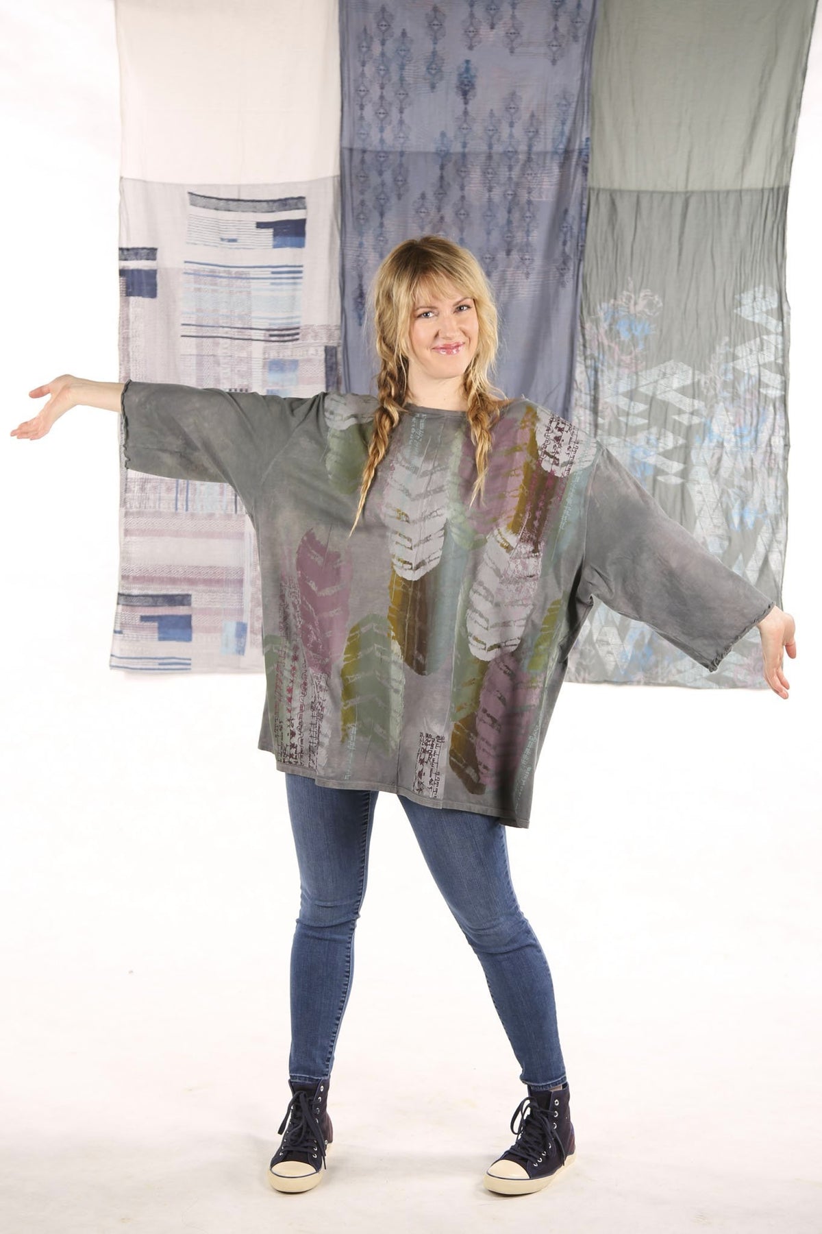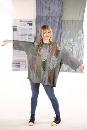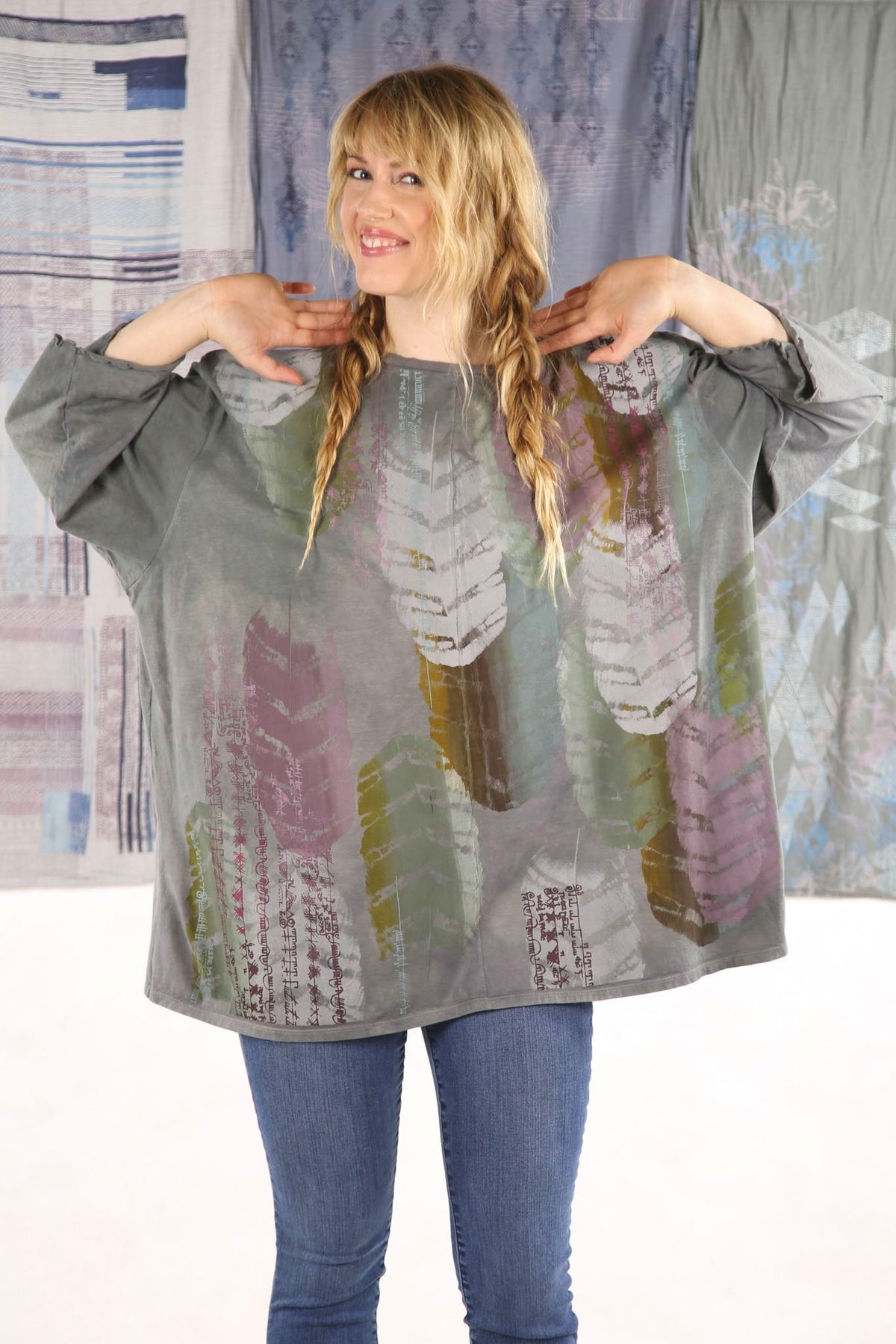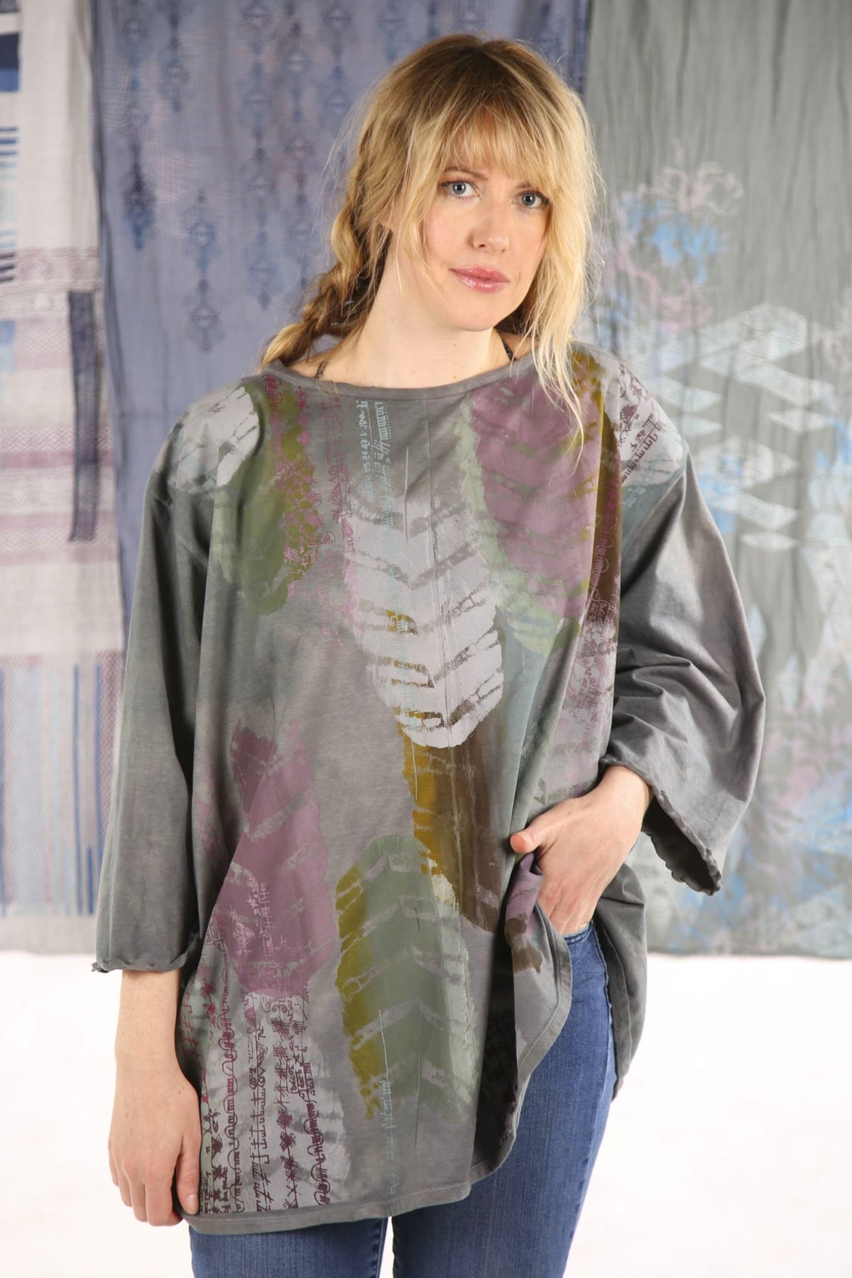 Perfect one-size soft, organic cotton tunic to wear now and all summer...New colorful  & magical multi-layered designs in color drenched shades that we have hand printed for maximum effect. Limited quantities. Double hand dyed and layered multi-tonal printing. Very oversized. Perfect for lounging.