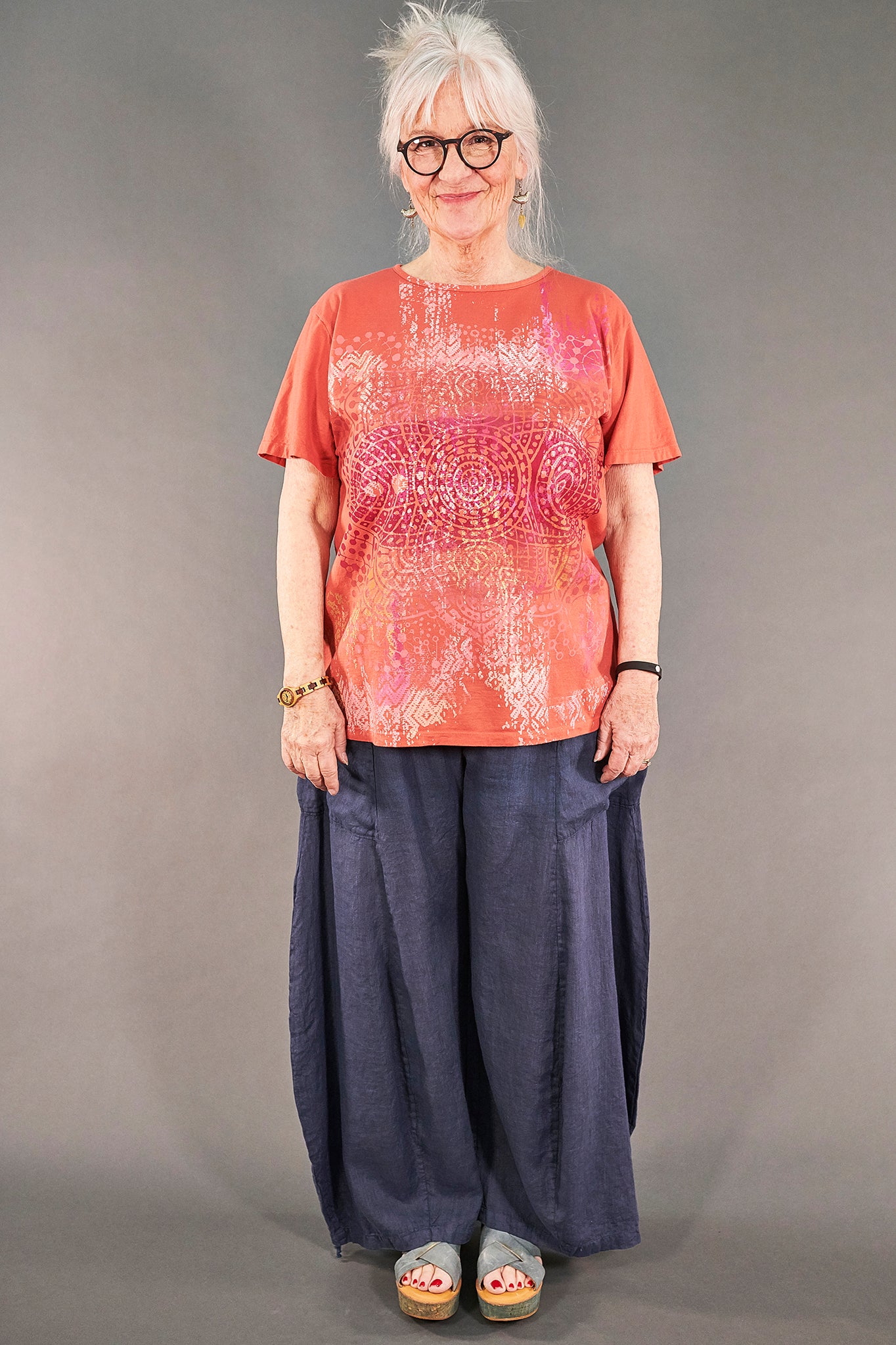 I have to tell you this story: My mom was wearing this really great old Blue Fish tee--not too big, nice & boxy, quite simple. It had a fruit bowl block printed on the front. I looked at the label on the back--1990! This tee is 28 years old! She still wears it & it looks better than new! I almost started crying, because--it hit me--28 years?! These clothes last & last and people truly LOVE them! That hits me right in the heart, in a good way. This is why I do this. My mom is the type who wears jeans and a Blue Fish t-shirt every day. She doesn't like anything too far-out. She has a fabulous collection. Needless to say, I kidnapped this tee and here it is, remade for 2018! I call it the Berna tee in honor of my amazing mom, who has worn Blue Fish forever... just like a lot of you. Thank you! xo, Jen