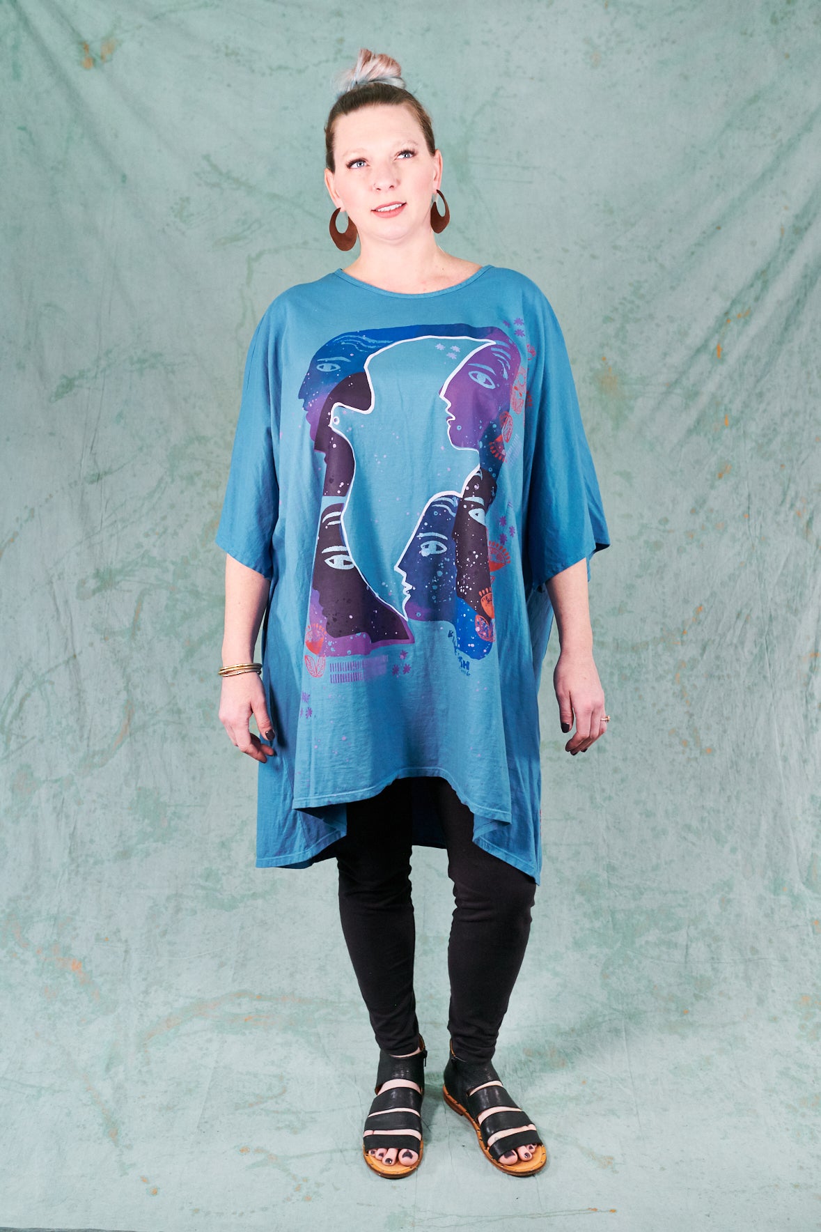 The square shape is soft, flowy, & flattering on many body types. Wear yours like a tee with pants--like a tunic with leggings--dress it up with a necklace, skirt, & nice shoes! This tunic can be anything you want it to be. Let your imagination out to play!