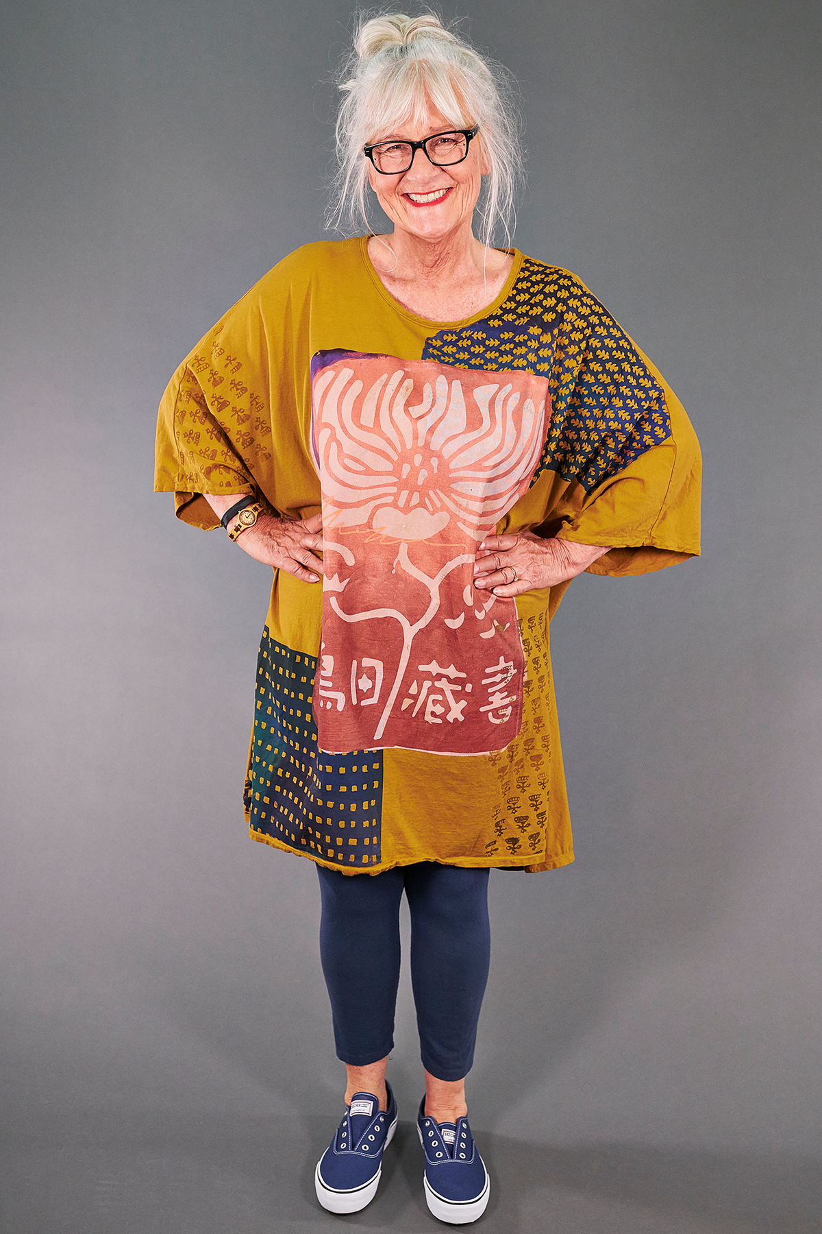 Just get it! You’ll never find anything like it in a million years. Truly a work of art. This one-size, organic cotton tunic is adorned all over the front with layers & layers of delicate, imaginative imagery from our Fairfield, Iowa studio. Our artists loved decorating these! The large, square size gives them lots of space for printing--each is a “walking canvas” of visual artistic delight.