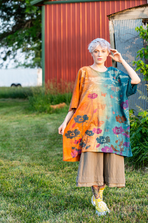 You’ll never find a hand dyed and artfully hand printed garment like this in a million years. Truly a work of art.