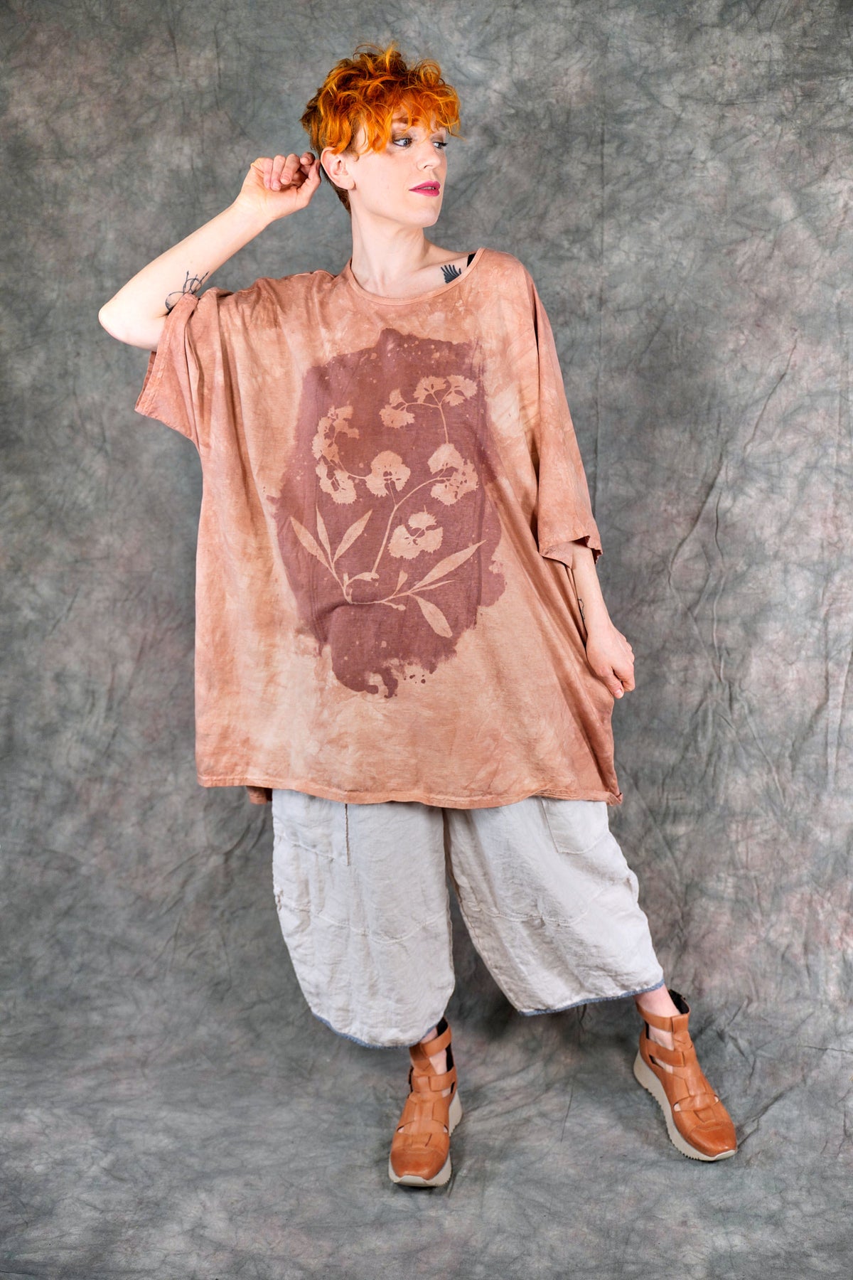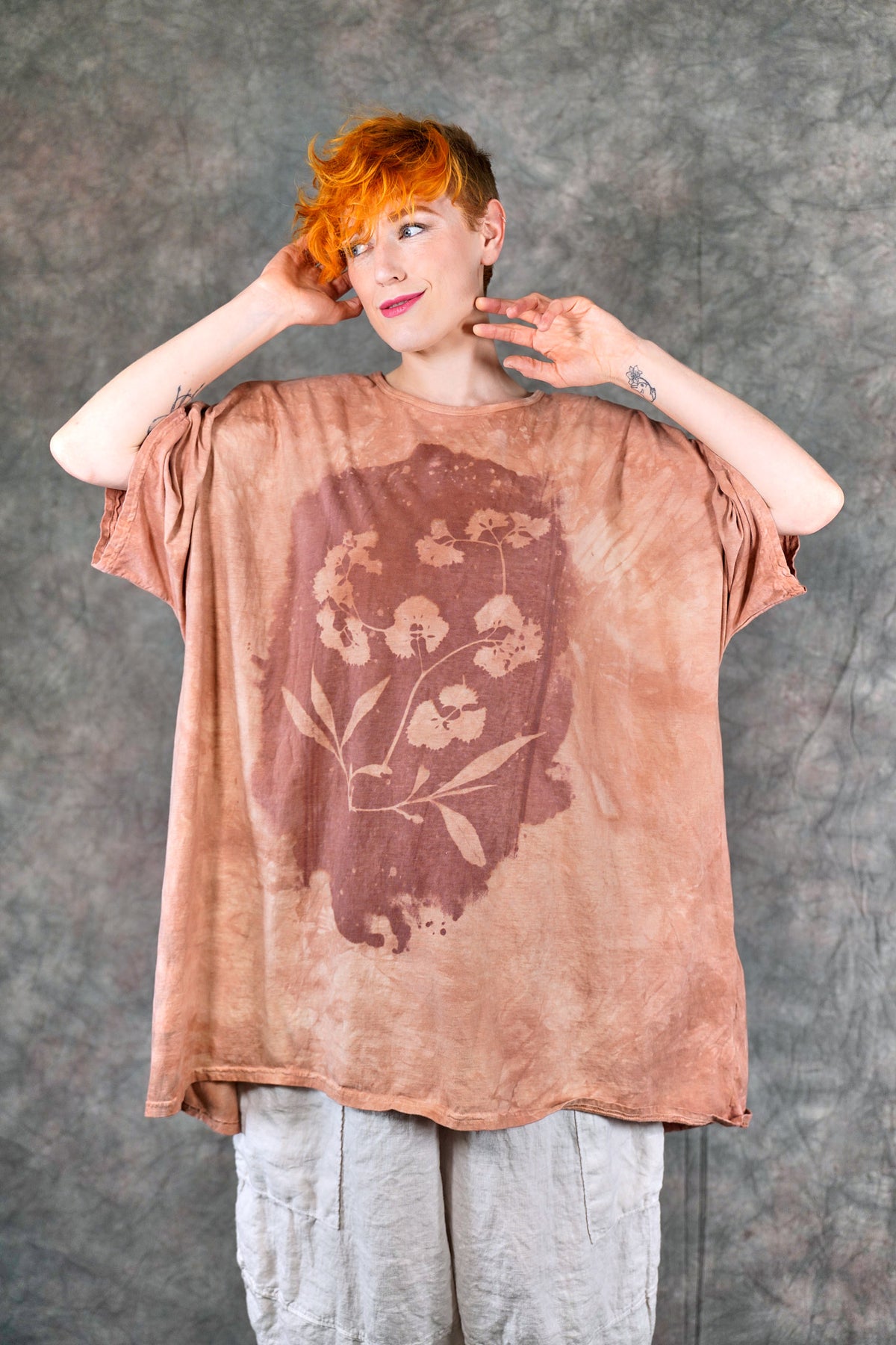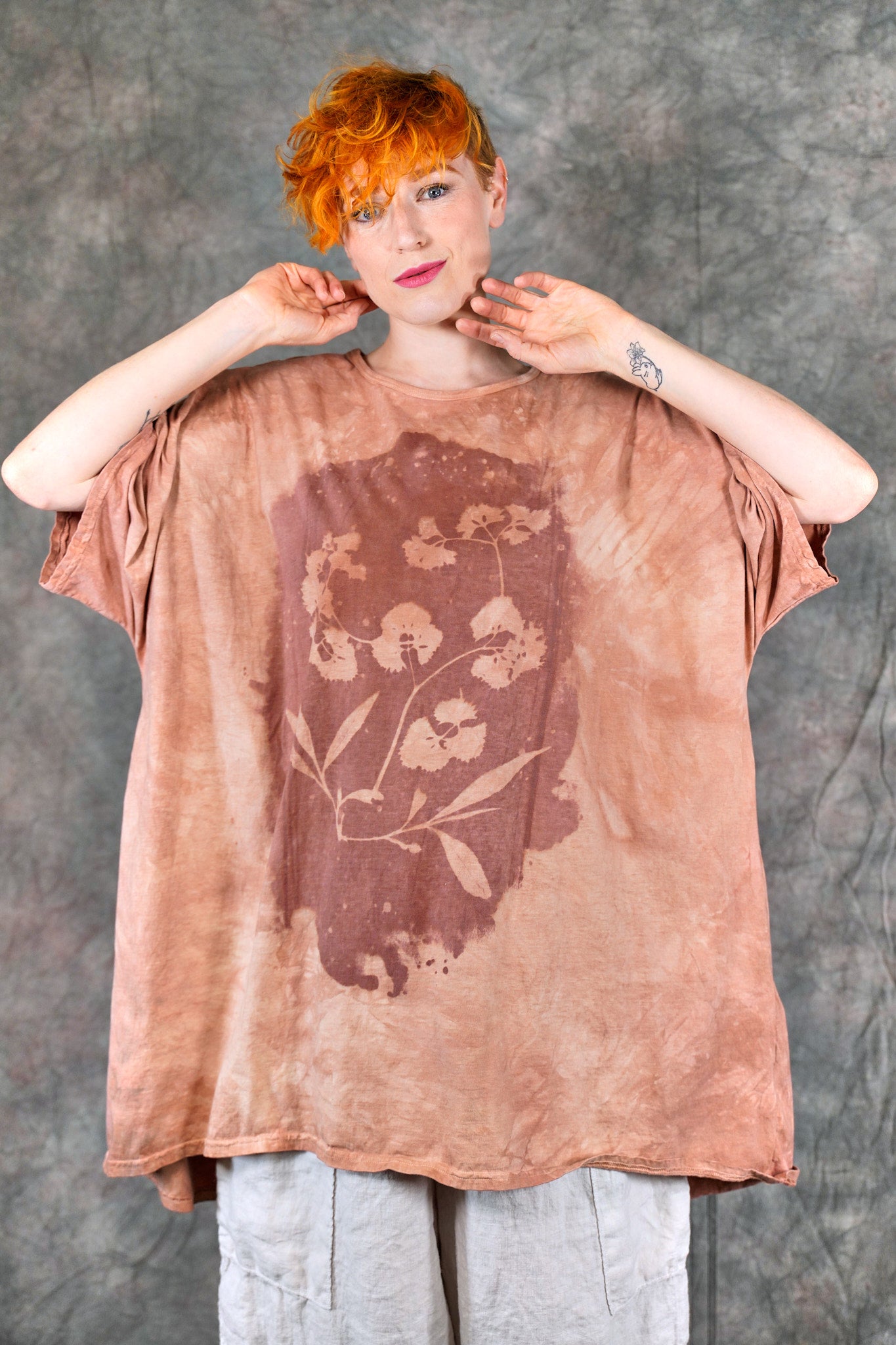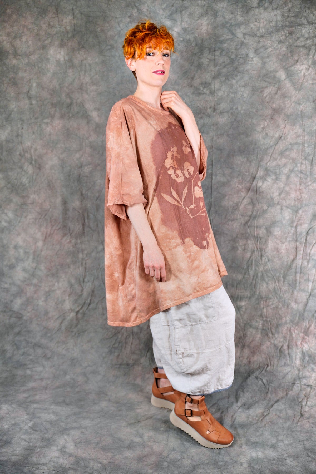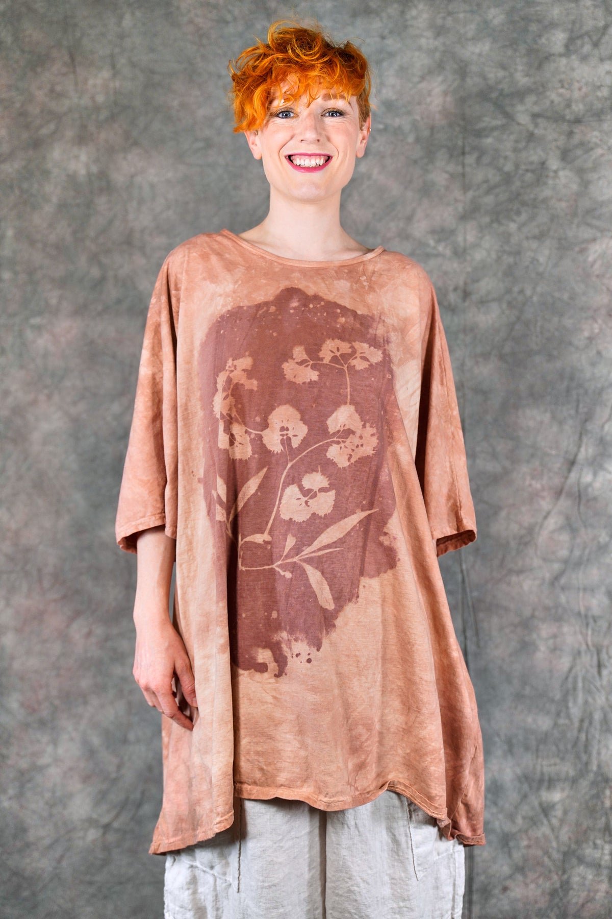 You’ll never find anything like it. Truly a work of art. This one-size, organic cotton tunic is adorned with delicate, imaginative photogram-inspired imagery from our Fairfield, Iowa studio.