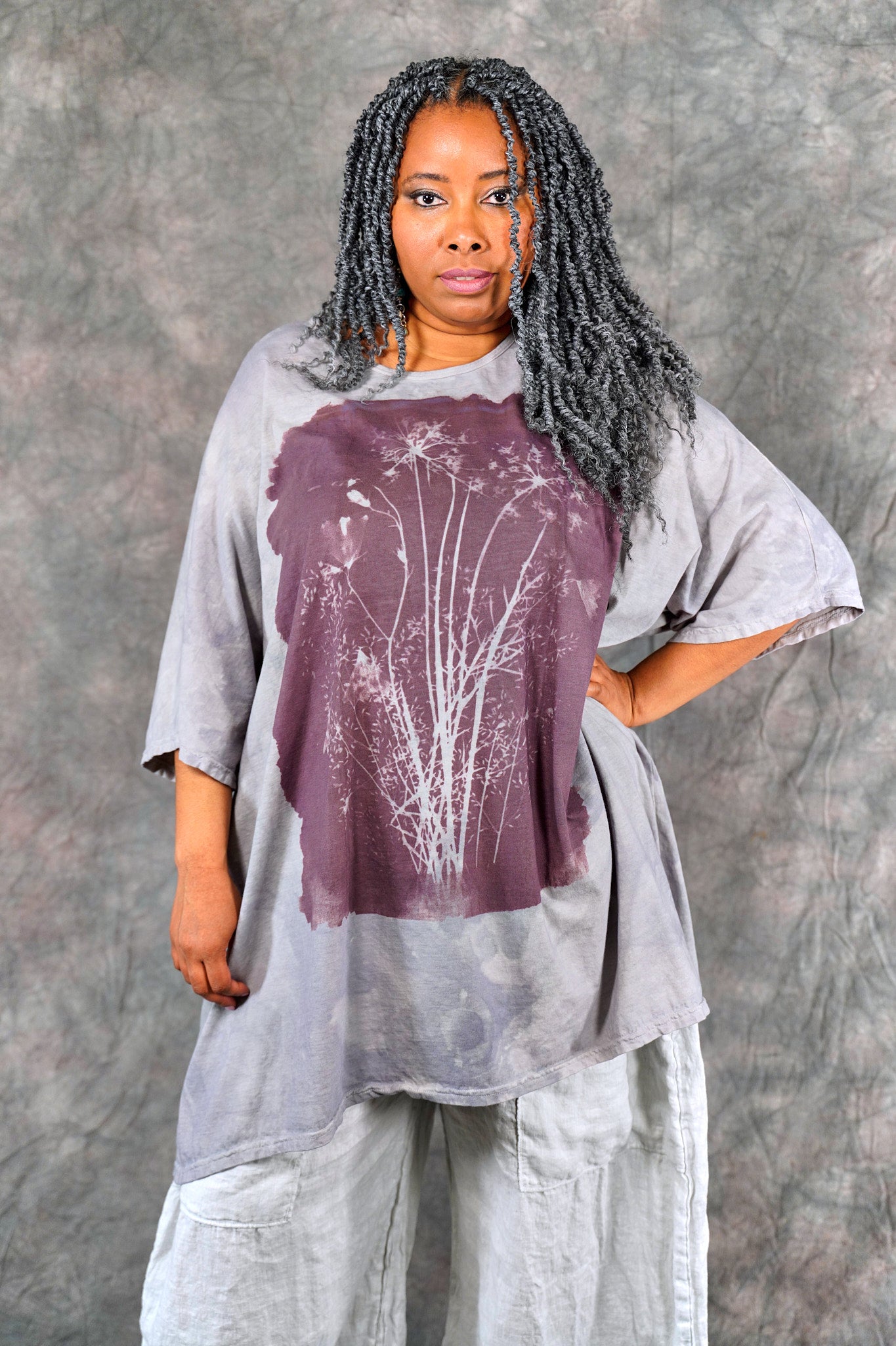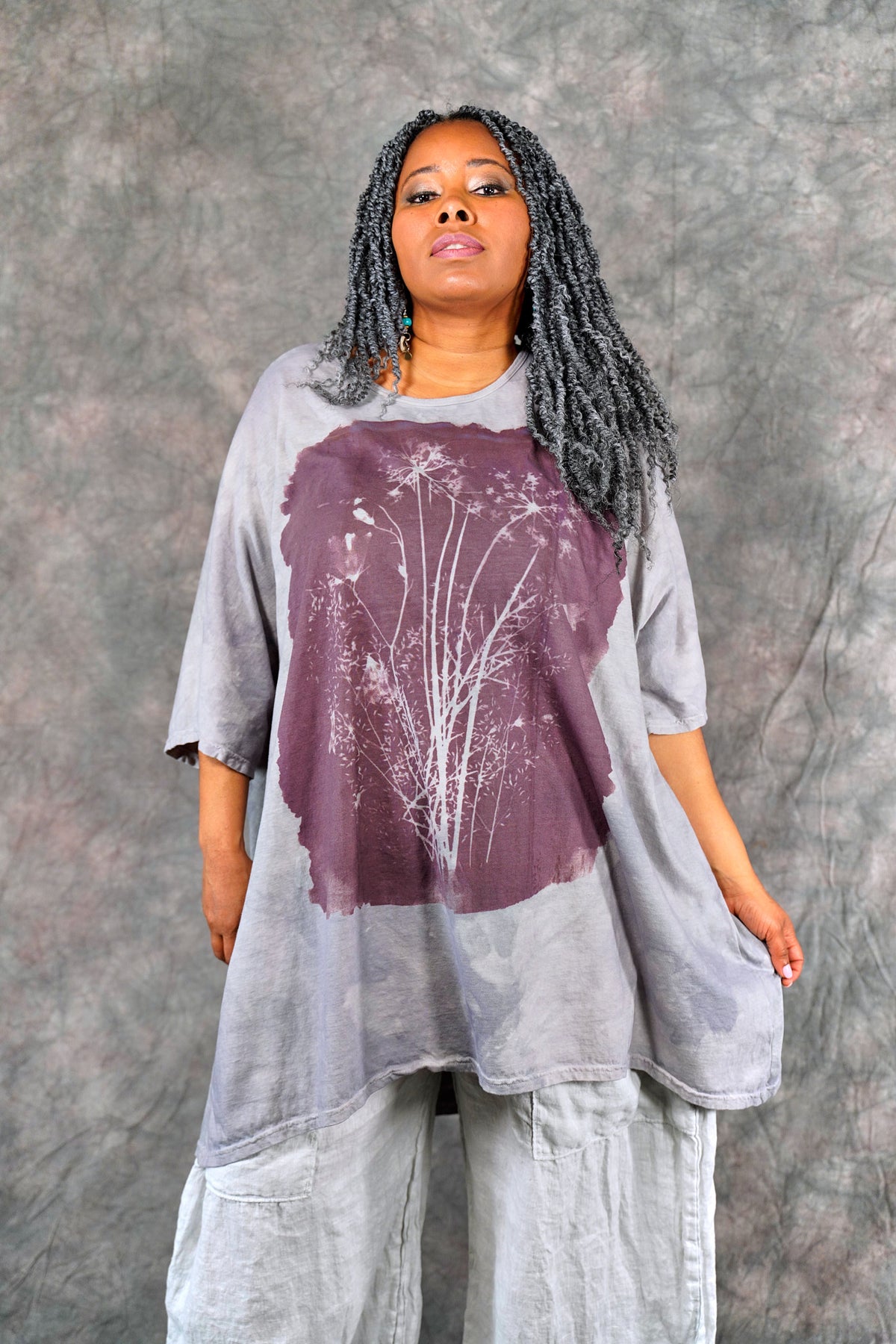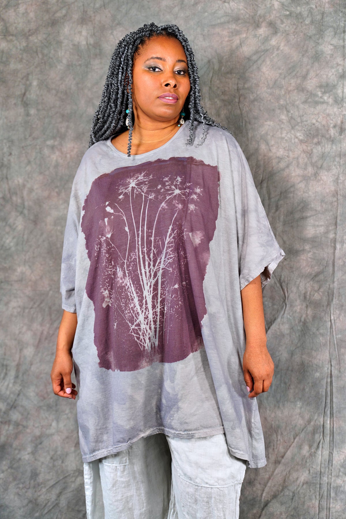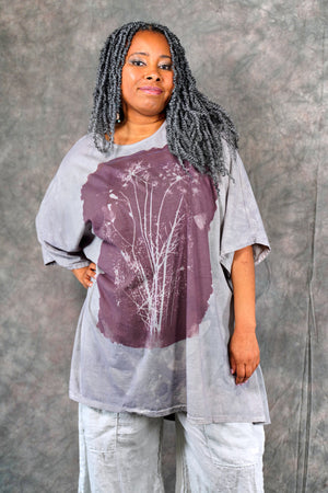 You’ll never find anything like it in a million years. Truly a work of art. This one-size, organic cotton tunic is adorned with delicate, imaginative photogram inspired imagery from our Fairfield, Iowa studio.