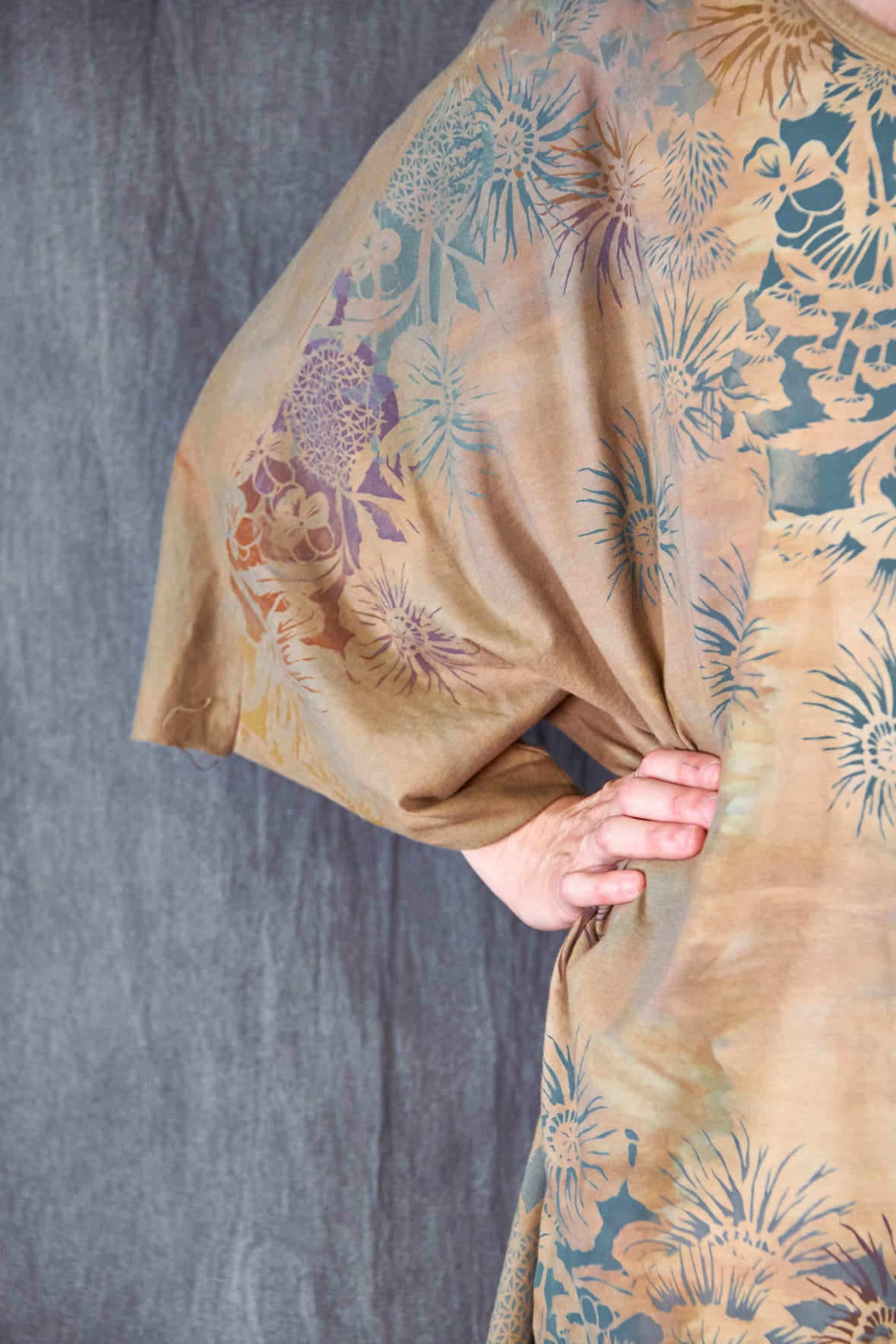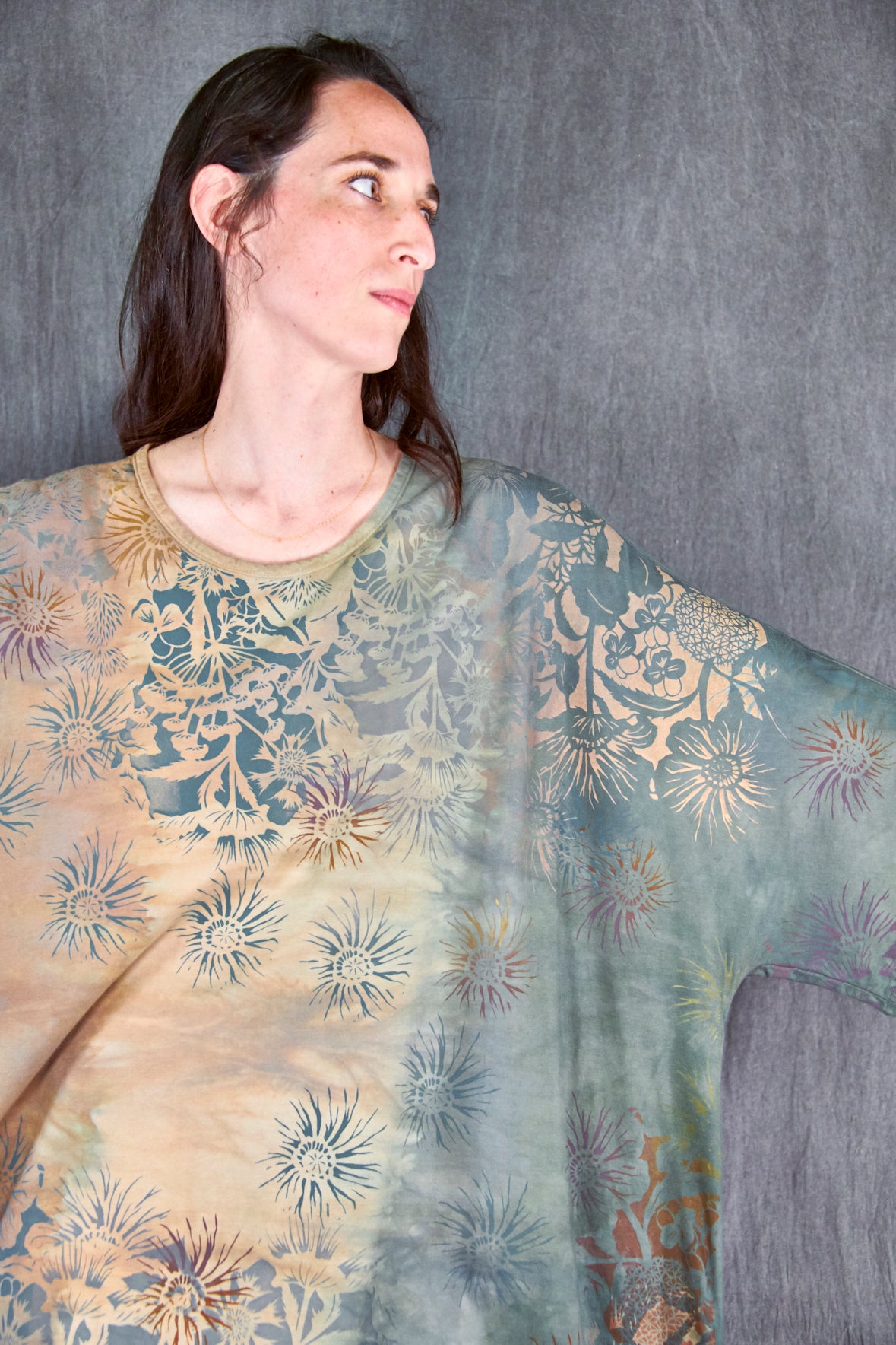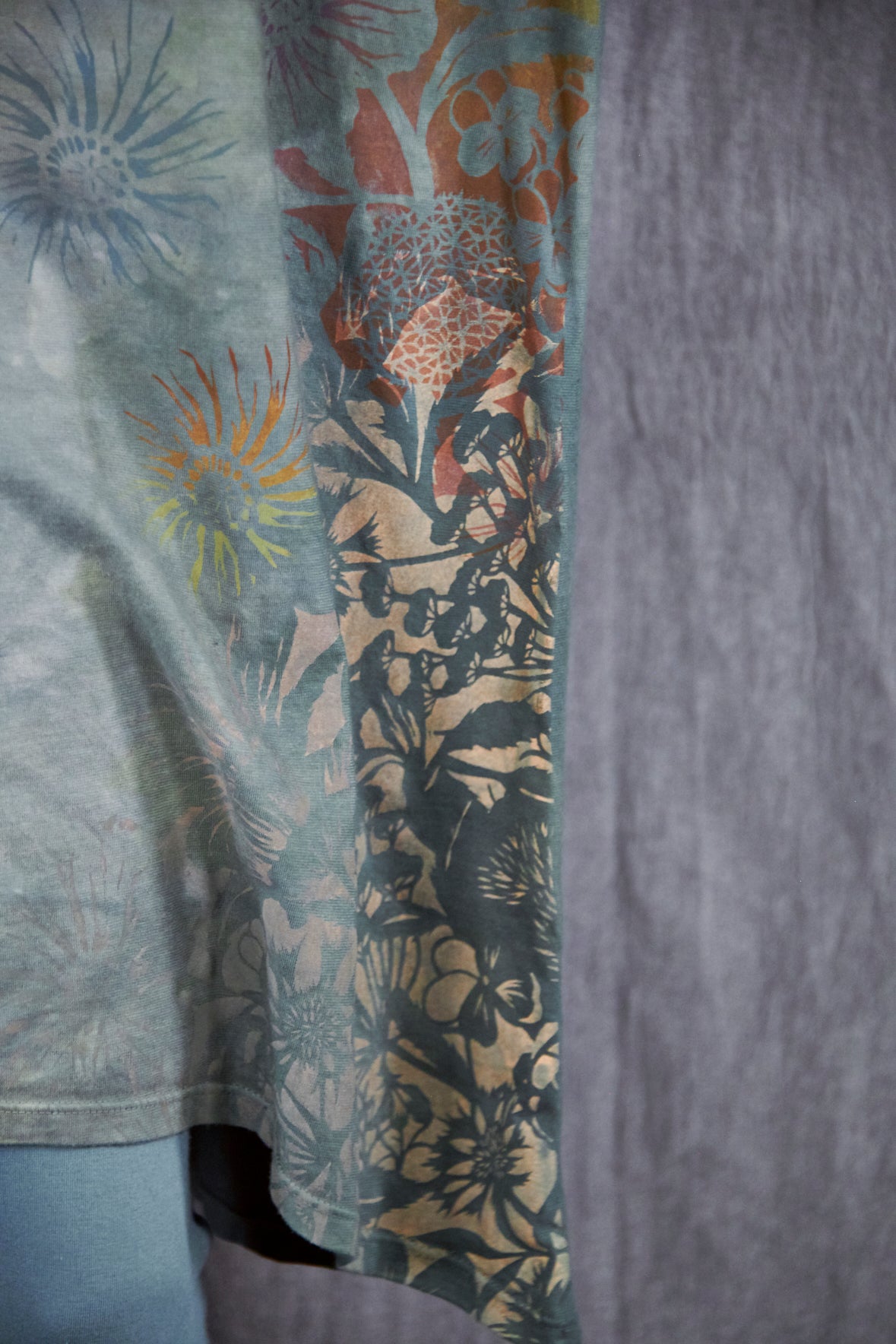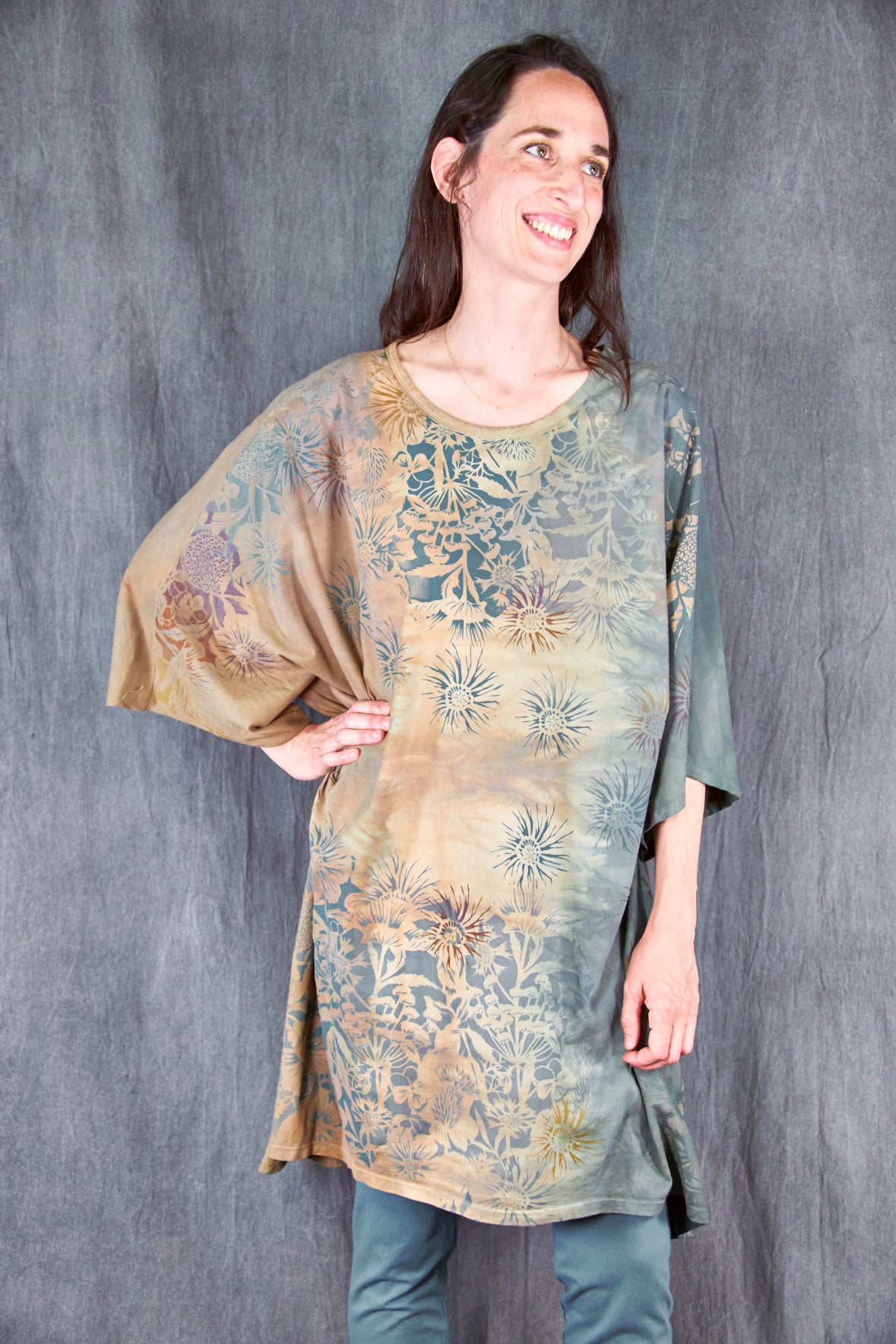 The colors are richer and more vibrant than the photo shows. The square shape is soft, flowy, & flattering on many body types. Wear yours like a tee with pants--like a tunic with leggings--dress it up with a necklace, skirt, & cool shoes. This tunic can be anything you want it to be. Let your imagination out to play!
