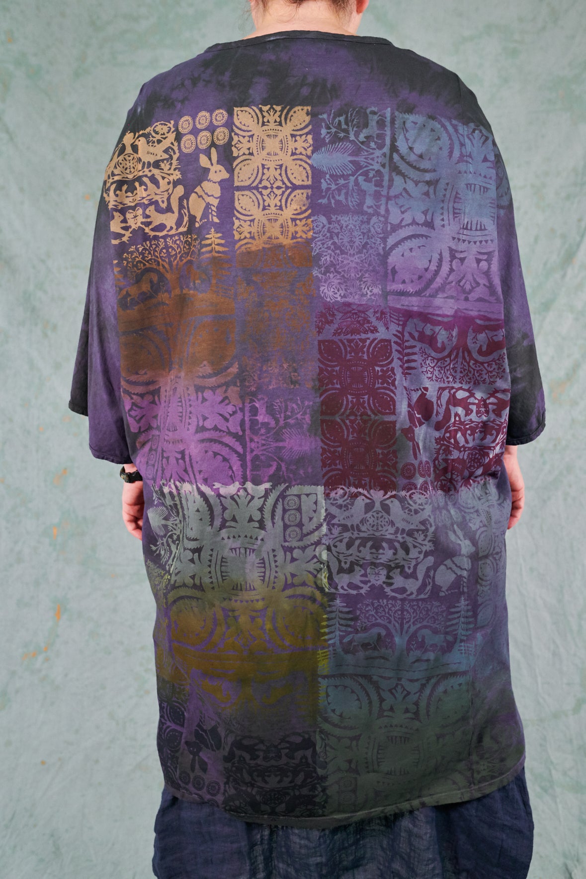 Just get it! You’ll never find anything like it in a million years. Truly a work of art. This one-size, organic cotton tunic is adorned on the front with iconic imagery from our Fairfield, Iowa studio. Our artists loved creating bright enlivened imagery for these! The large, square size gives them lots of space for printing--each is a “walking canvas” of visual artistic delight.
