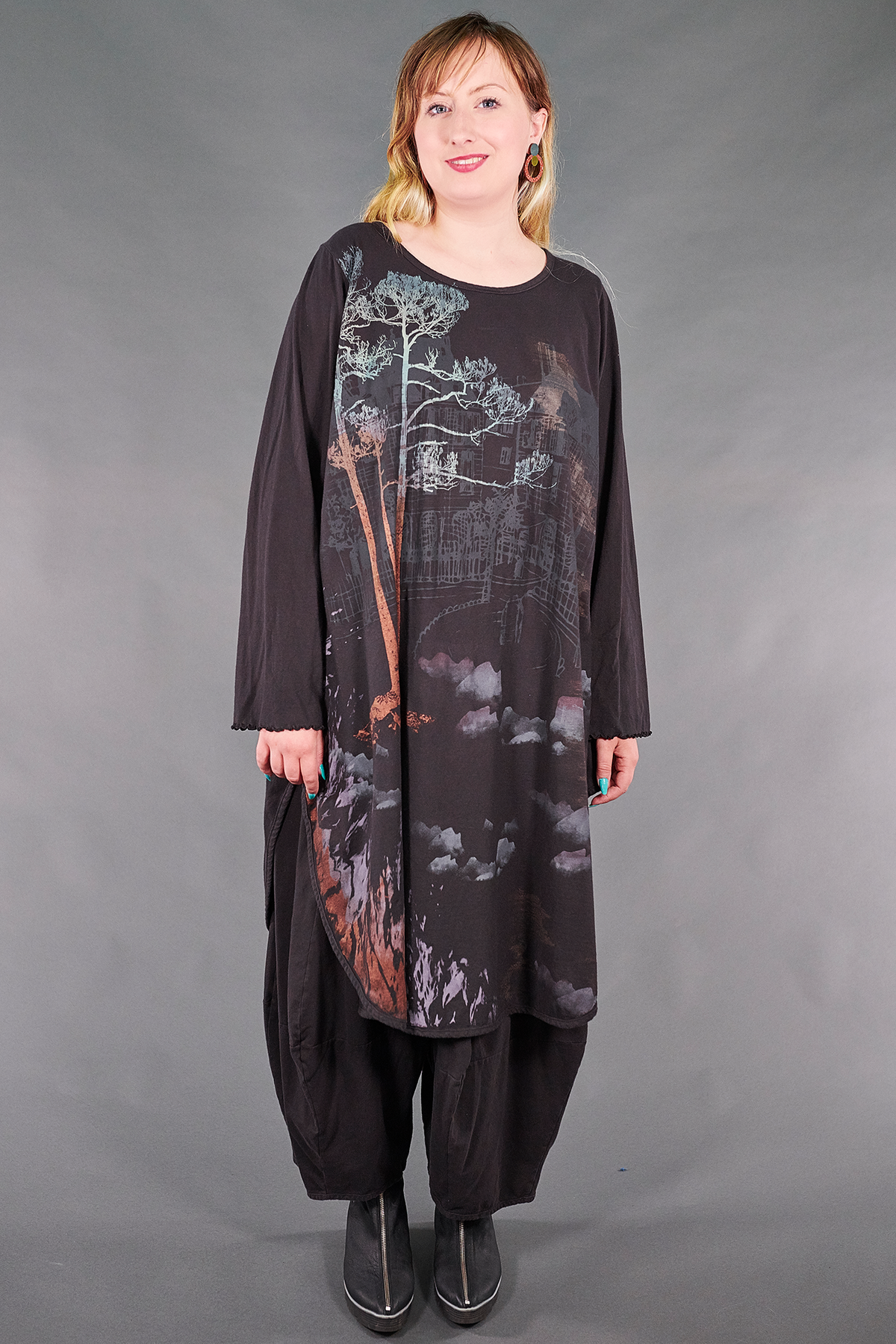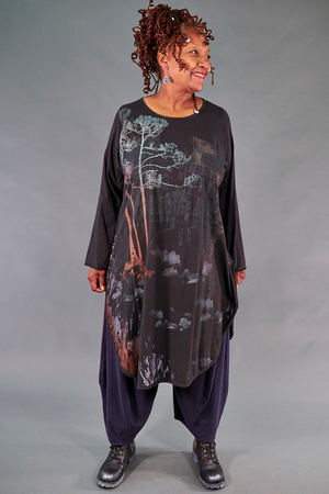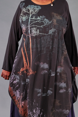 A new twist on our beloved longer tunic styles. Inspired by an Indian Kurta, this tunic has unique hem that curves upwards, leaving an elegant slit on each side. This feature makes the fabric flow beautifully with movement. The trees featured in this print were photographed by our designer Jen Barclay during a recent trip to Florida--lone survivors of the last hurricane, still living today.