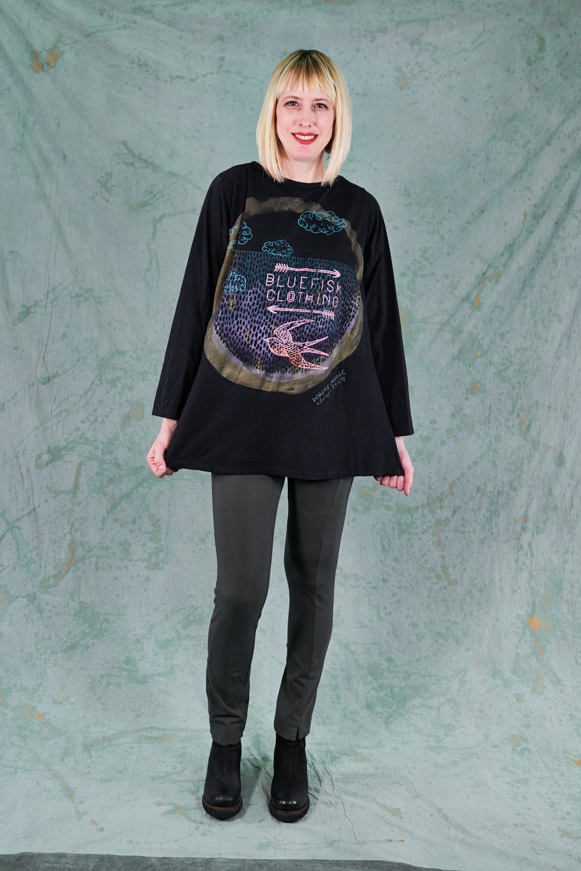 Truly exquisite! Our artists had so much fun decorating this top, & we know you're going to enjoy wearing it, too. This shirt is fitted through the arms to create a more tailored silhouette than our Cafe & Studio Tees--we love how elegant it looks on alone or layered underneath a jacket! Layers of imaginative artwork make this a new favorite...