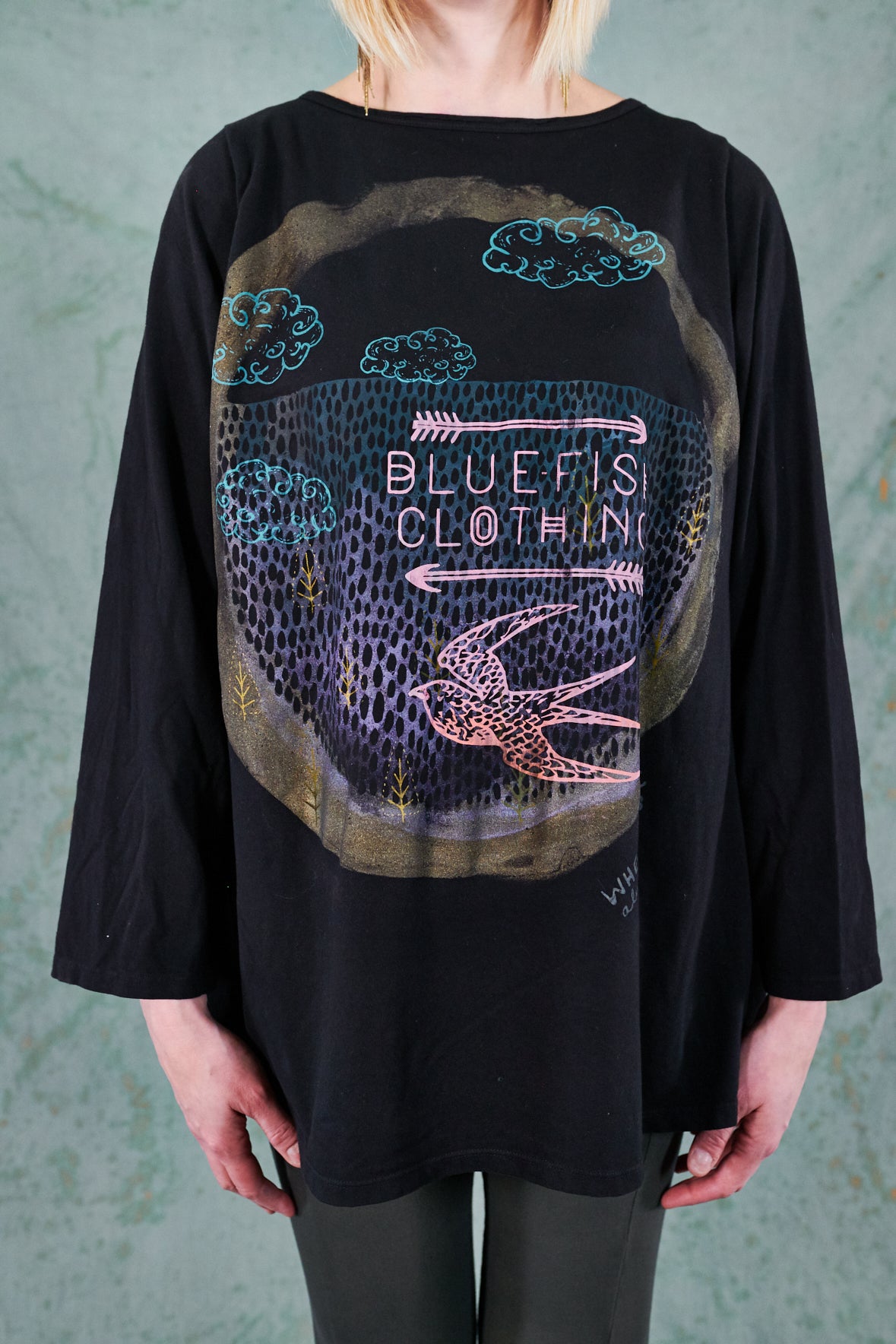 PLEASE NOTE: Each Blue Fish piece is a one-of-a-kind, artisan-made piece of textile art created & printed by hand, meaning that some slight variation may occur between individual products.