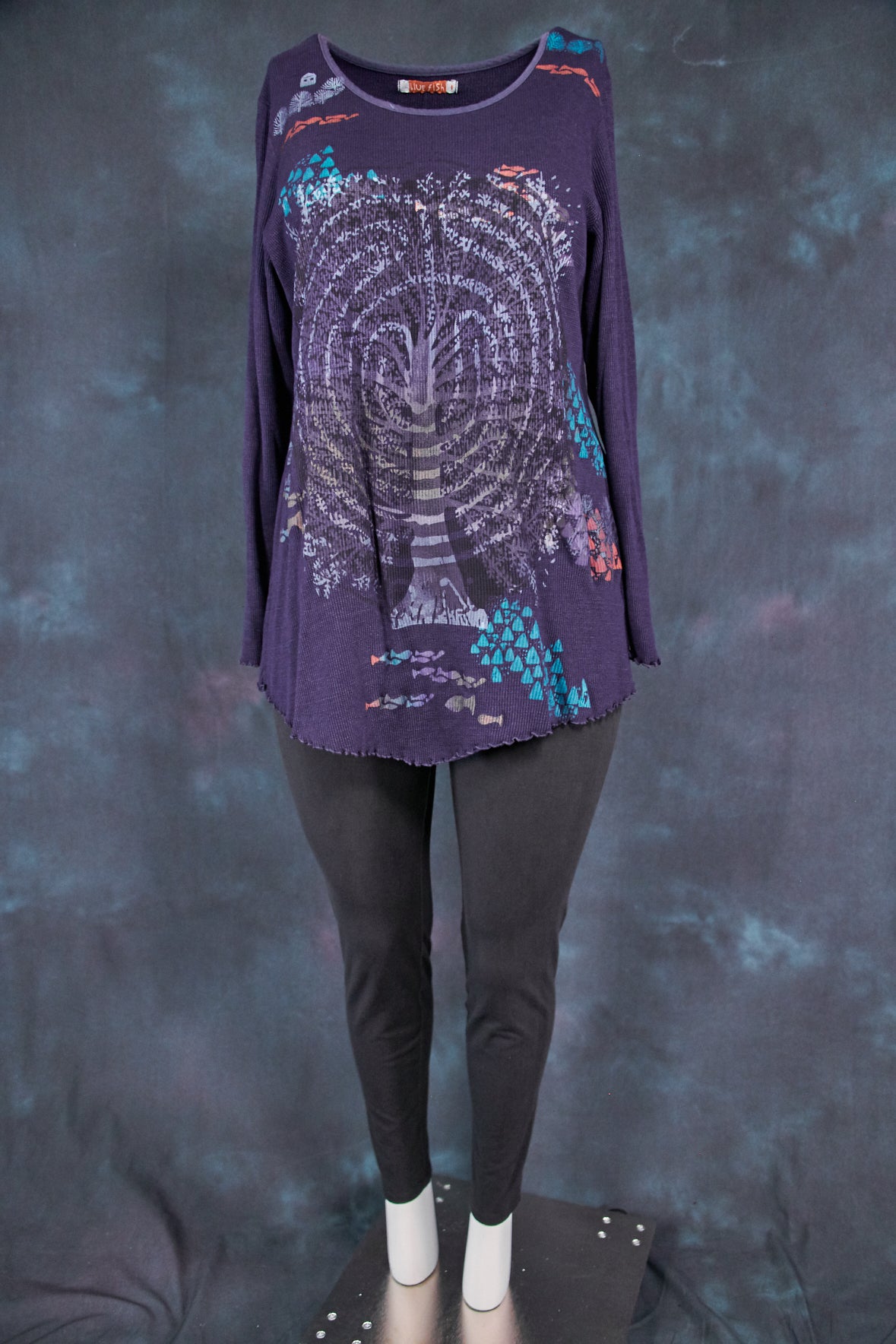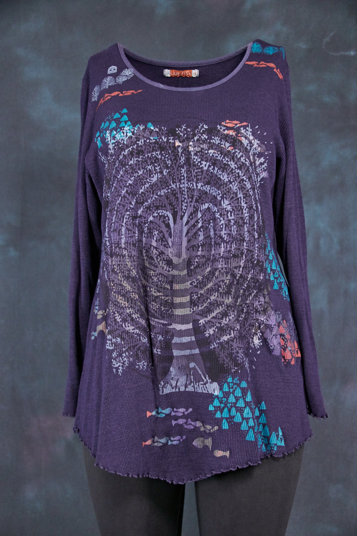 A classic Blue Fish style made for the modern day. This easy to wear top features slight points at the front & back hemlines that create visual interest & a slimming effect. Made of favorite thermal material that will keep you cozy on every cool day.