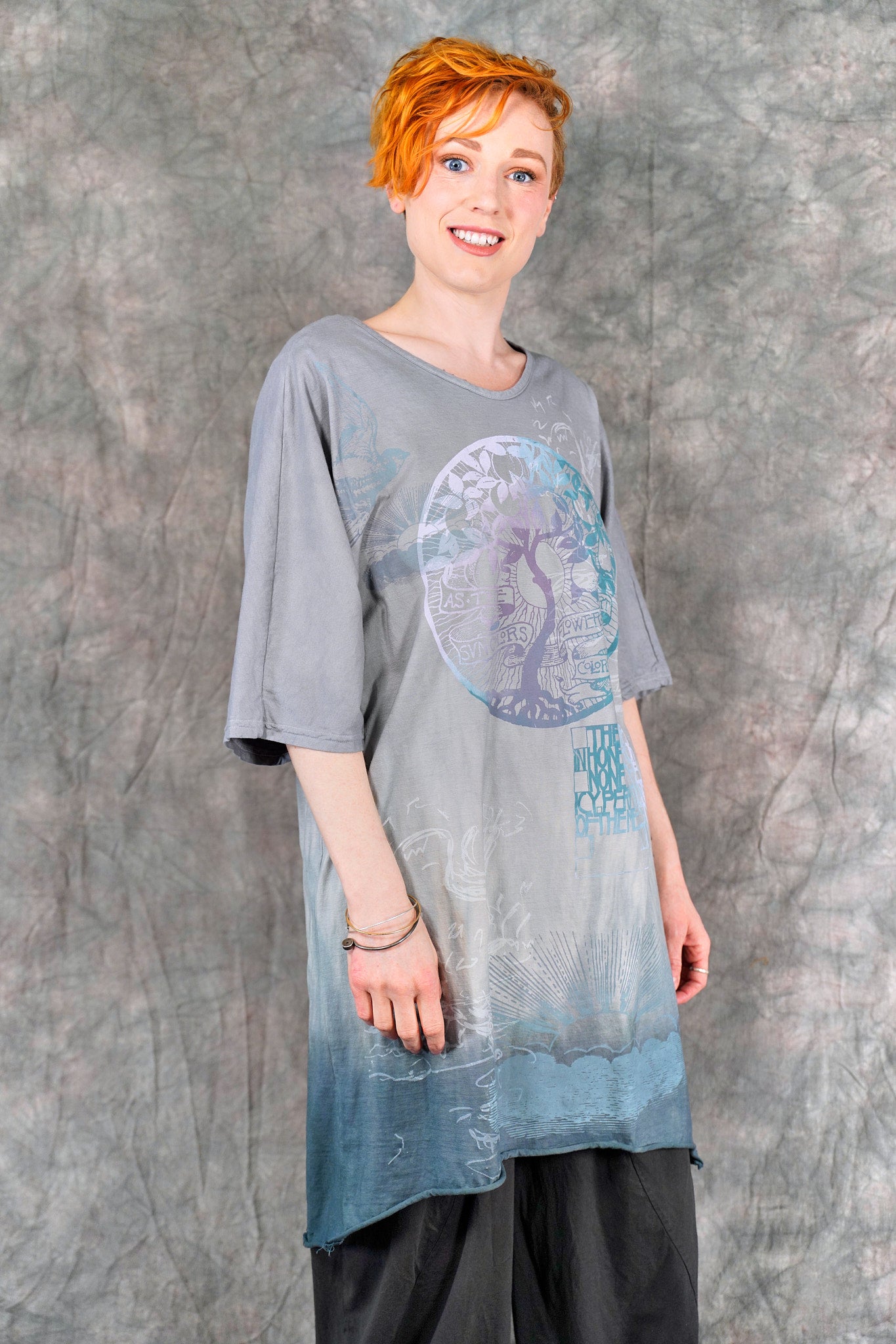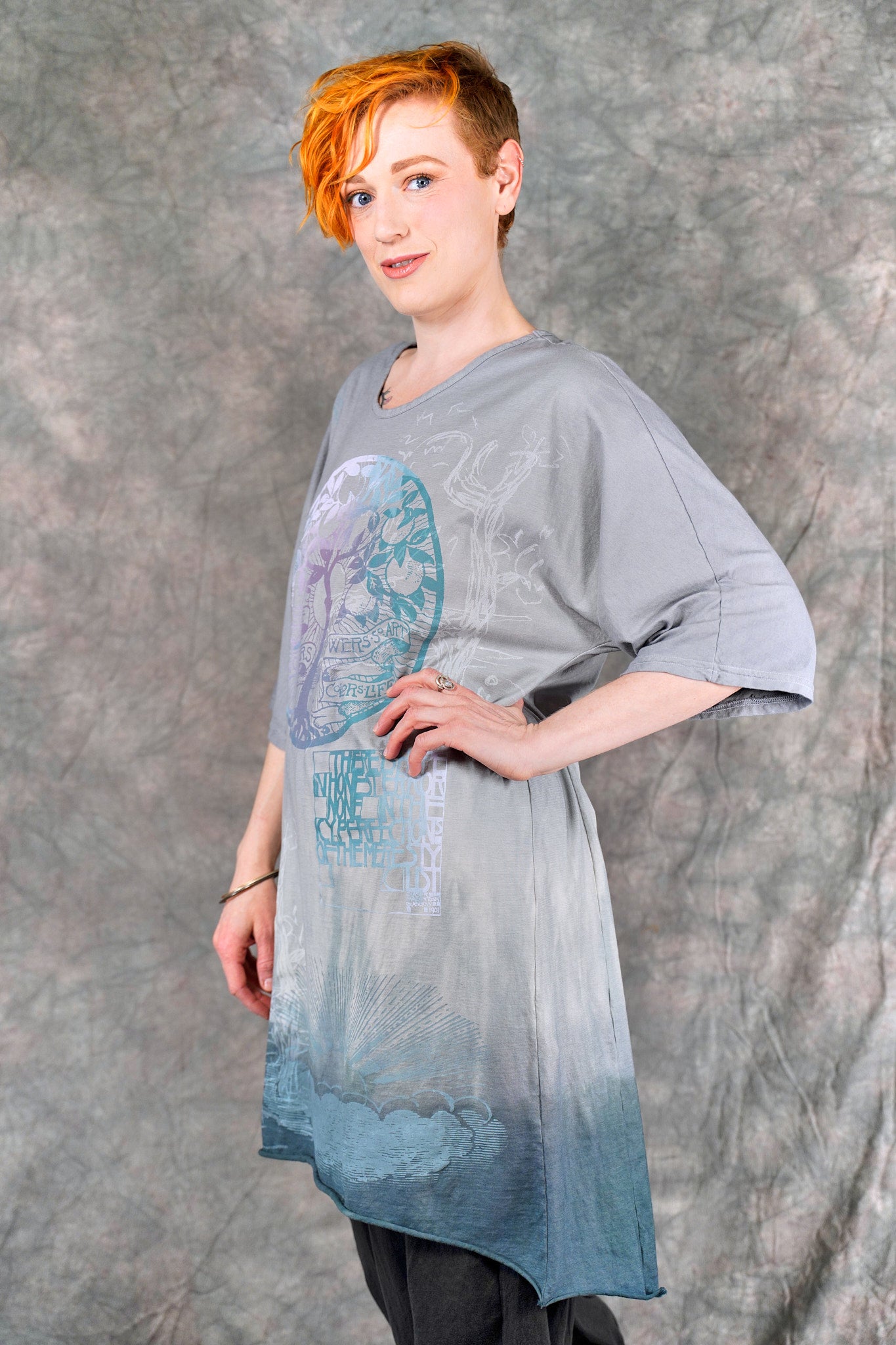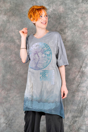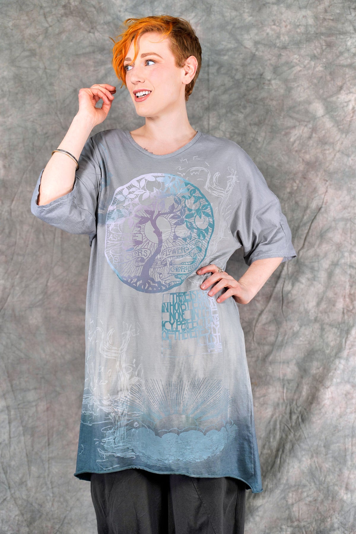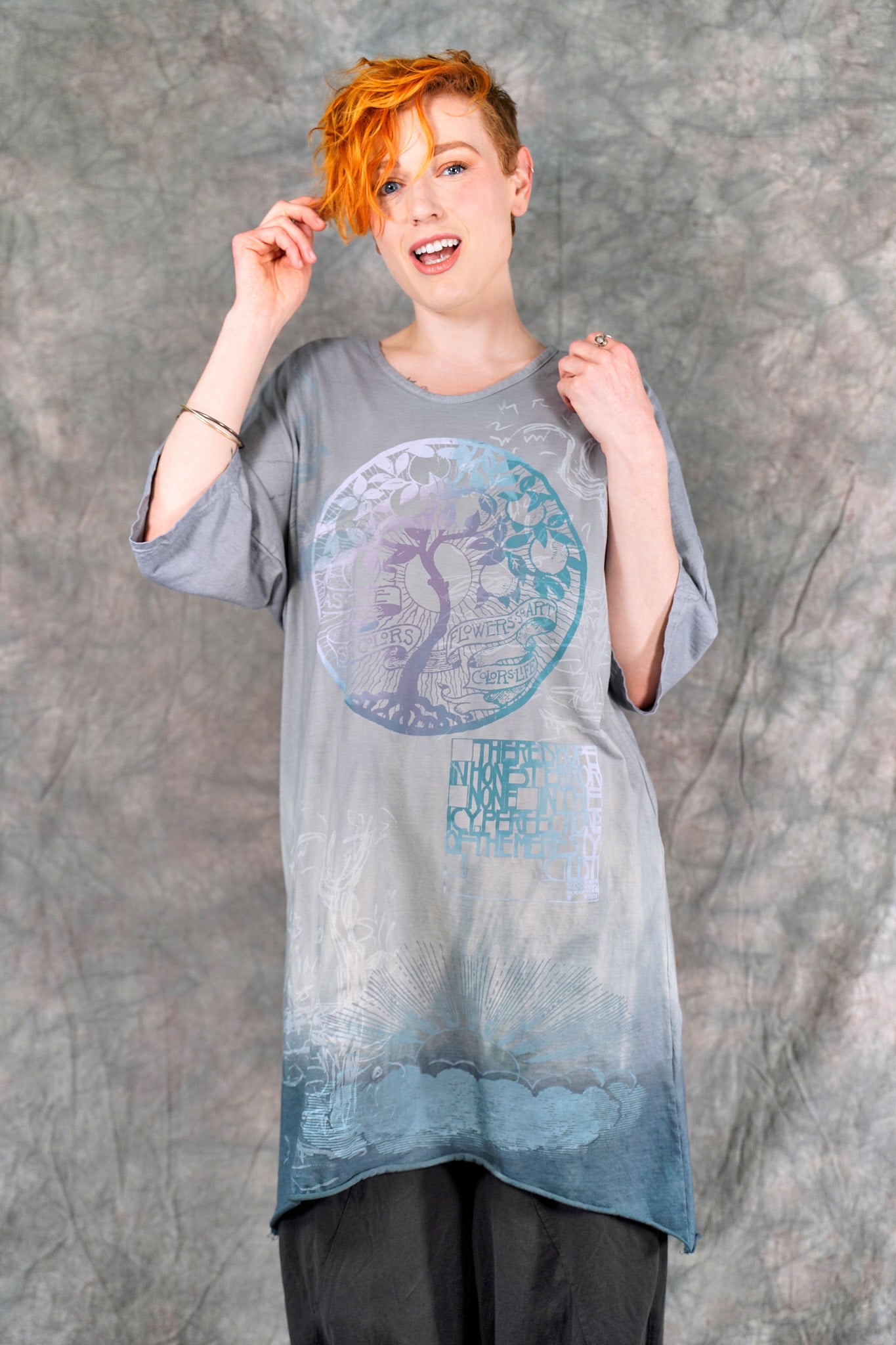 Our Euro Slim Art Tunic is here in a fitted size that is PERFECT for our smaller ladies! This is the same wonderful shape as our larger Art Tunic, but slimmed down for smaller bodies. We hand dyed these then decorated these all over the front with imagery from our studio.