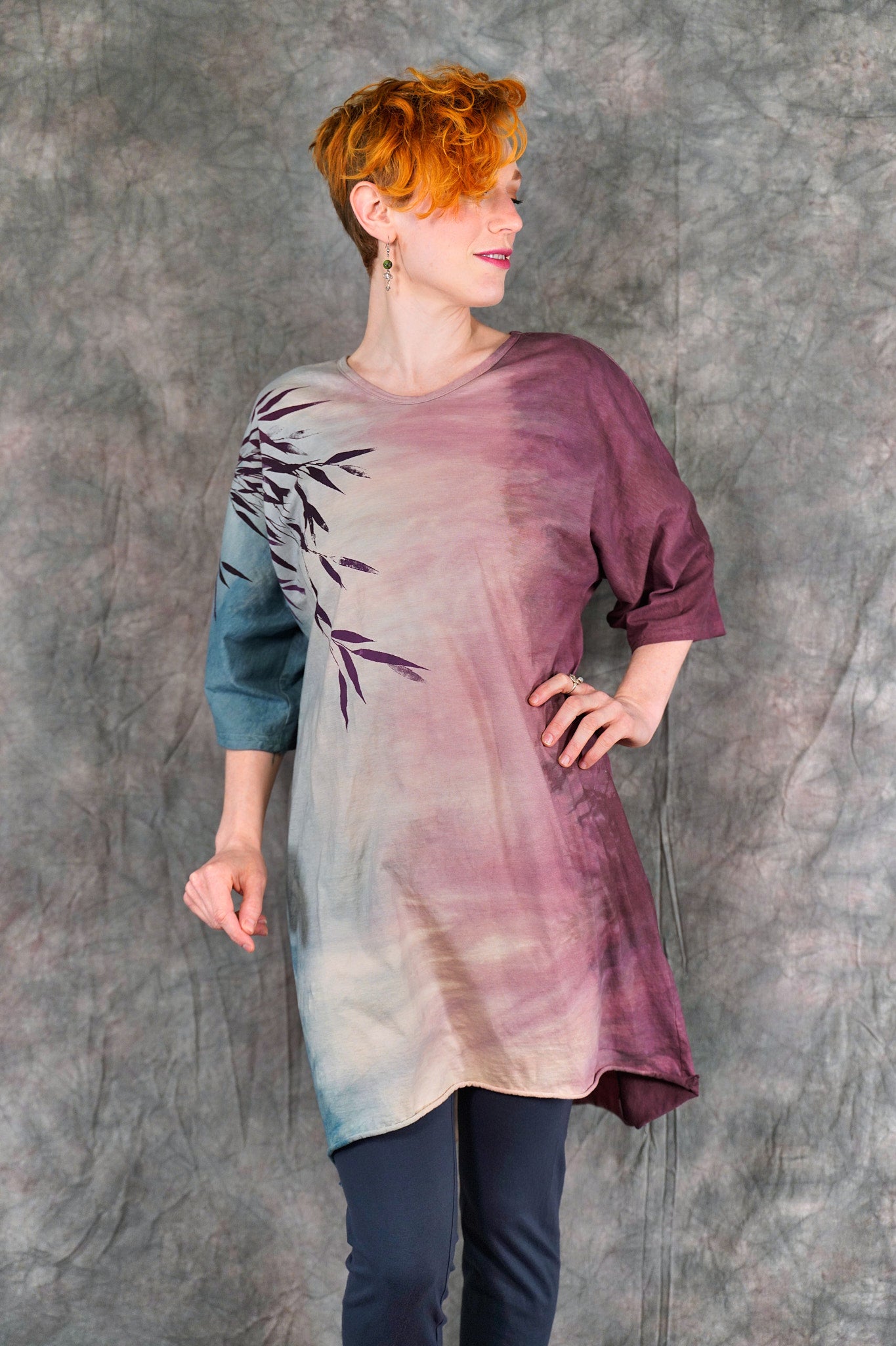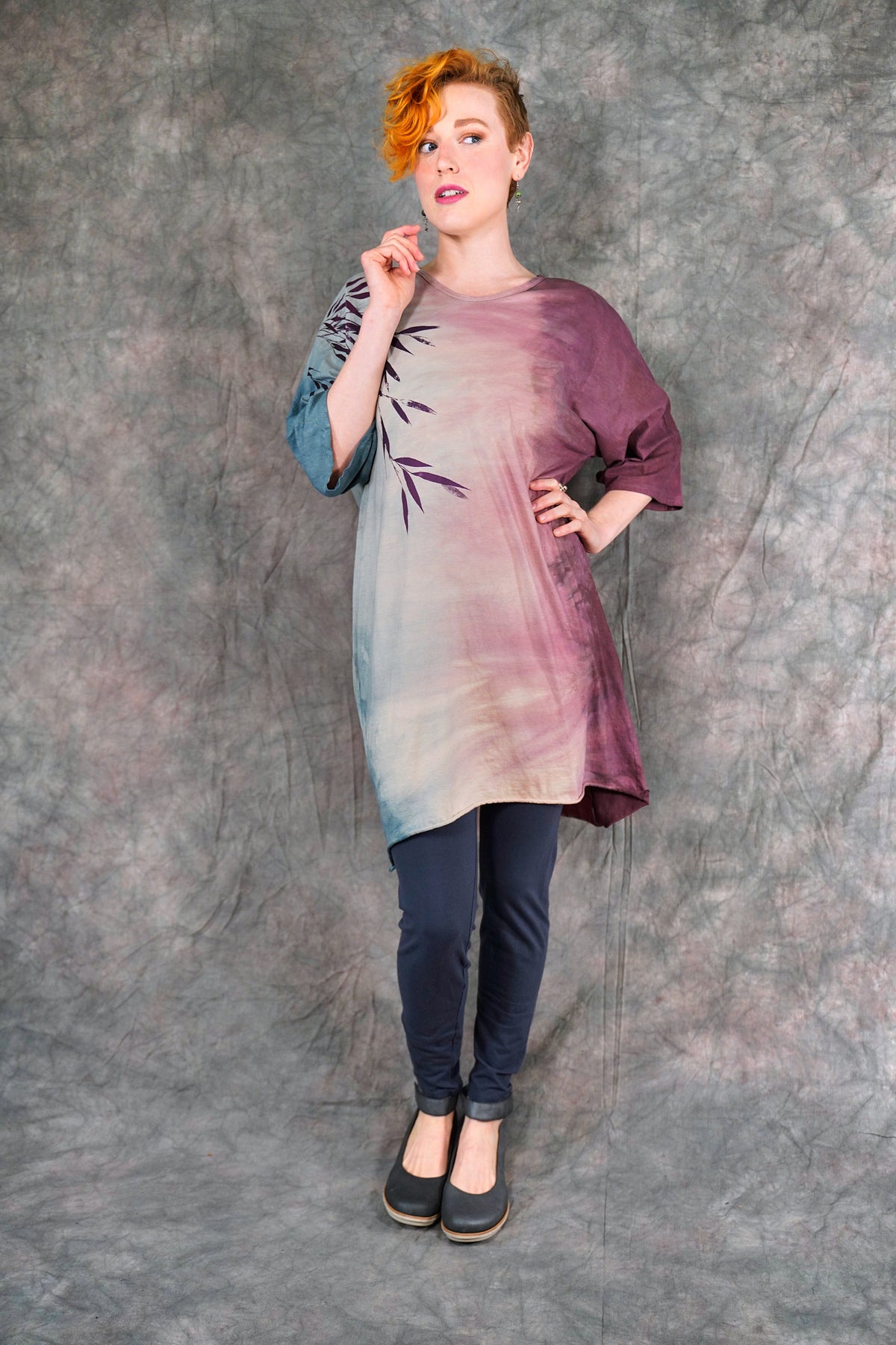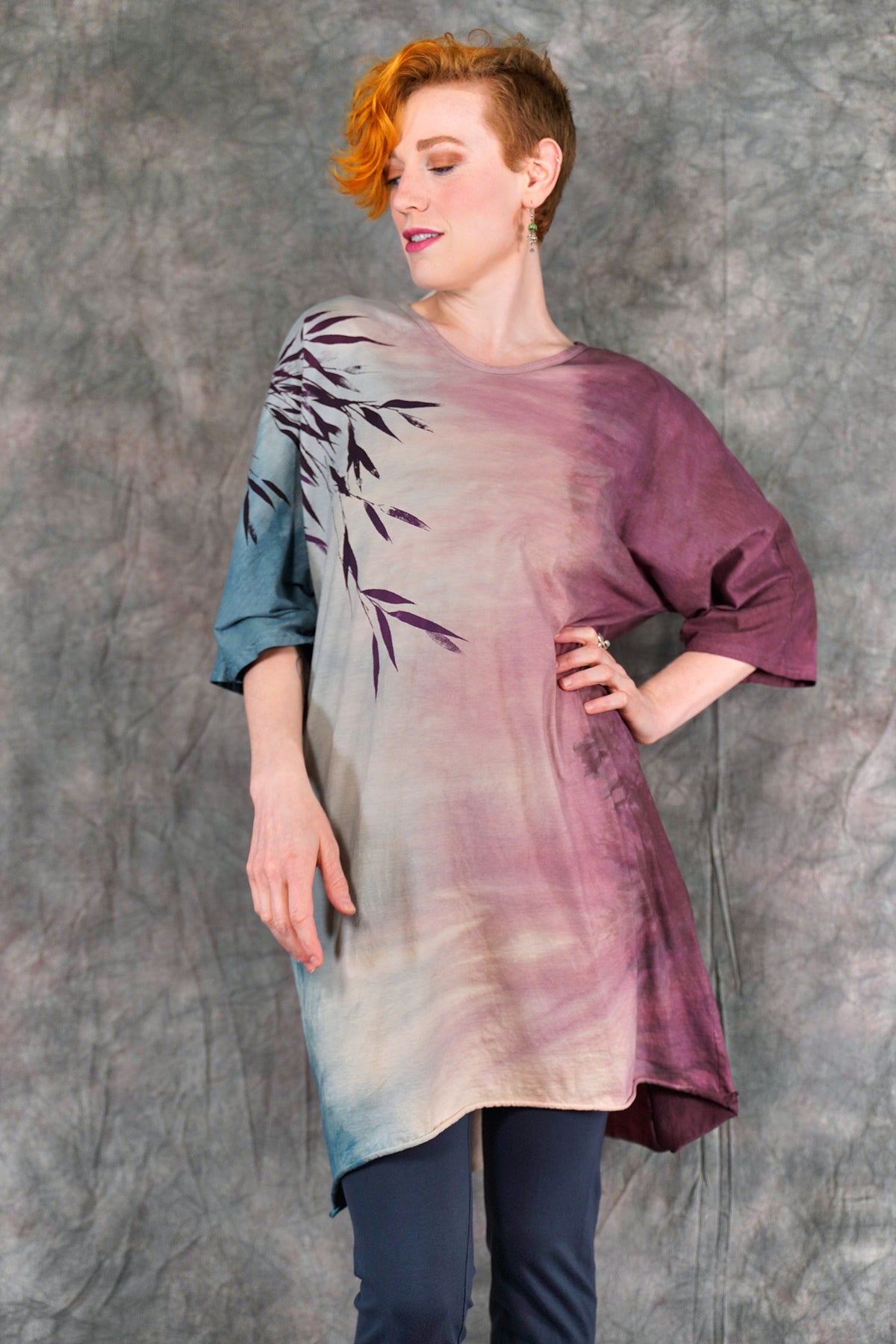 Our Euro Slim Art Tunic is here in a fitted size that is PERFECT for our smaller ladies! This is the same wonderful shape as our larger Art Tunic, but slimmed down for smaller bodies. We hand dyed these then decorated these all over the front with imagery from our studio.