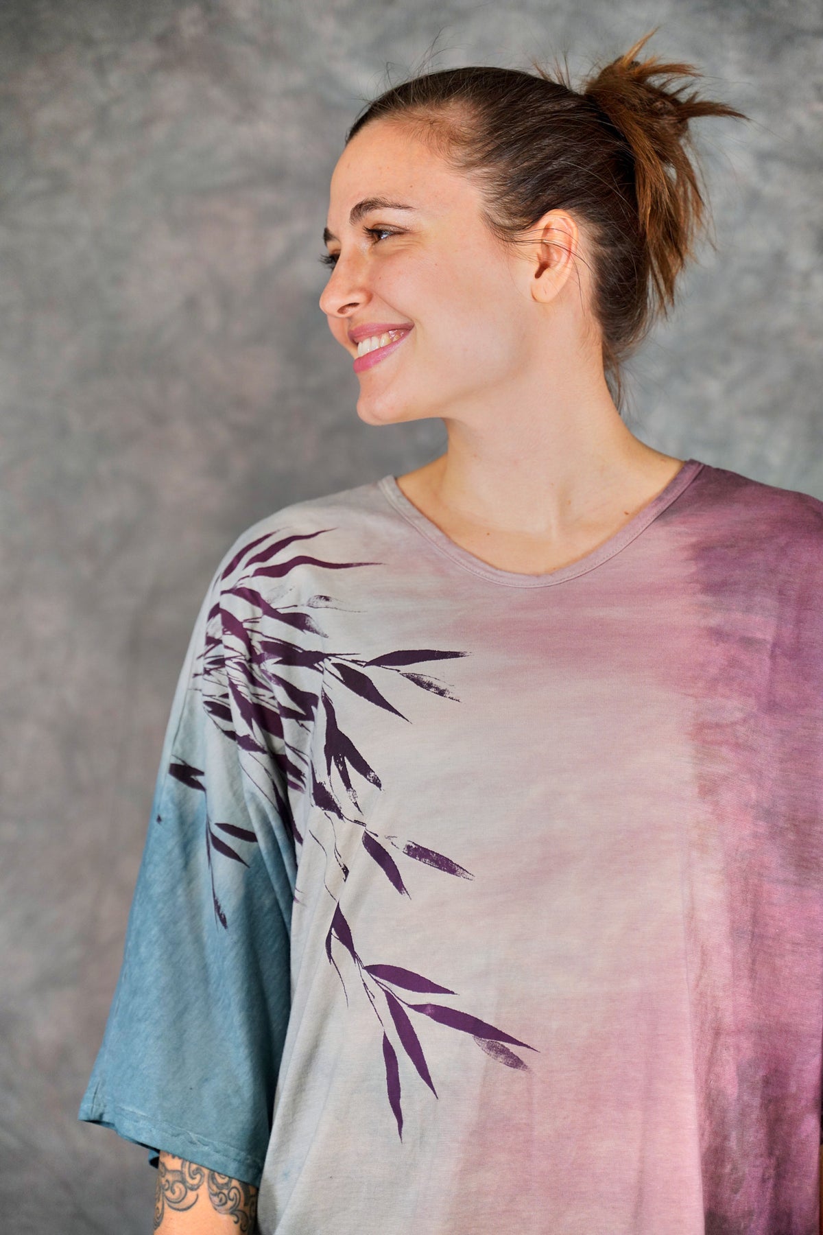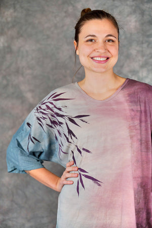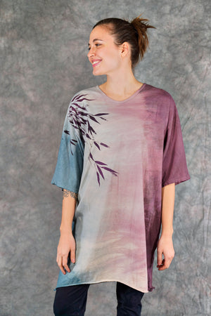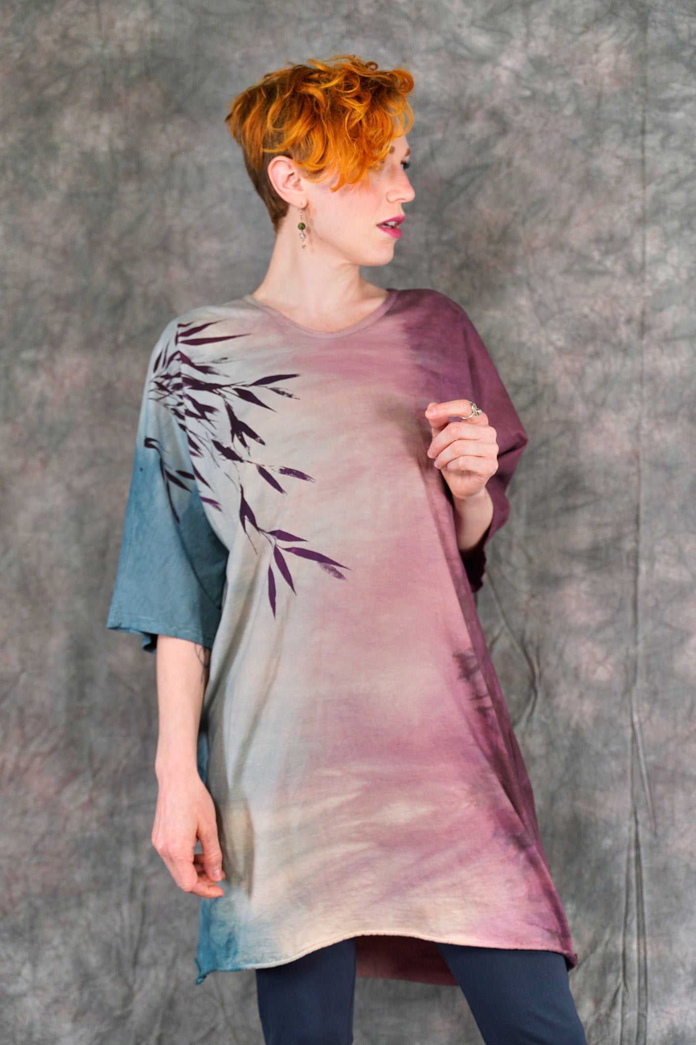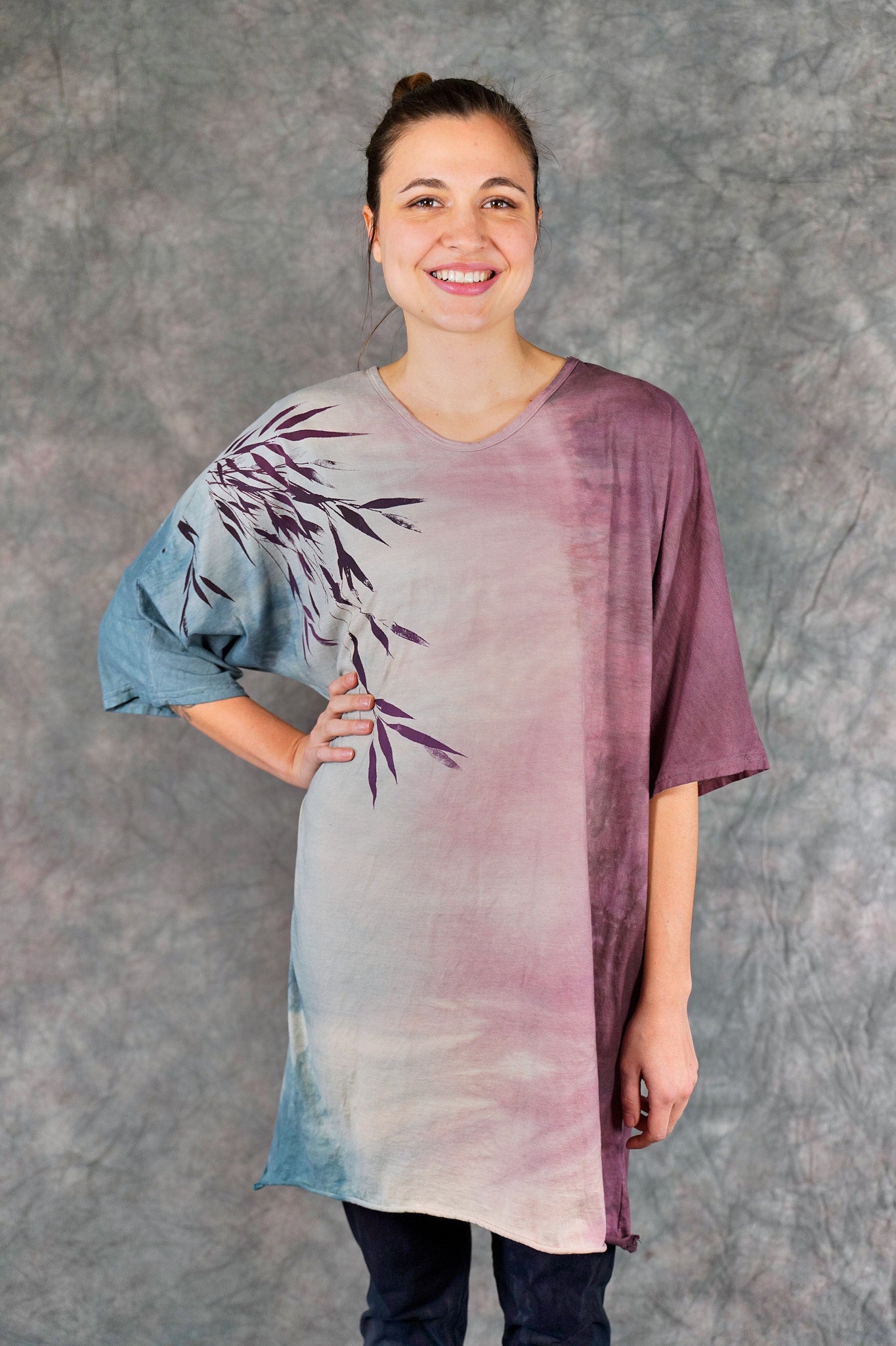 Our Euro Slim Art Tunic is here in a fitted size that is PERFECT for our smaller ladies! This is the same wonderful shape as our larger Art Tunic, but slimmed down for smaller bodies. We hand dyed these then decorated these all over the front with imagery from our studio.