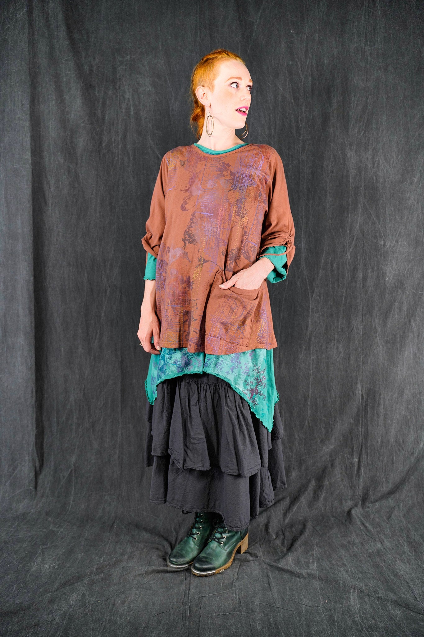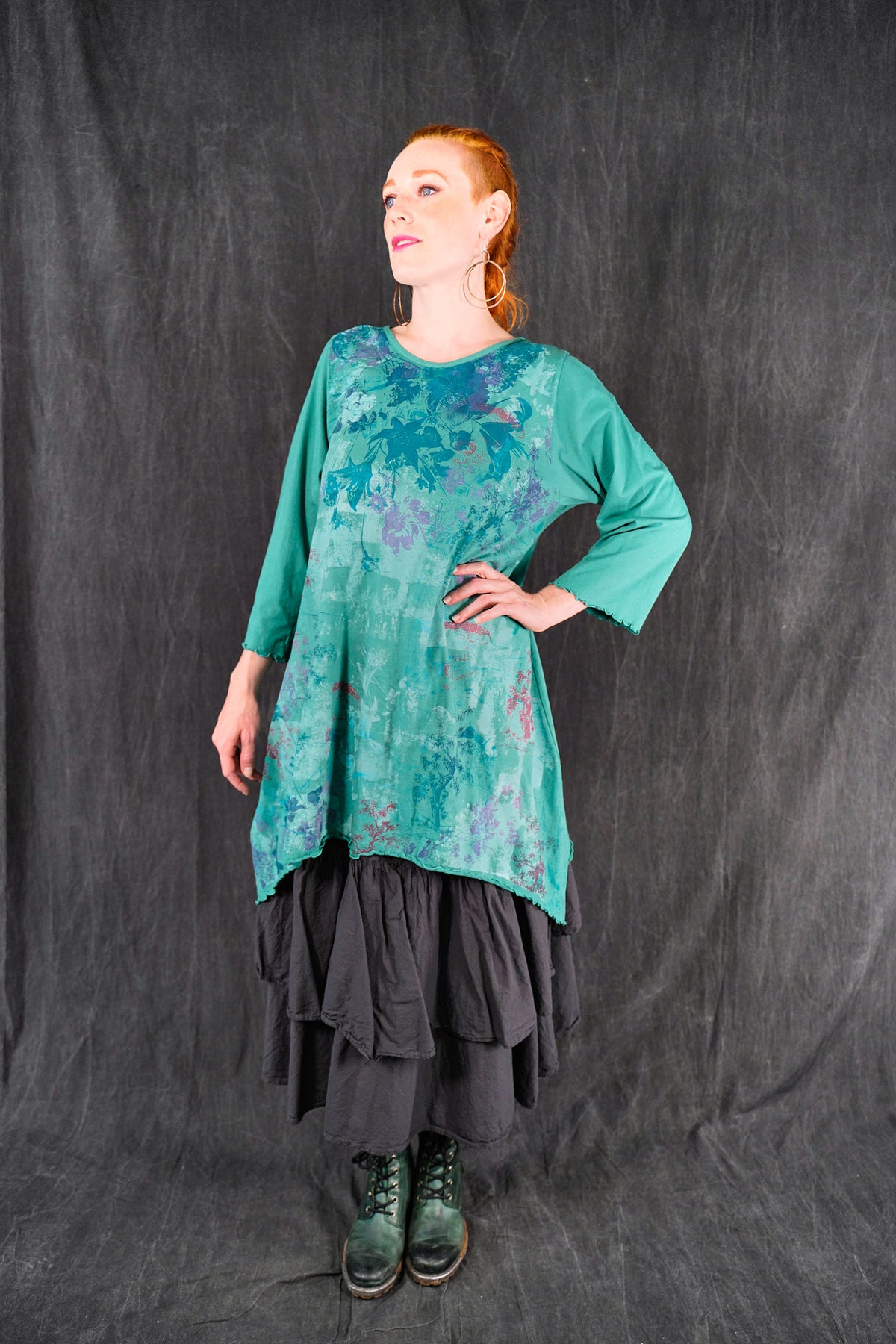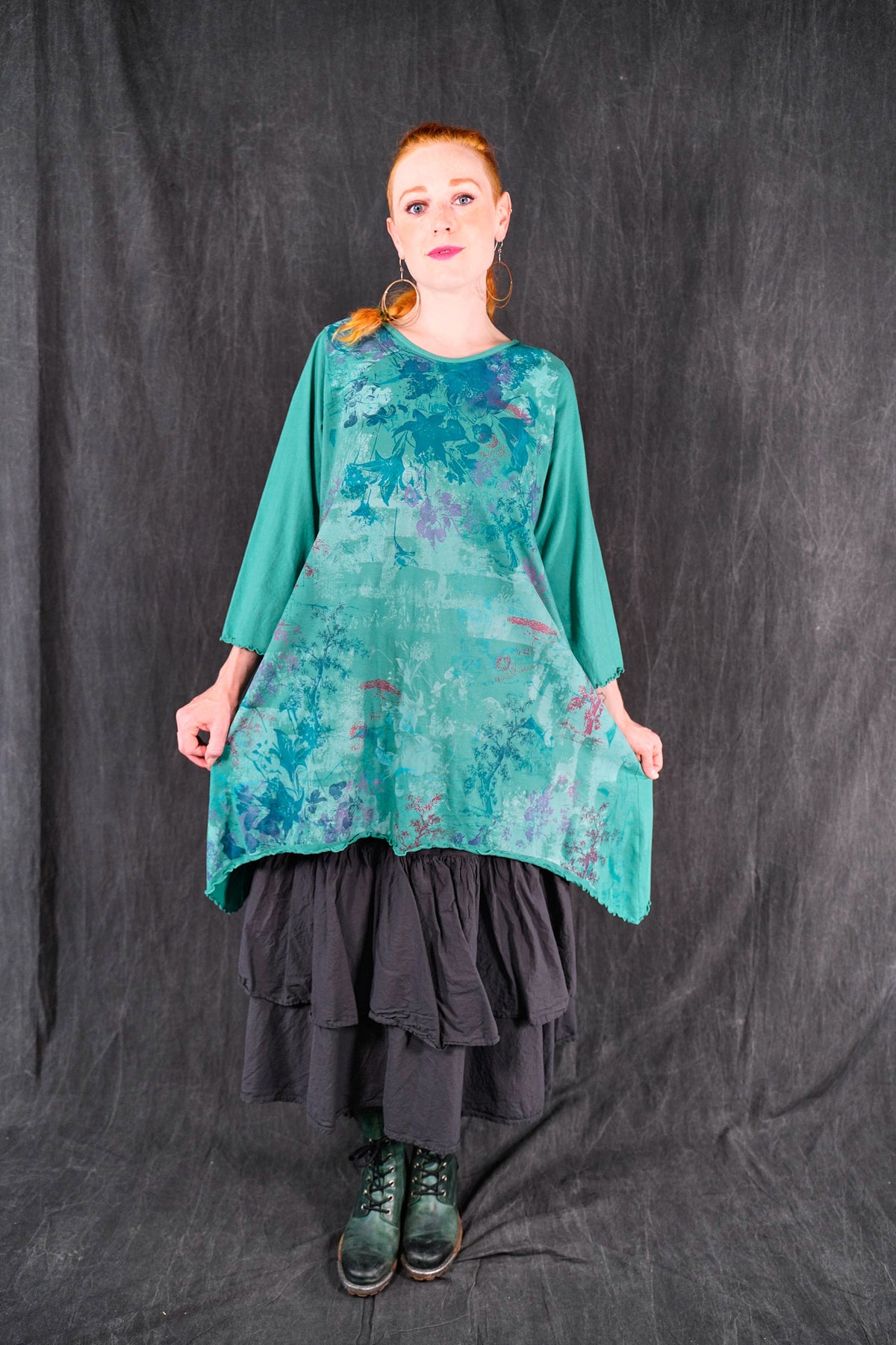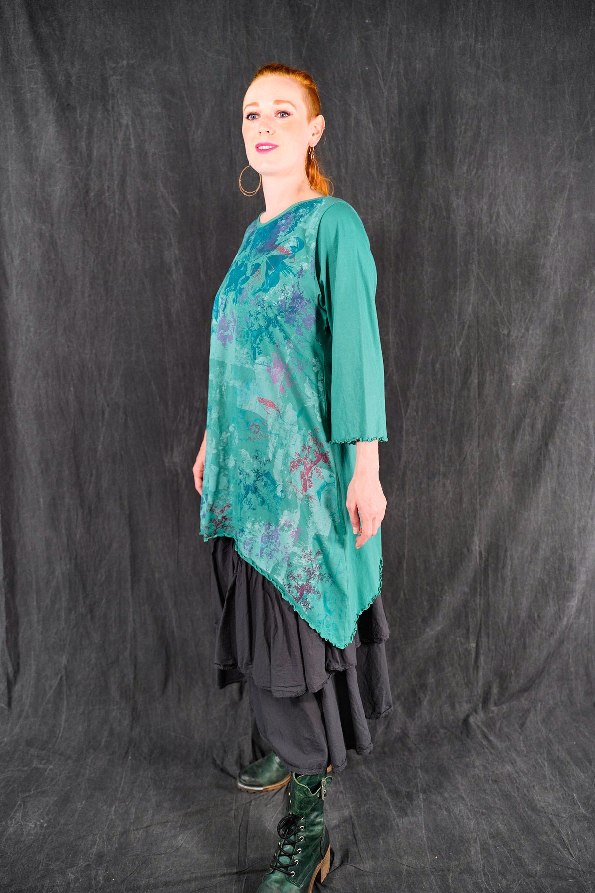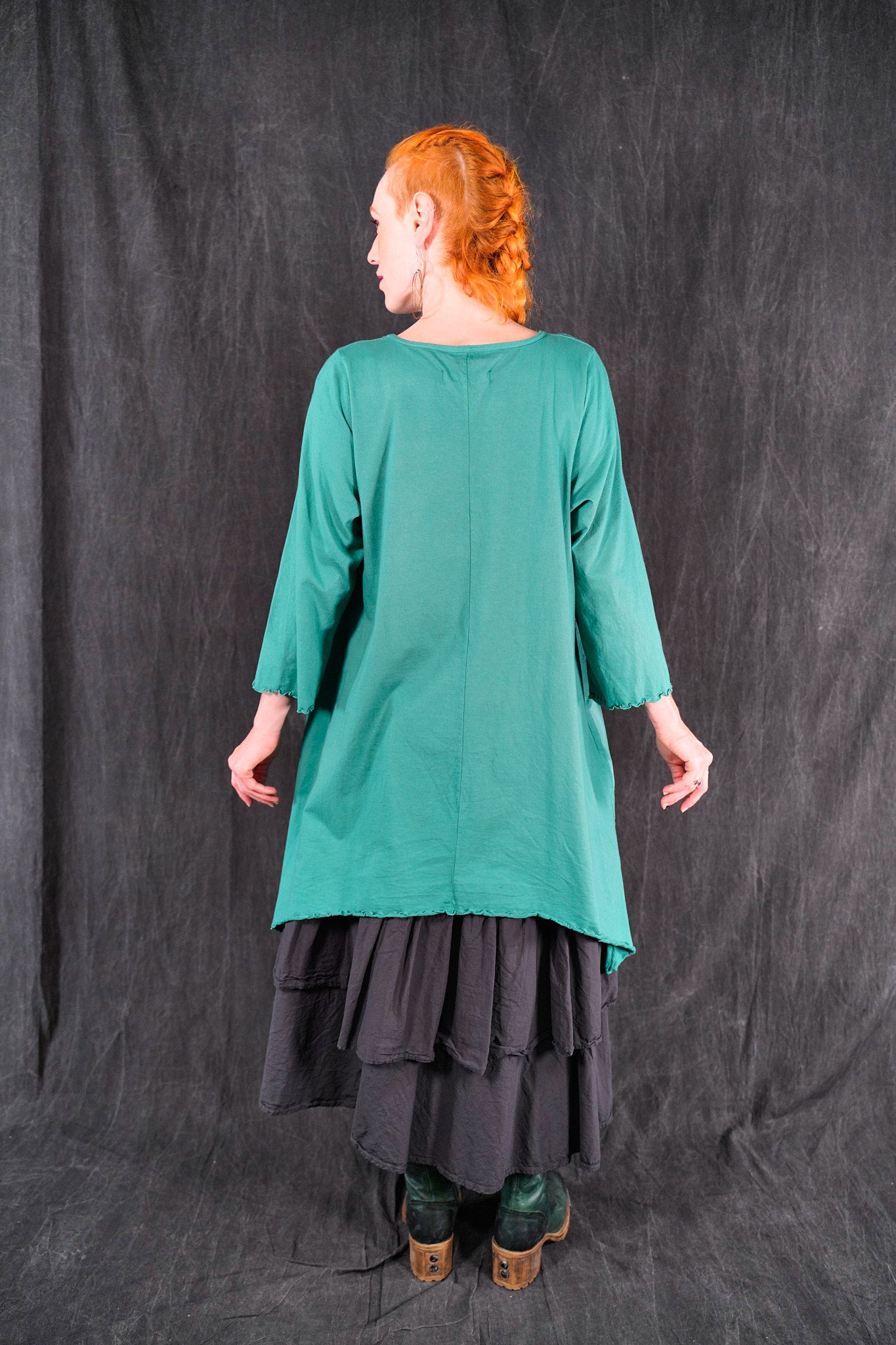 Based on our beloved a-line Cafe Tee shape, lengthened into a tunic that's as flattering & stylish as it is effortless to wear. Distinctive pointed hemline is flattering on many shapes. Super soft organic cotton fabric is a joy to wear.