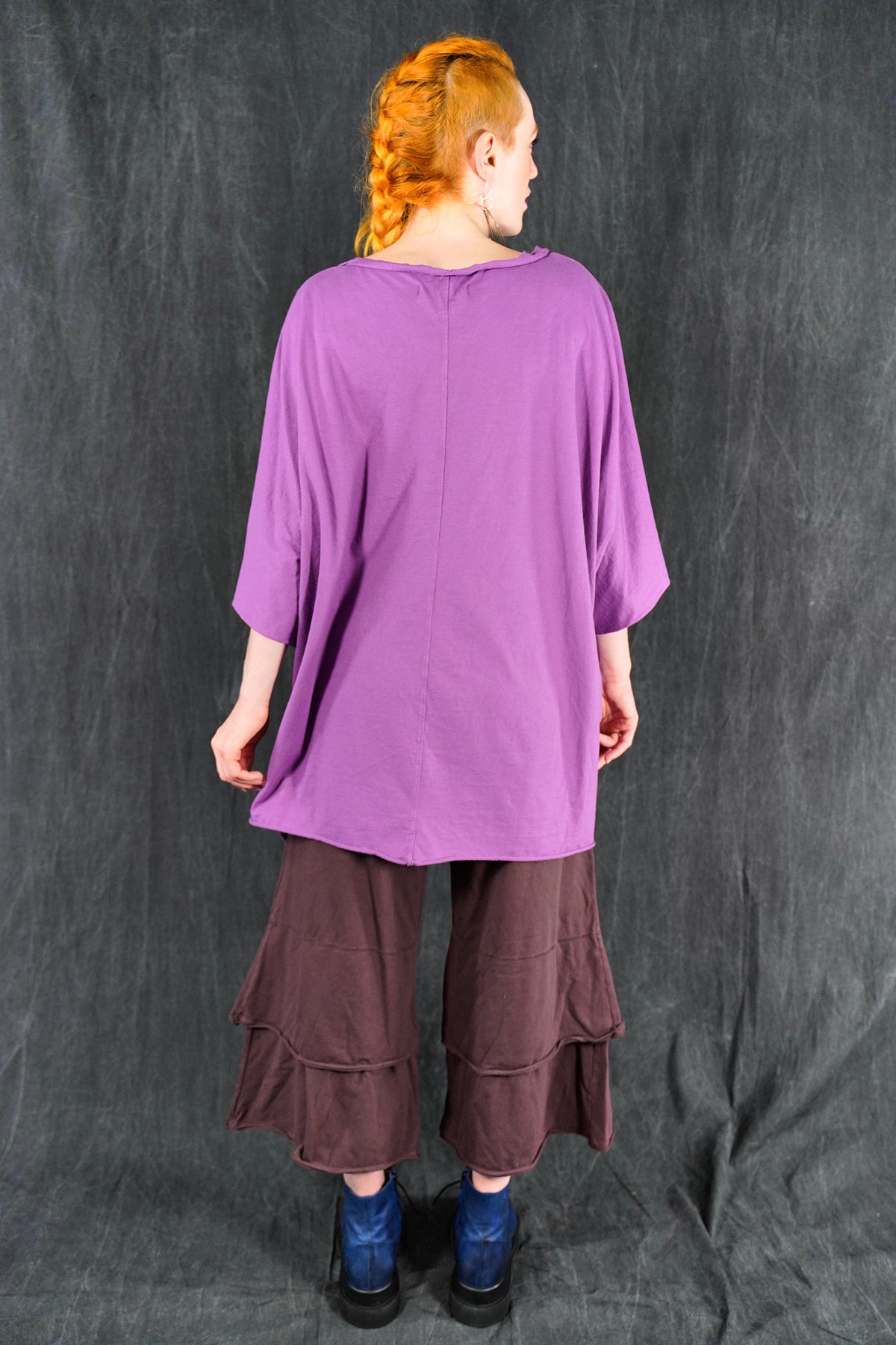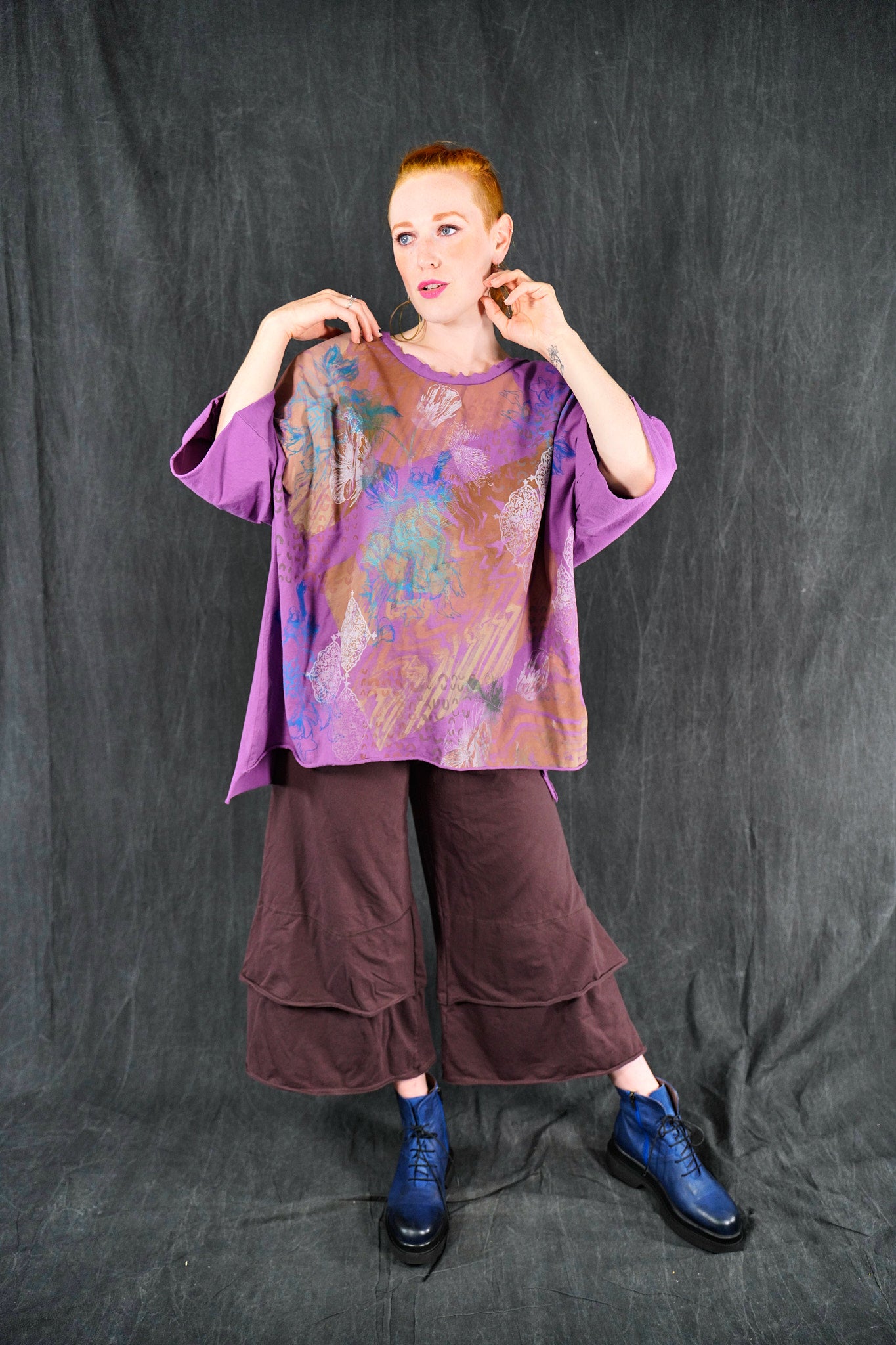 A light and airy, wider cut tee with a slight hi/lo with a soft double raw-edge neckline, slightly longer in the back- a wide, easy essential summer tee made for you from our own organic cotton jersey- this seasonless delft-inspired print makes getting dressed so simple.