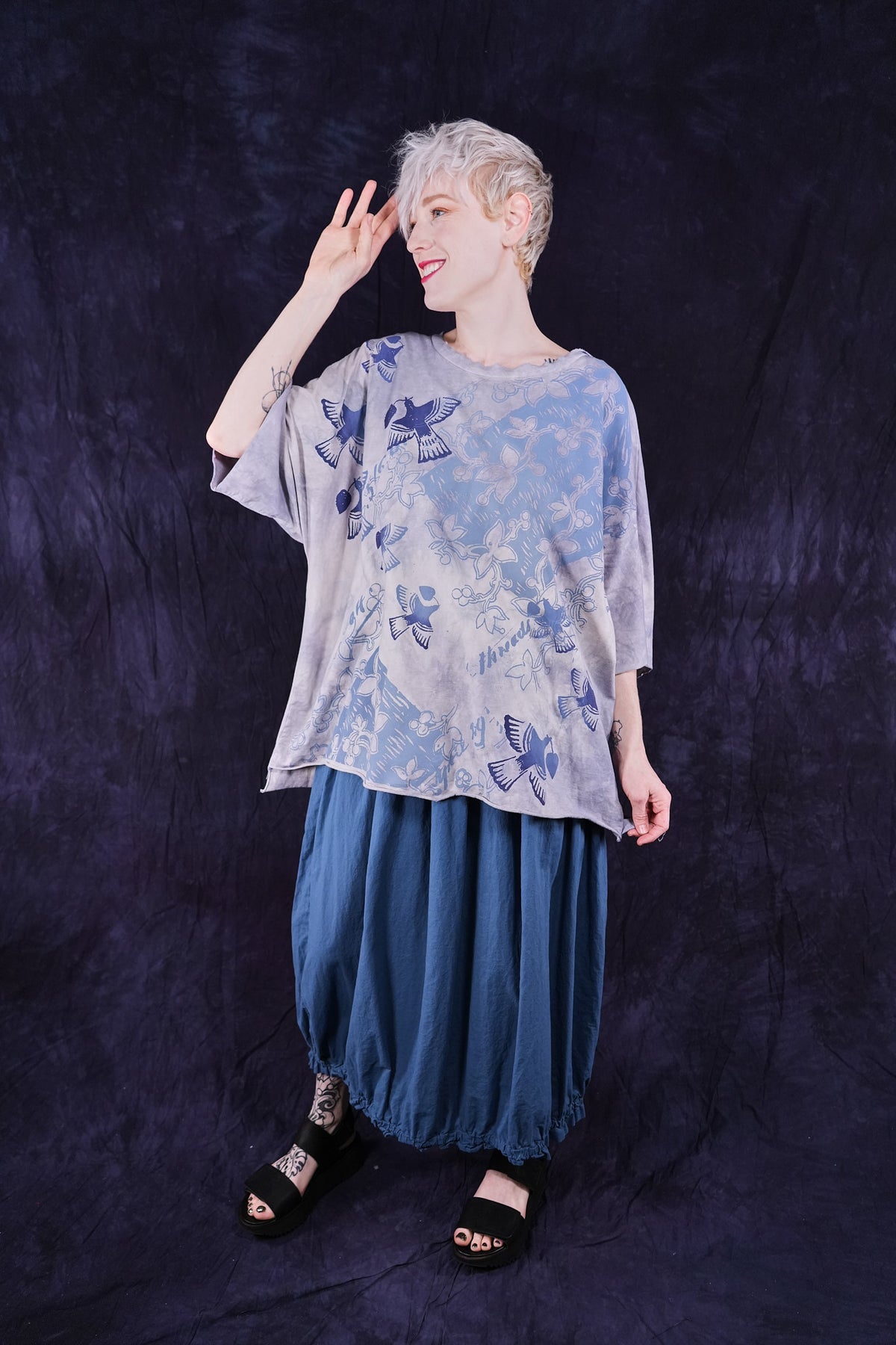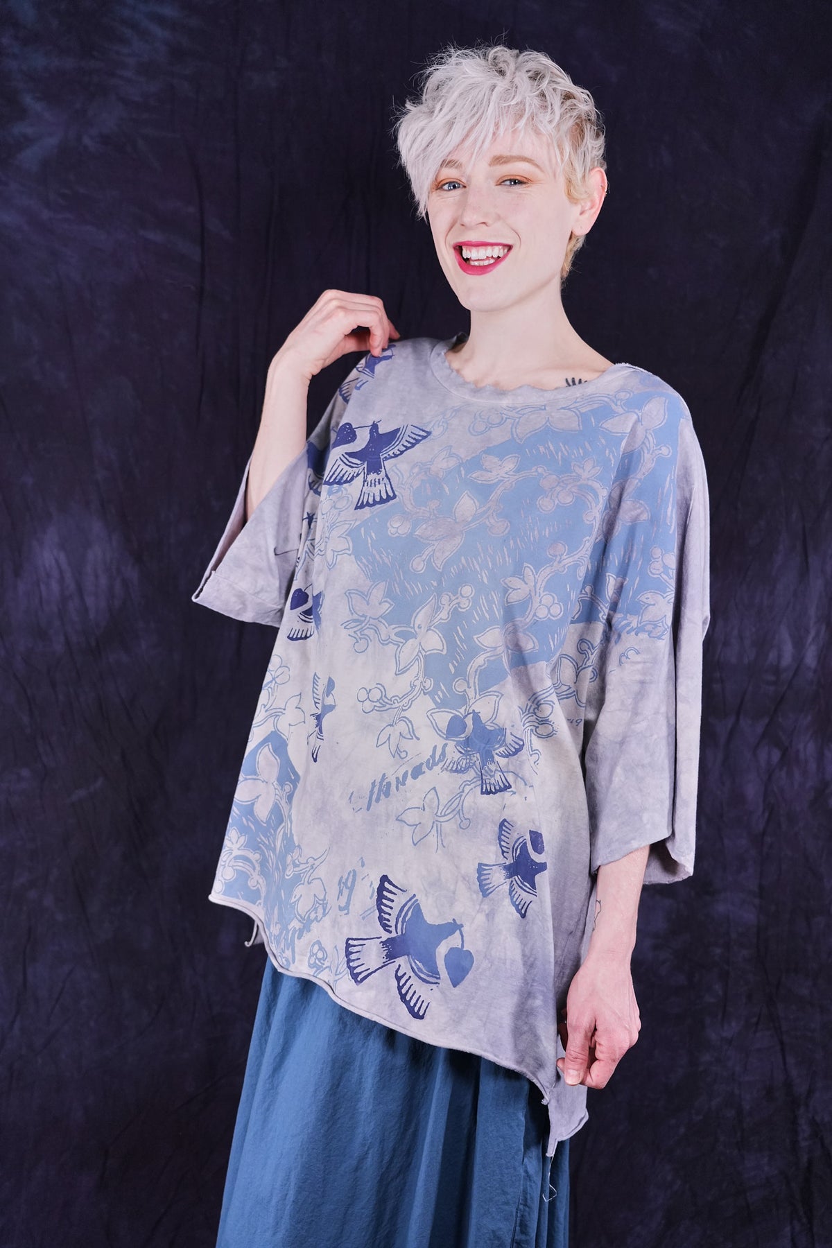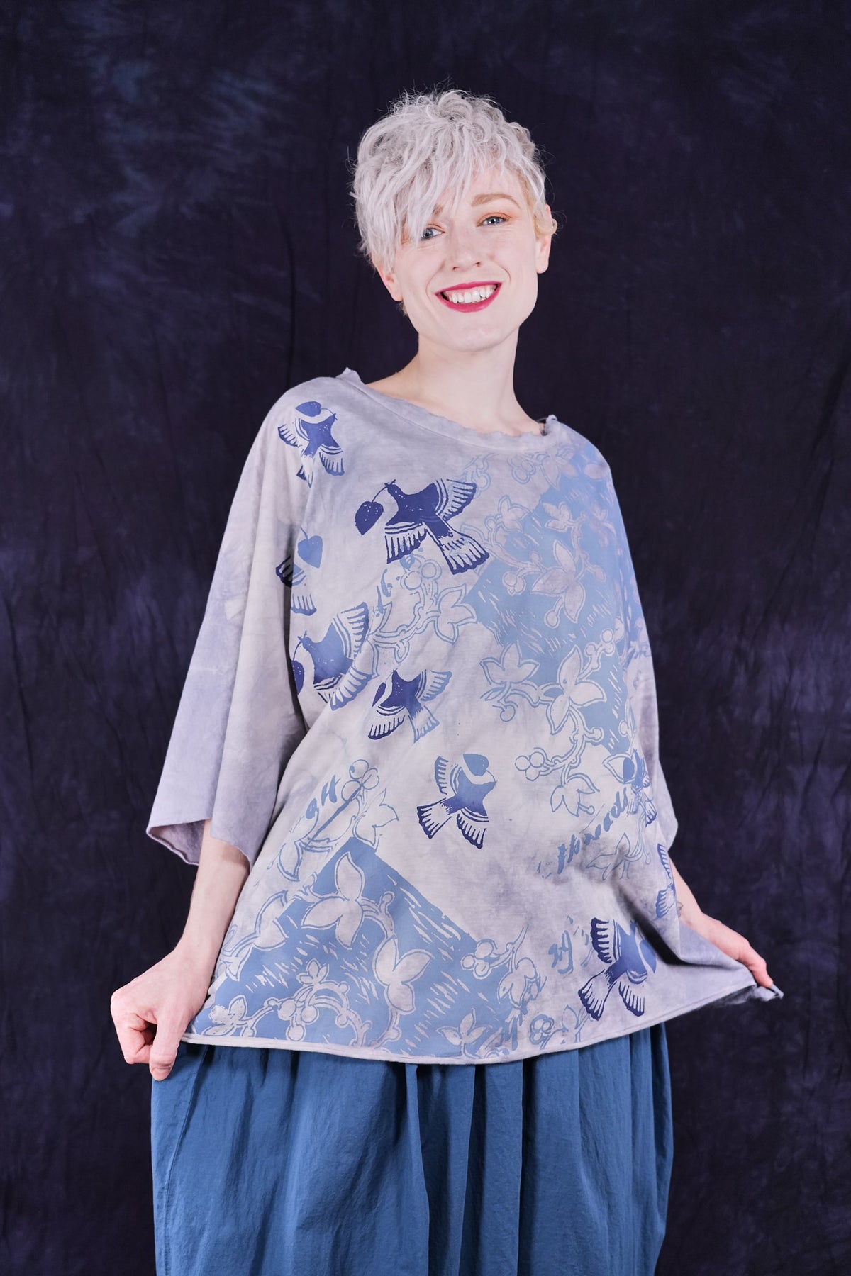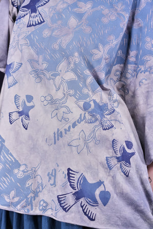 A ltd. edition, hand dyed and layered print featuring birds and flowers.
