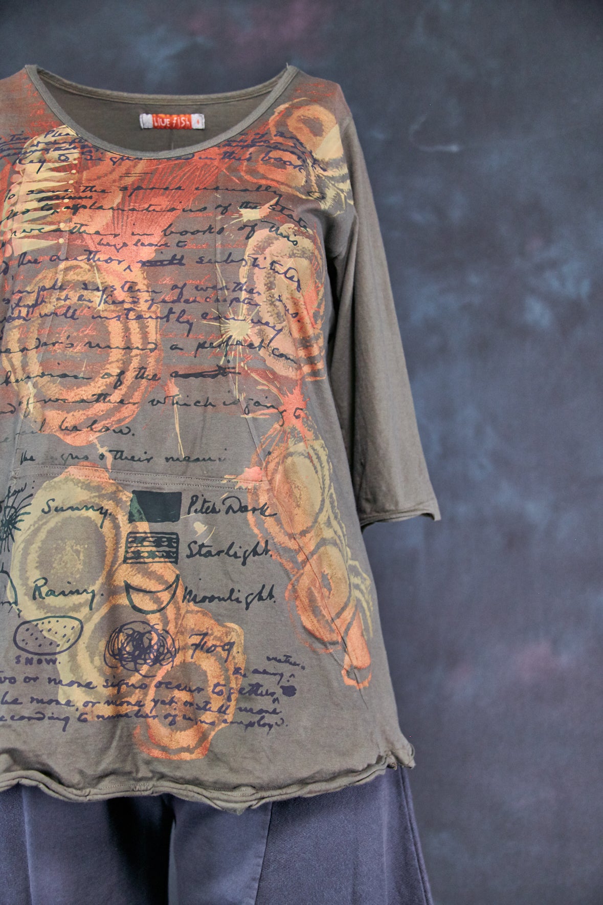 NEW TOP: For those that like the not-as-much-fabric fit of our Sunny Day Tee, this is for you. Elongated and slightly A-lined, this top features a front pocket and beautifully curved seams. Please zoom in on the main photo to see these details. The sleeve and hemline edges are doubled roll to raw, giving a modern edge, A size one would fit a 14/16. This is a very flattering top for those who are not too curvy, Donna loves this style!
