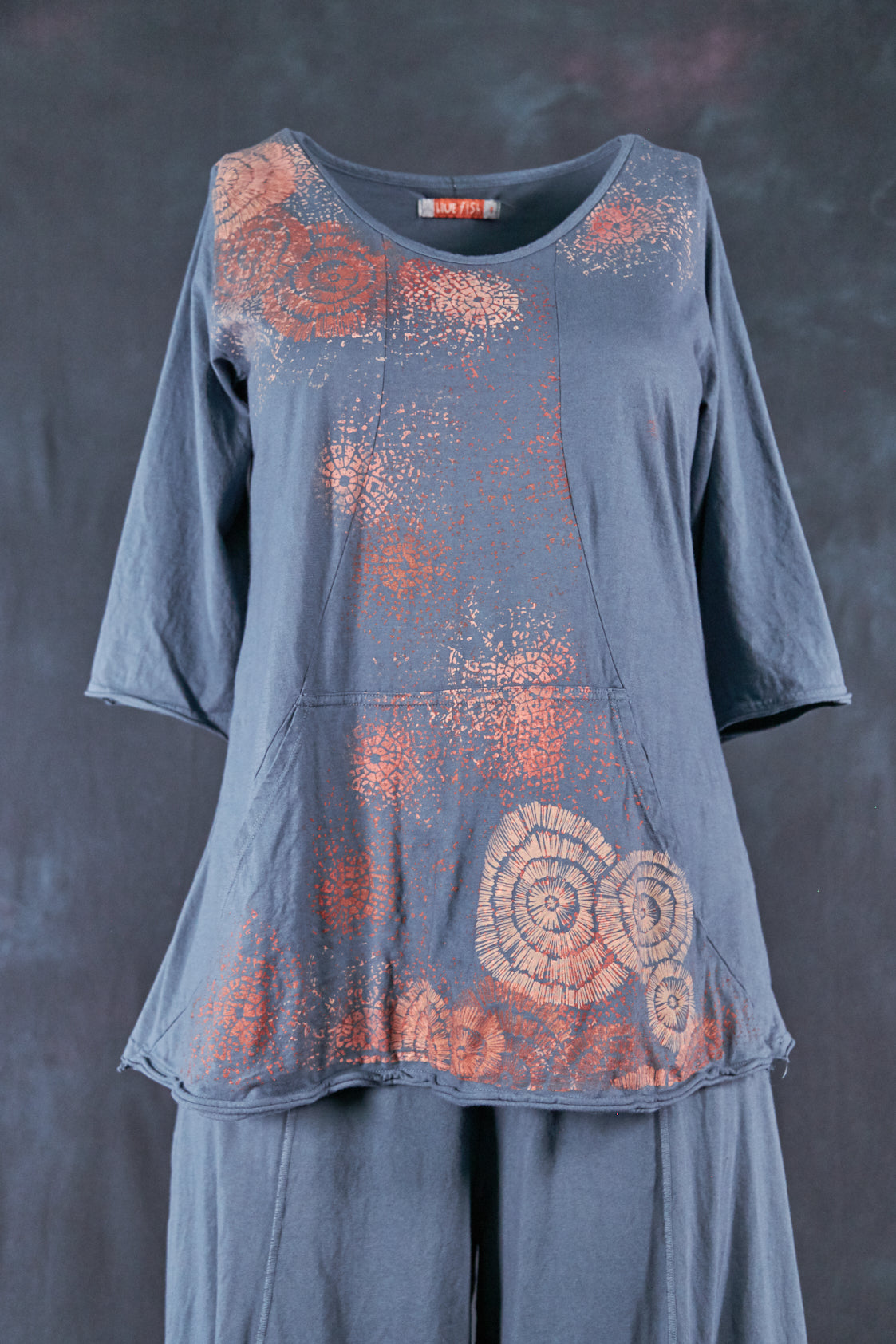 NEW TOP: For those that like the not-as-much-fabric fit of our Sunny Day Tee, this is for you. Elongated and slightly A-lined, this top features a front pocket and beautifully curved seams. Please zoom in on the main photo to see these details. The sleeve and hemline edges are doubled roll to raw, giving a modern edge, A size one would fit a 14/16. This is a very flattering top for those who are not too curvy, Donna loves this style!