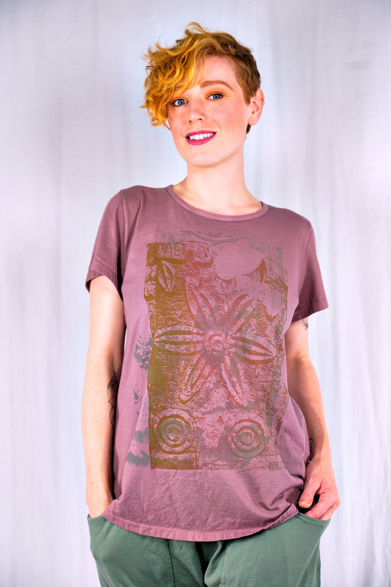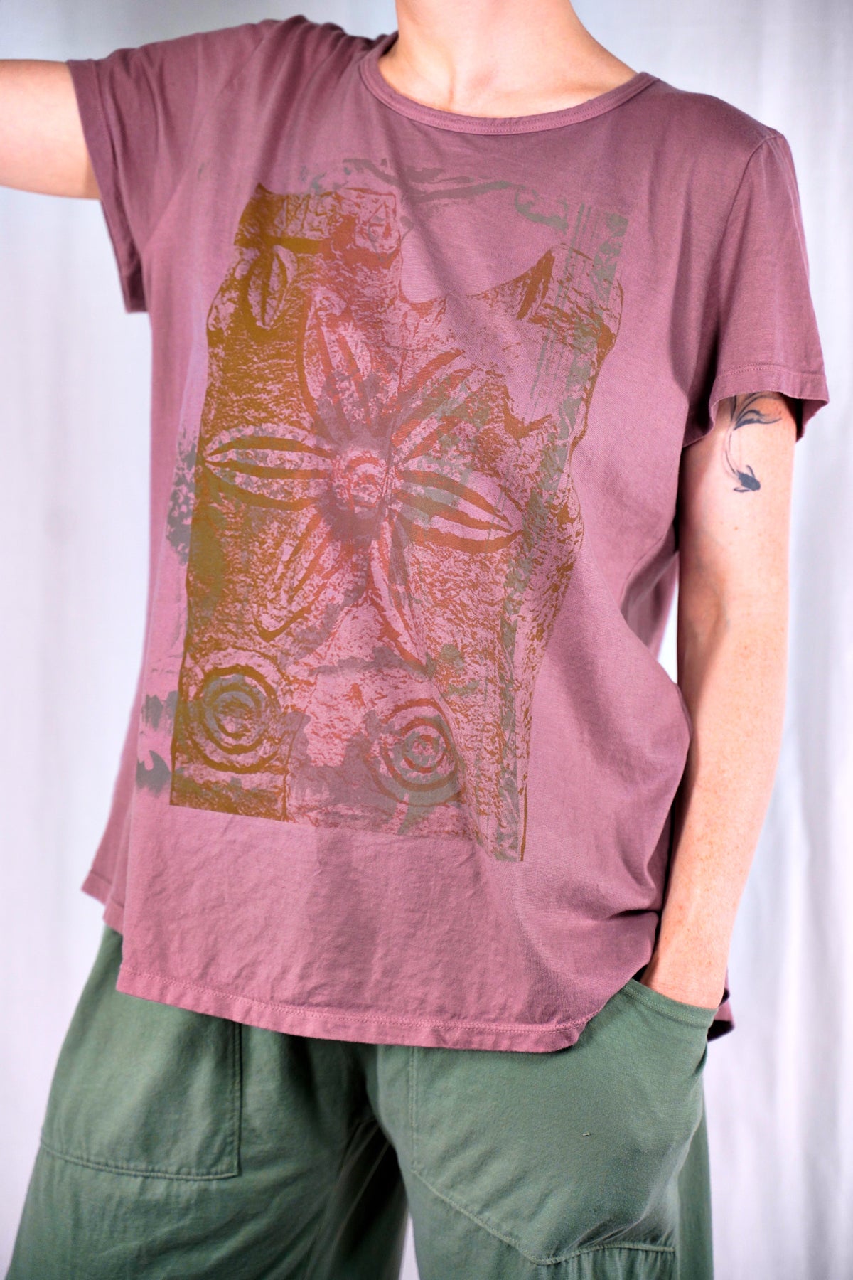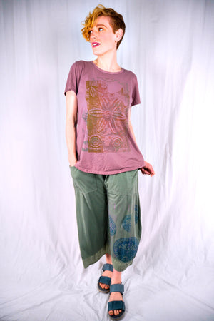 NEW shorter-sleeved tee with a flattering, slightly shaped cut is a good length for wearing with leggings, made from our organic cotton knit and hand-printed all over the front. Hand-printed design is inspired by ancient roman carvings and antique textile fragments from the 1800's.