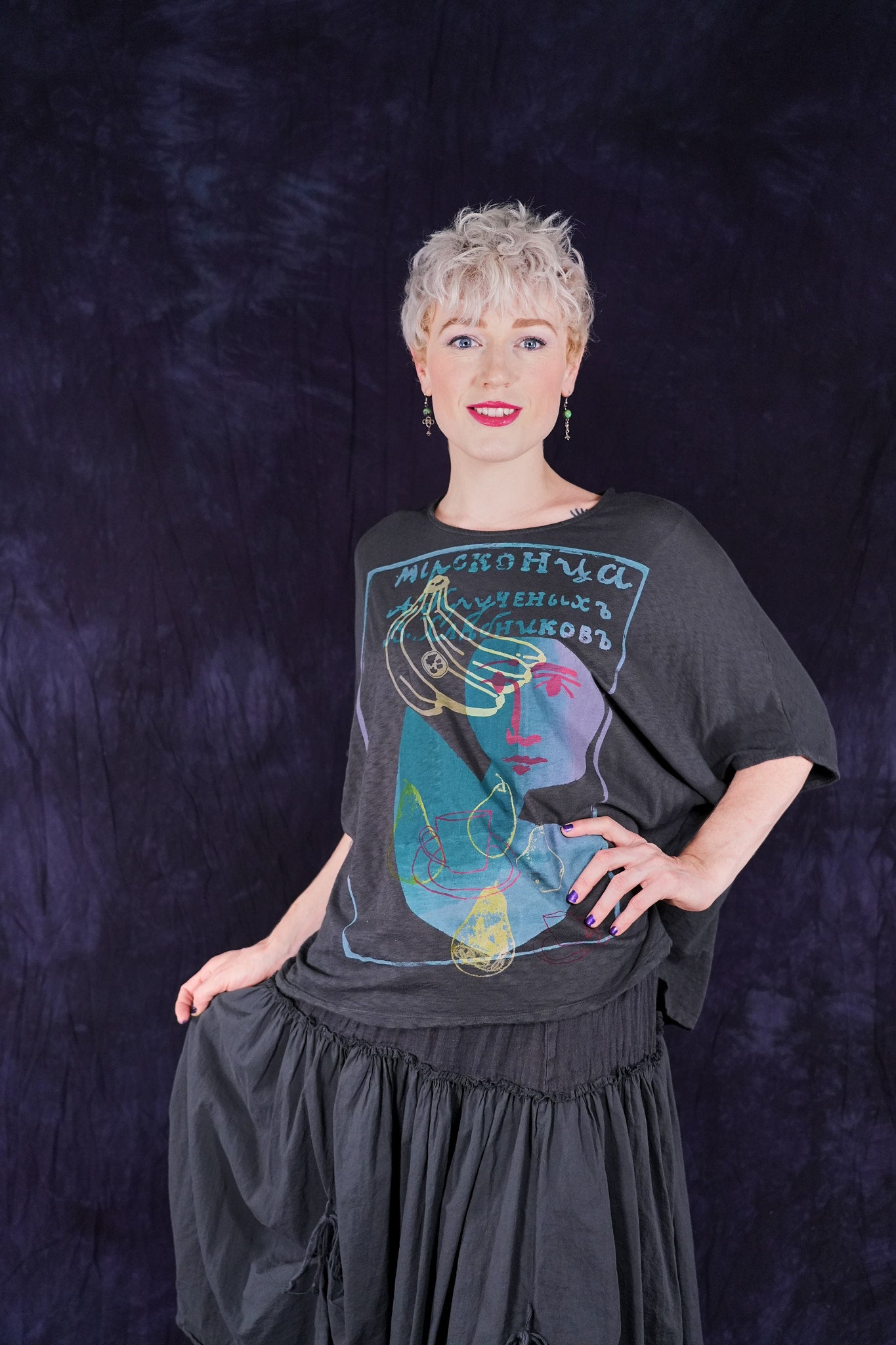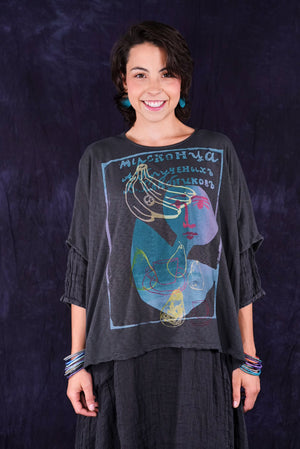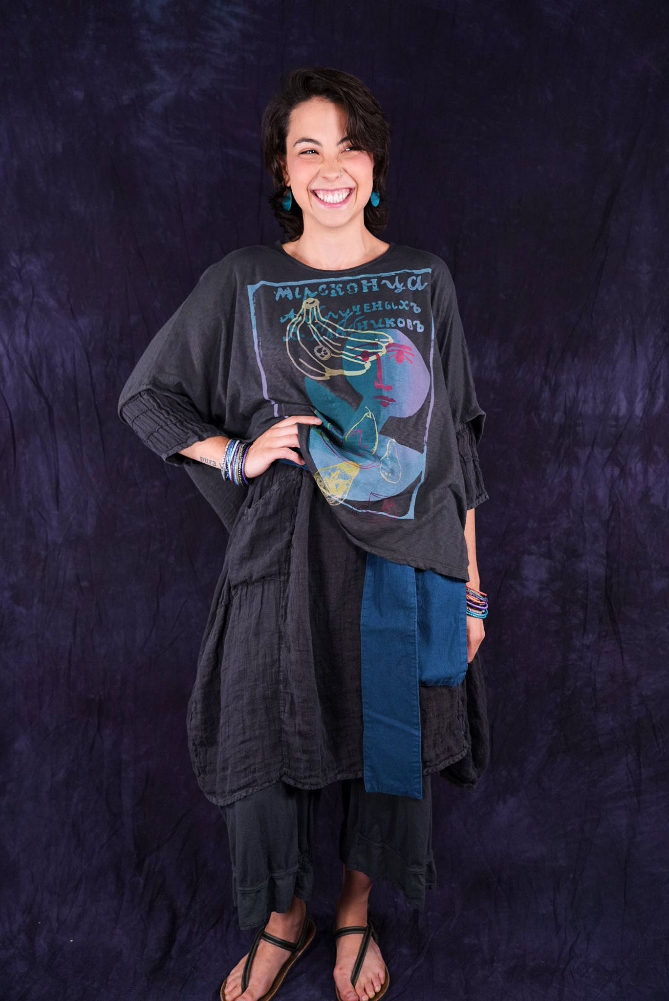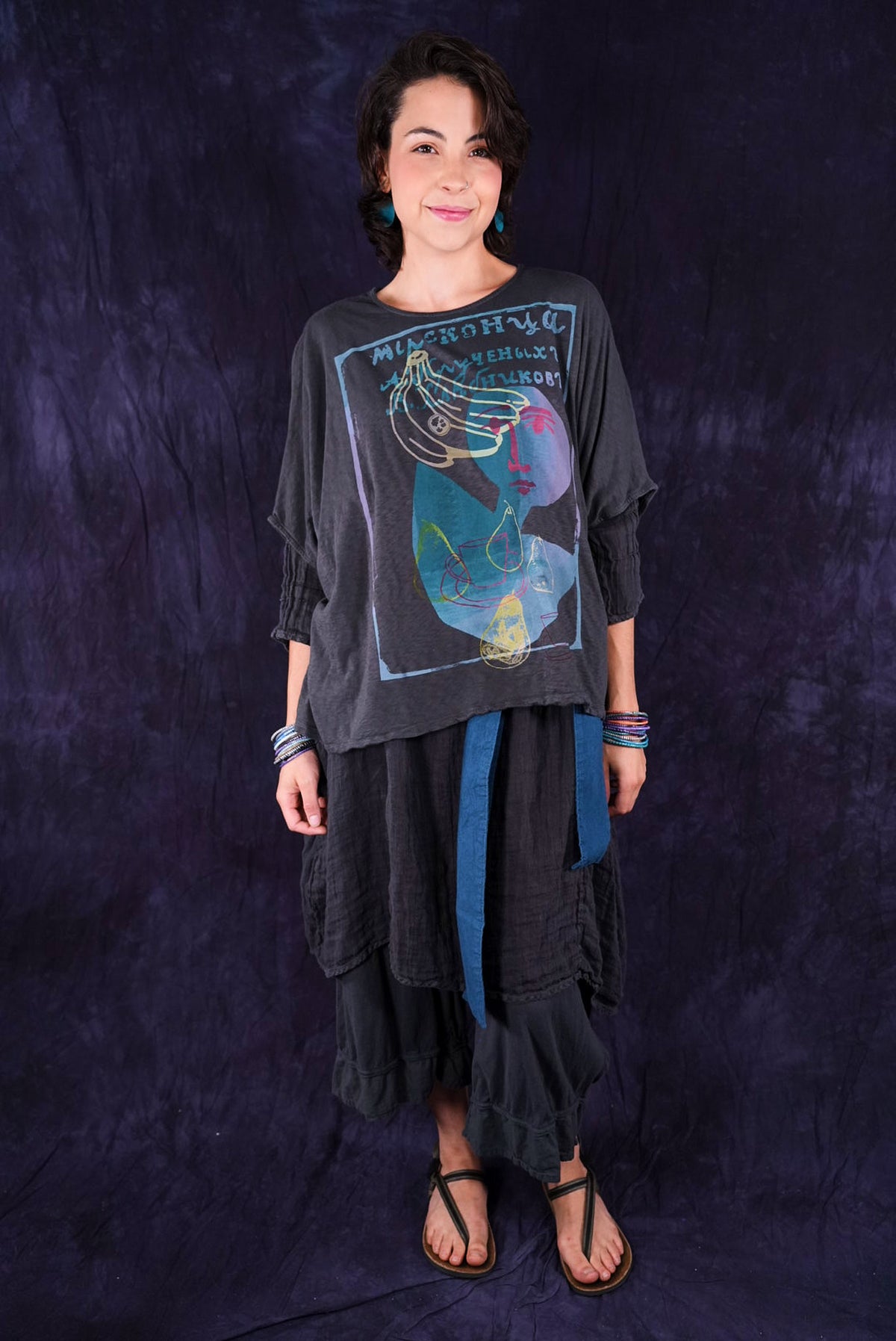 Light as air organic cotton fabric with beautiful prints to bring you joy! These boxier wide tees can be worn alone or as a over layer to longer tanks and Mid-layers. It's a multi-purpose tee!