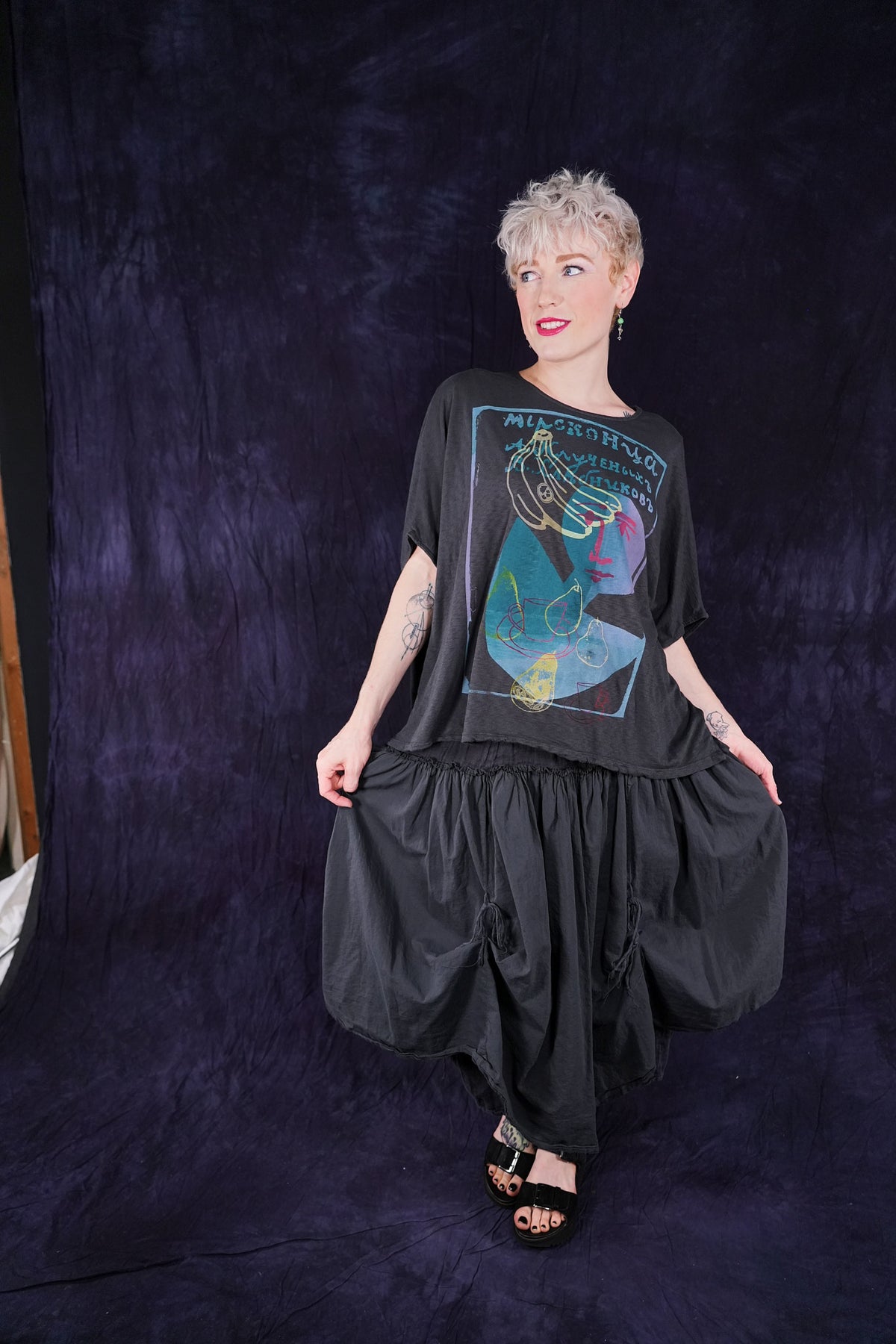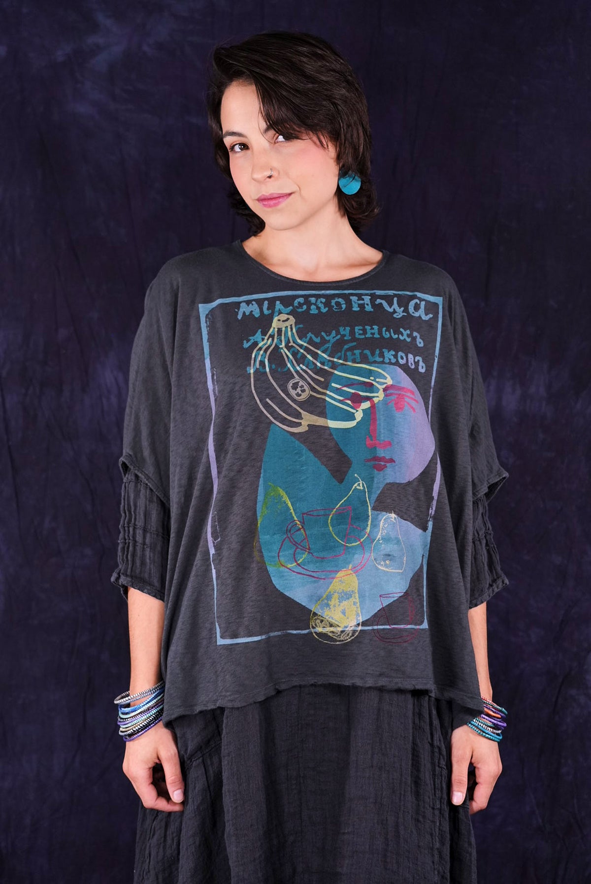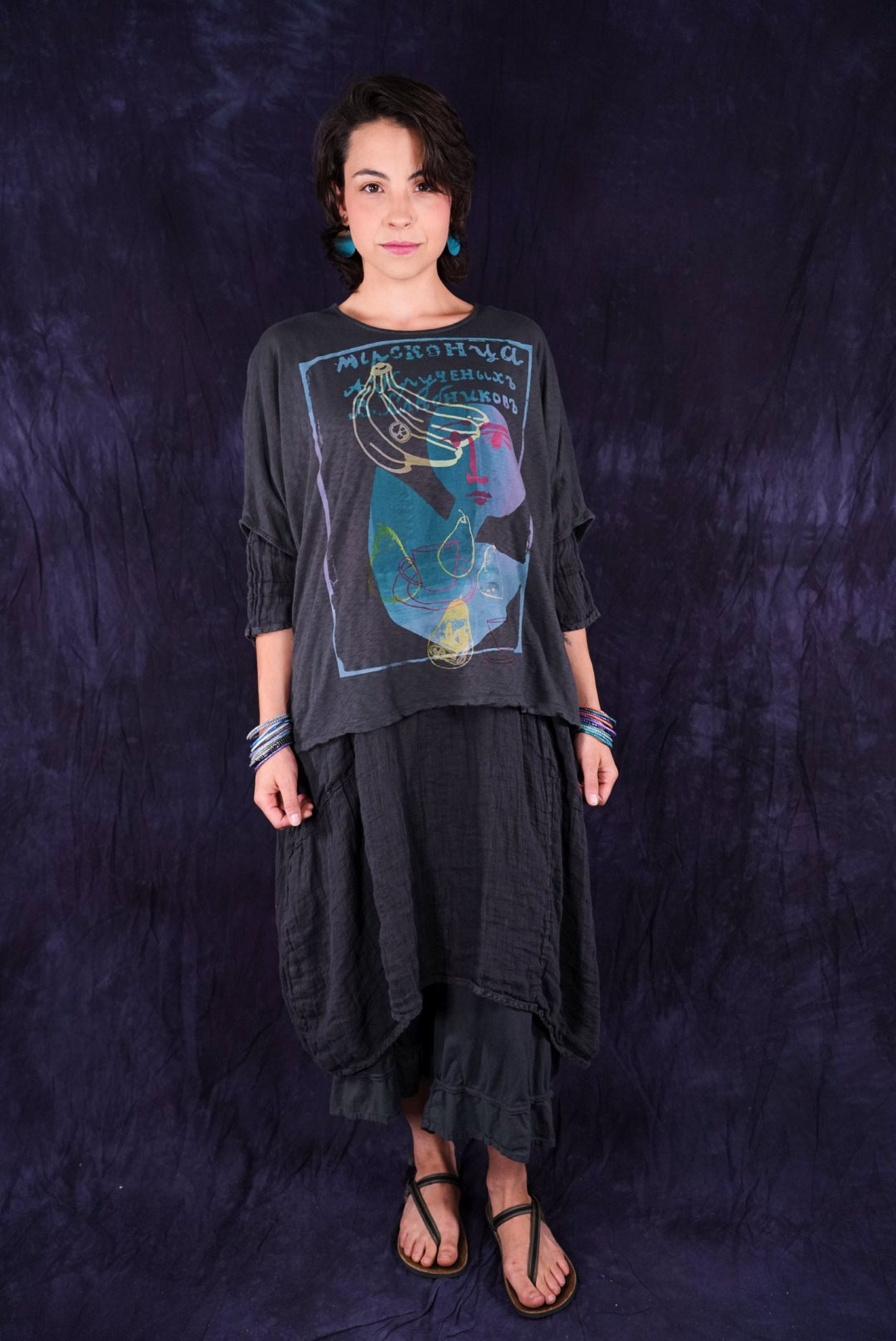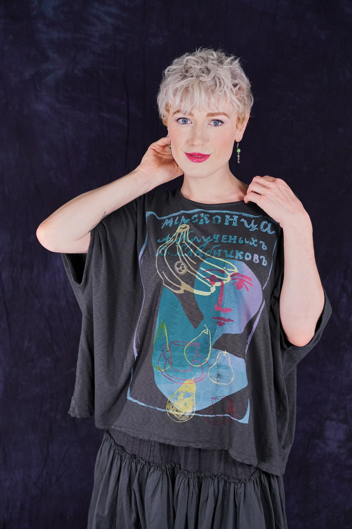 Light as air organic cotton fabric with beautiful prints to bring you joy! These boxier wide tees can be worn alone or as a over layer to longer tanks and Mid-layers. It's a multi-purpose tee!