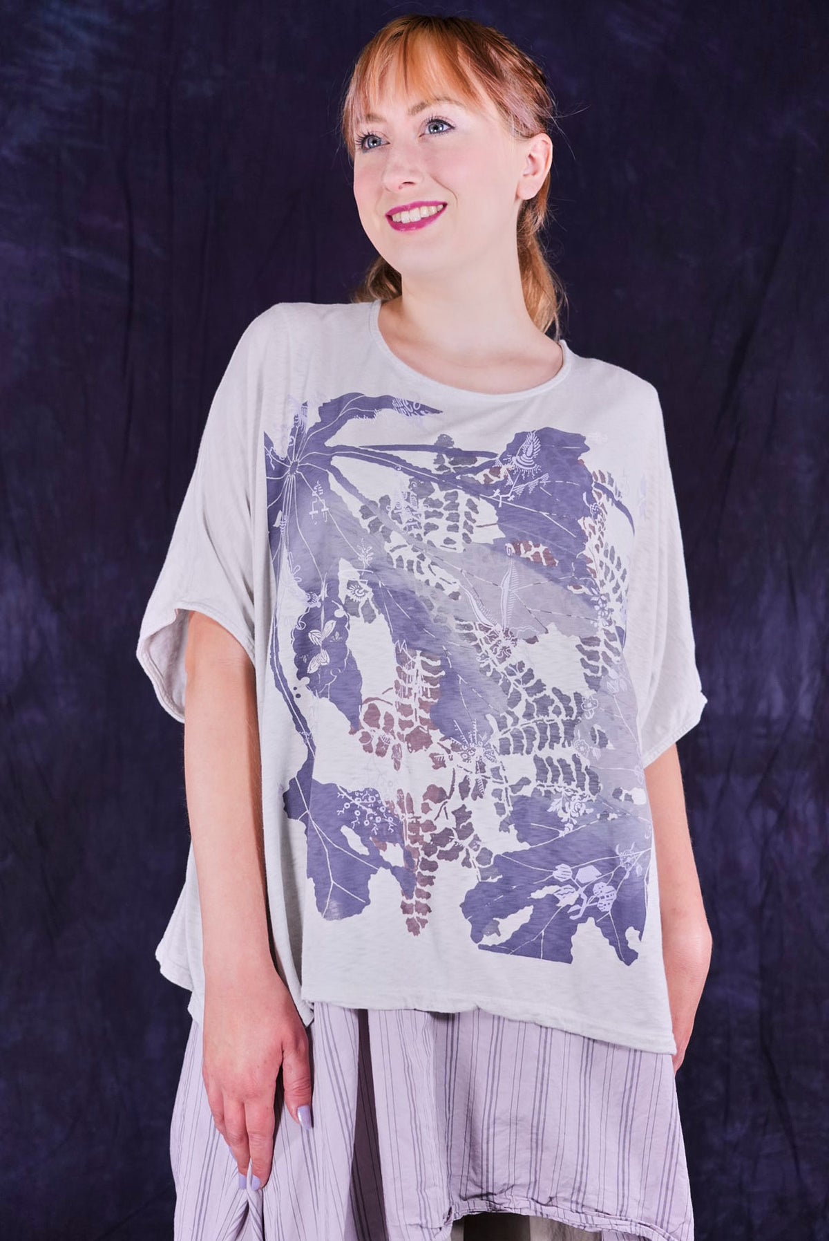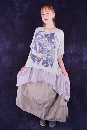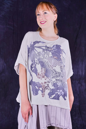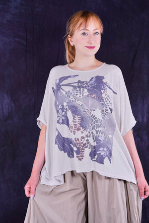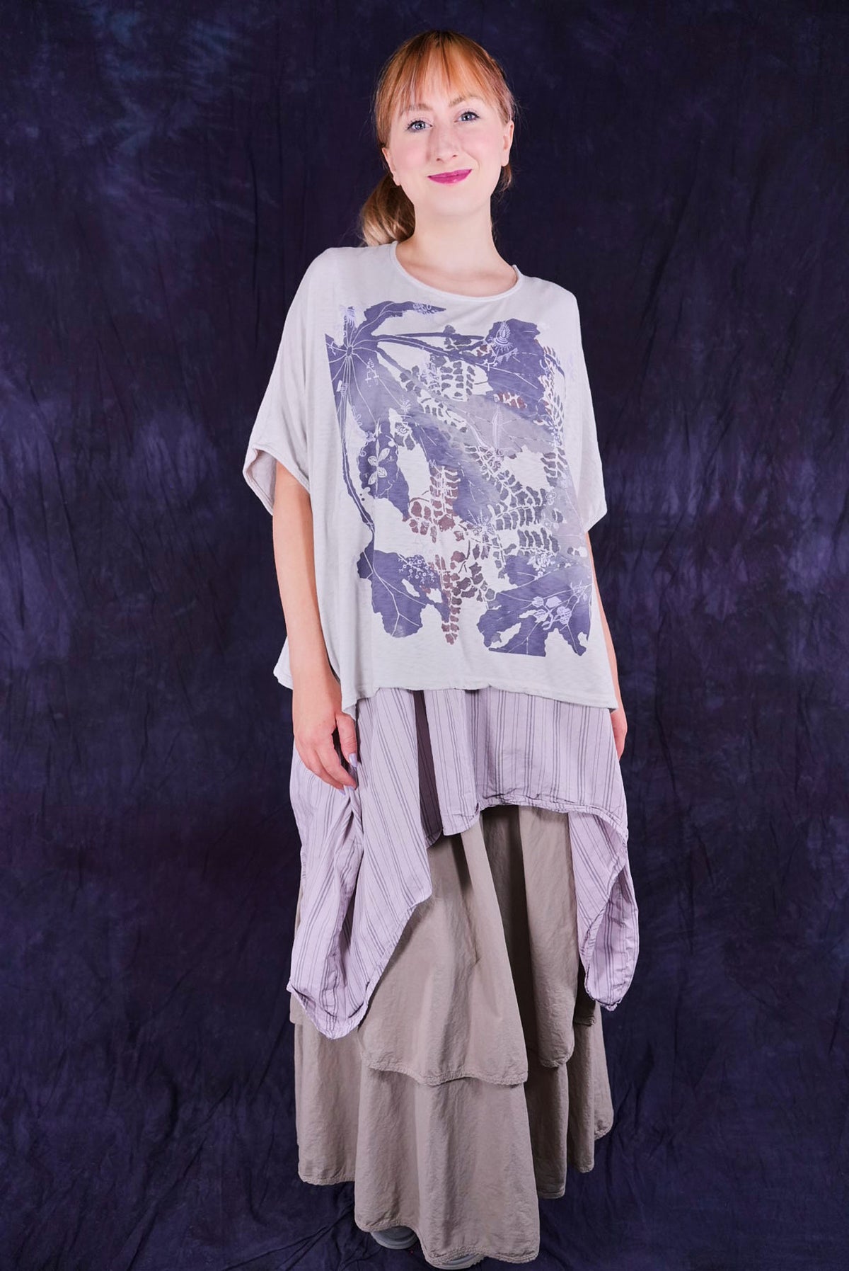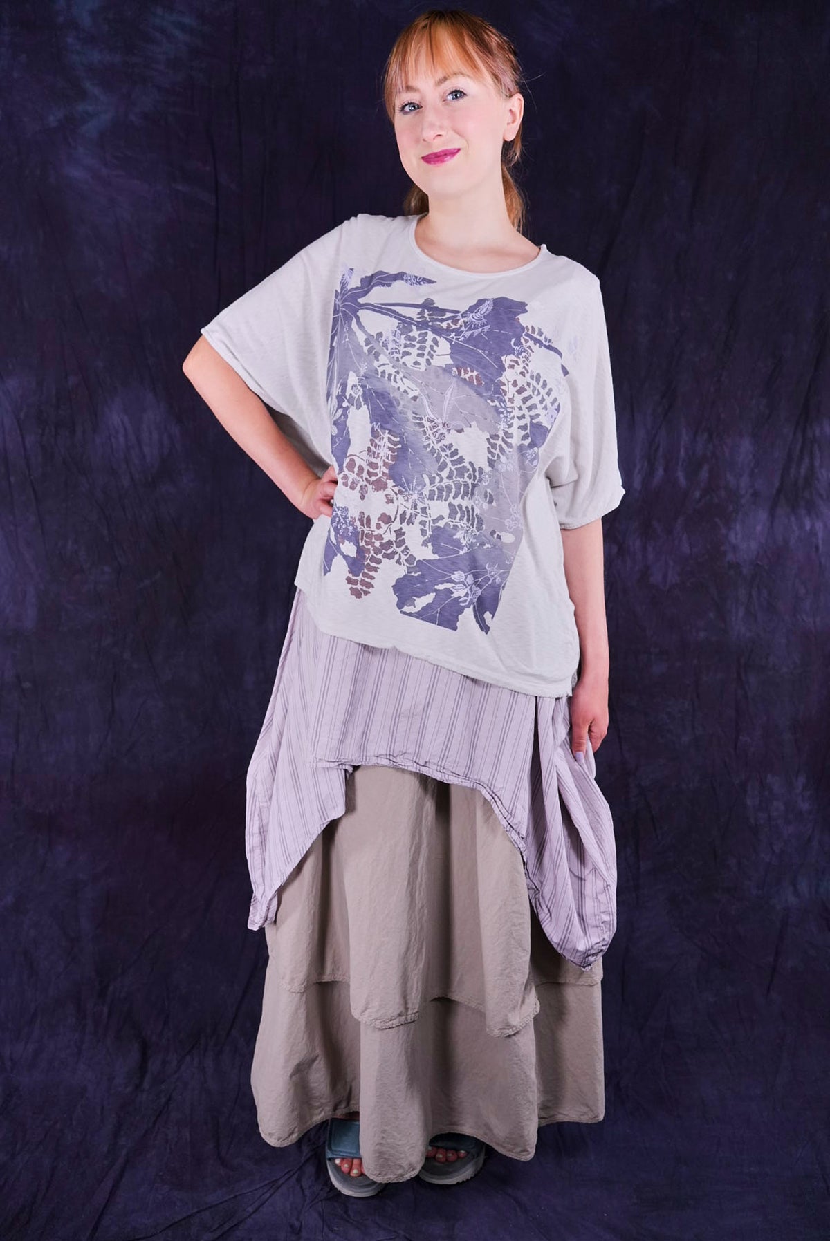 Only a few Light as air organic cotton fabric with beautiful prints to bring you joy! These boxier cropped tees can be worn alone or as a over layer to longer tanks and Mid-layers. It's a multi-purpose tee. Try this layered over lightweight 2315 in linen, or over the striped Hado Shift.