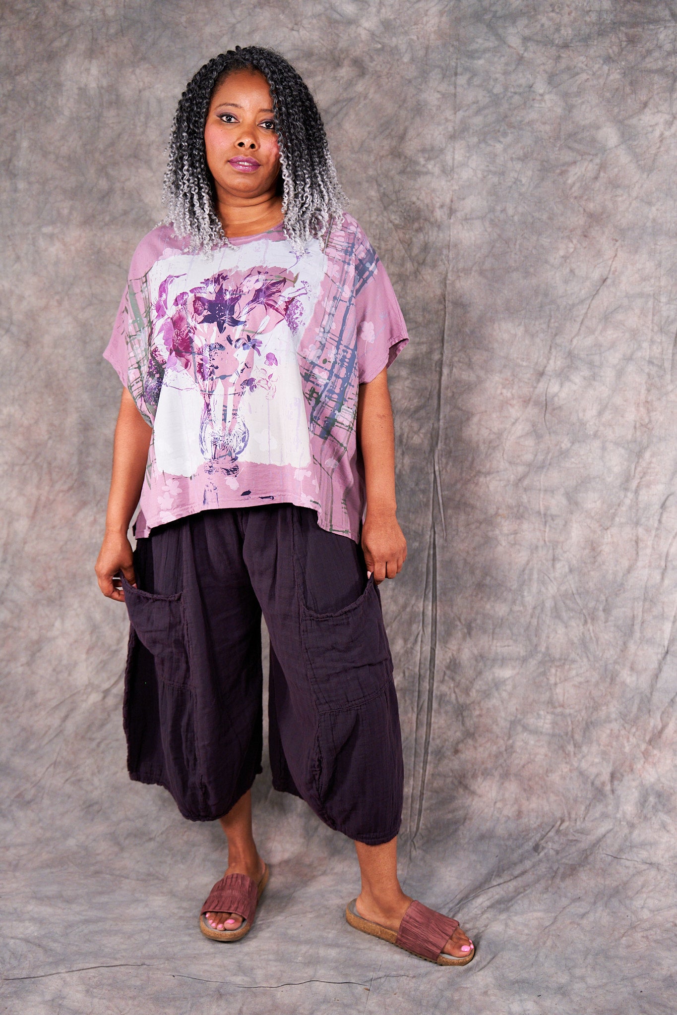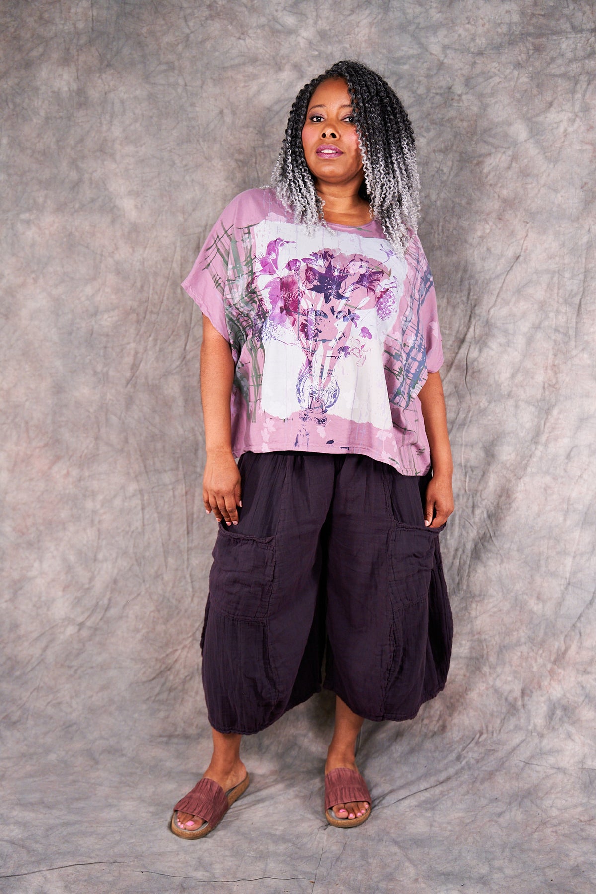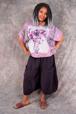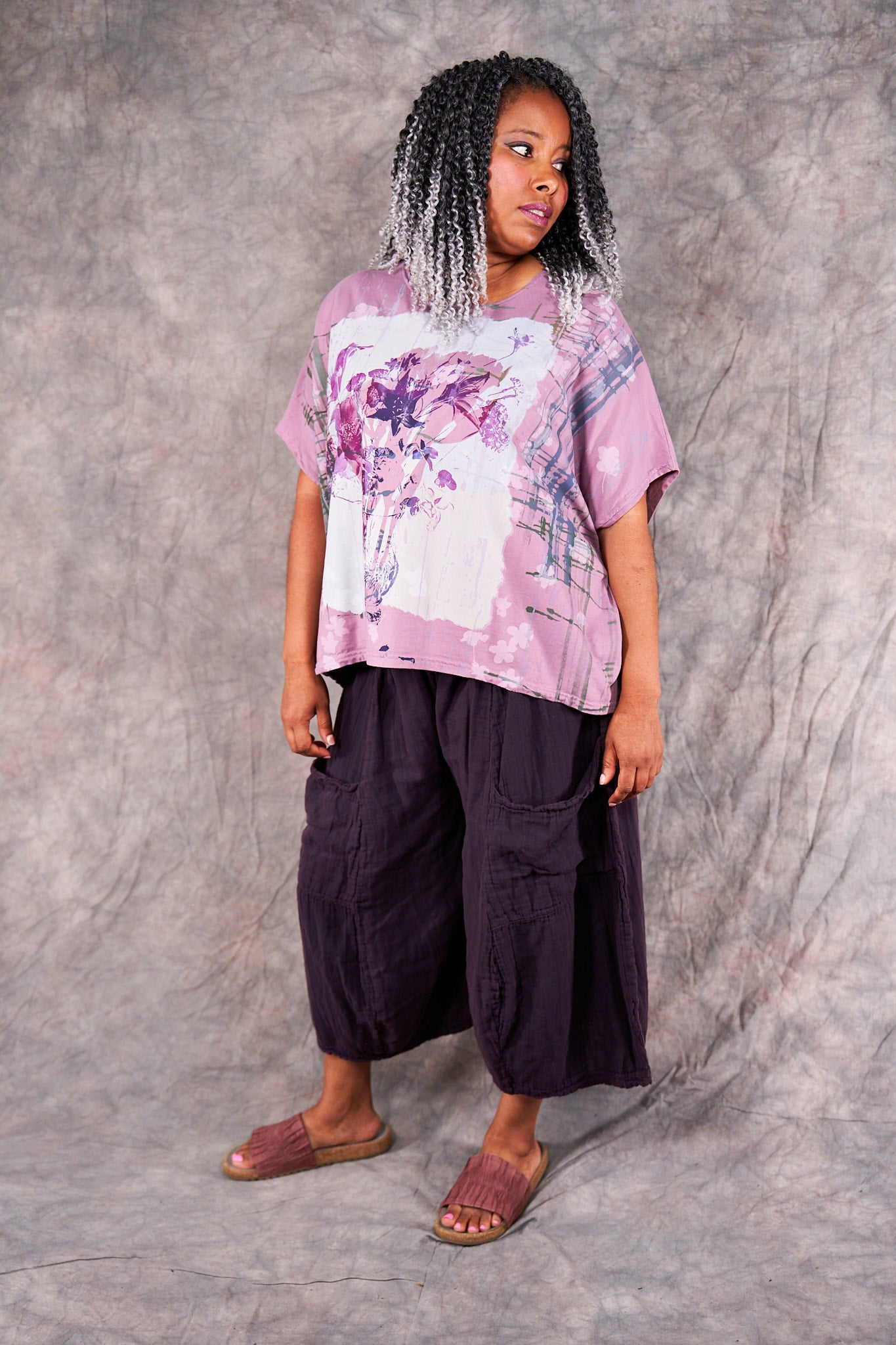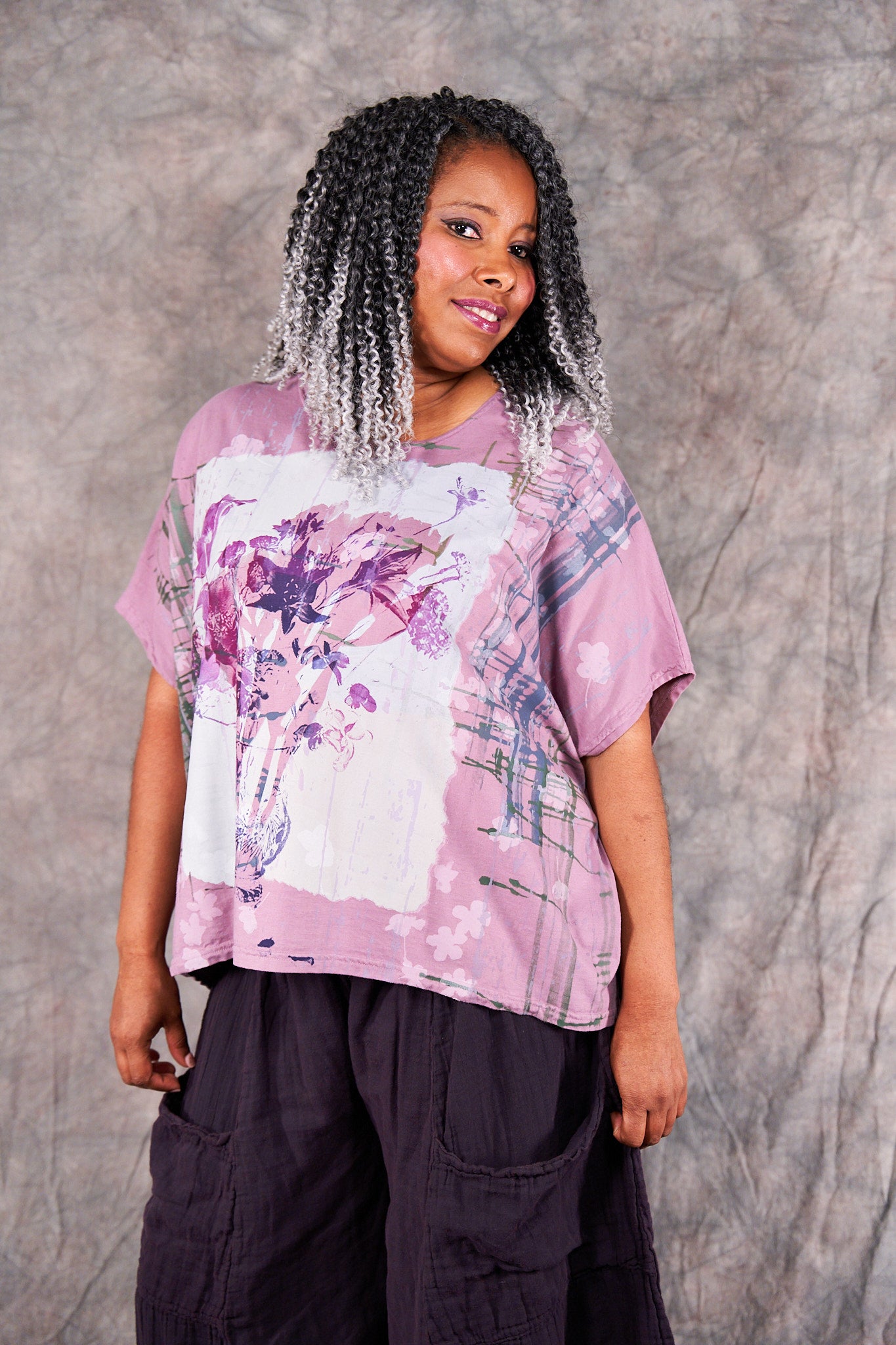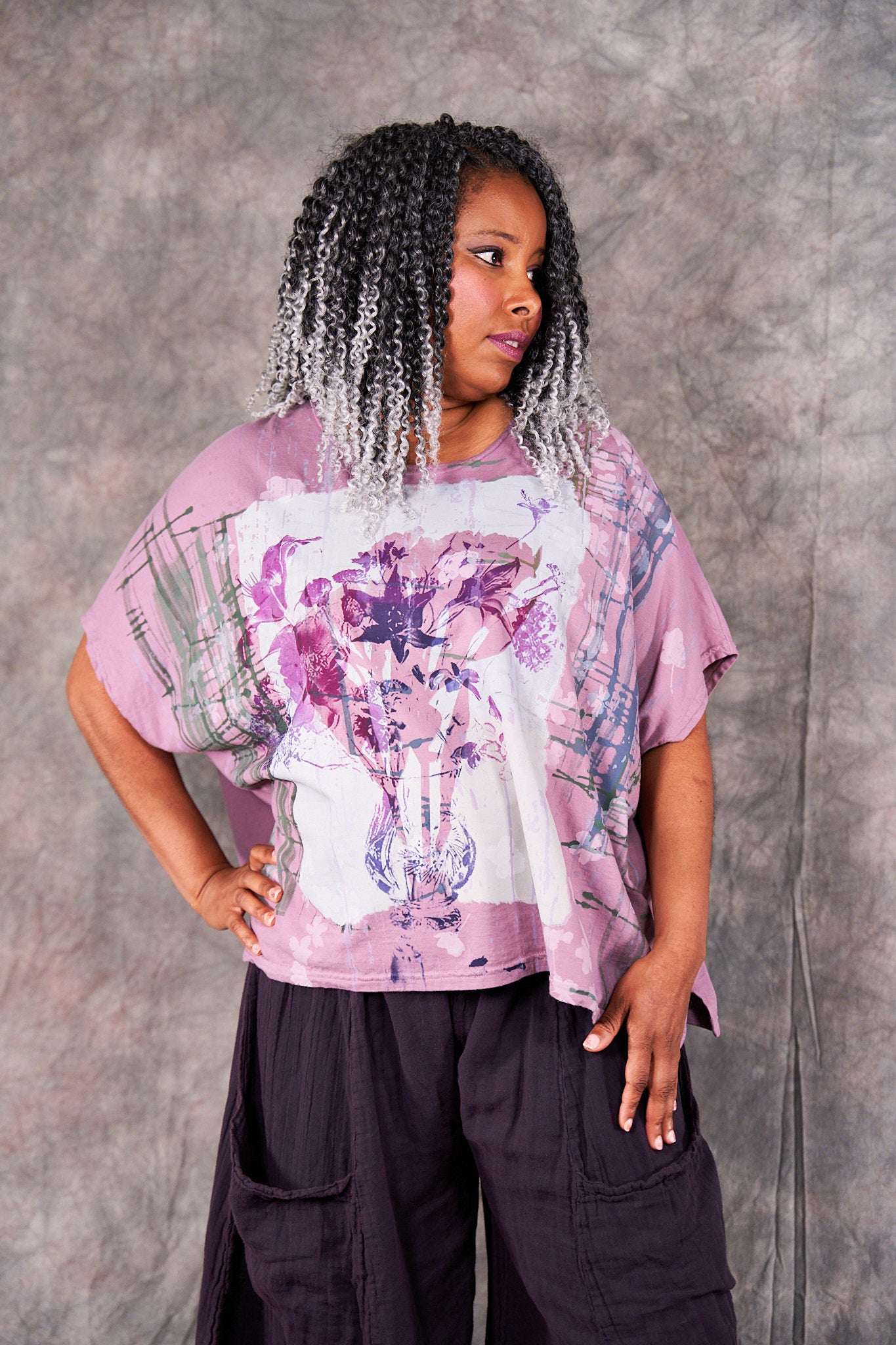 Organic cotton in a simple elegant shape embellished with hand printed imagery.