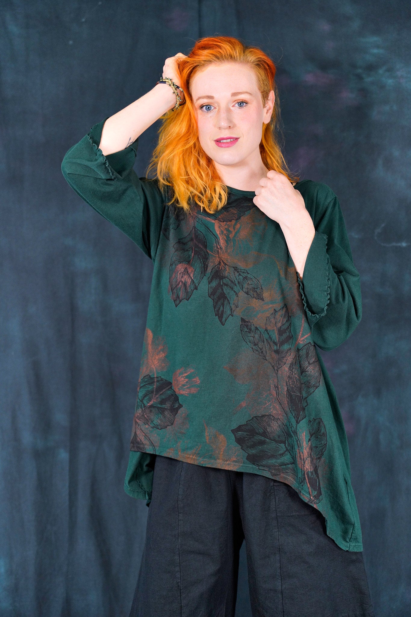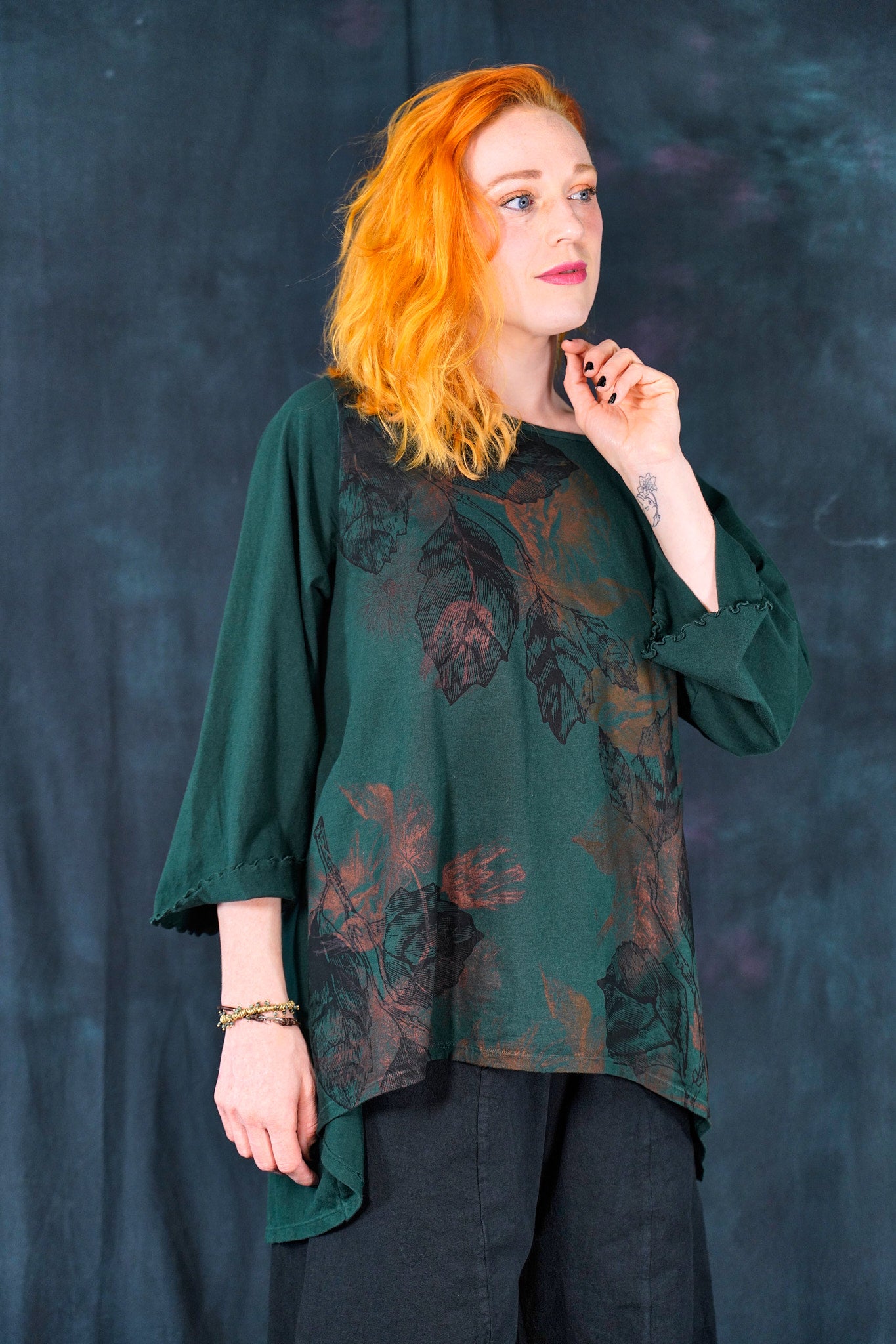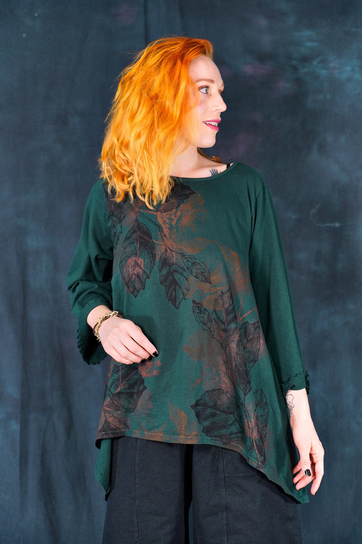 A NEW organic hi-lo tunic with a longer back. layer over a striped layer tee for a fun look.