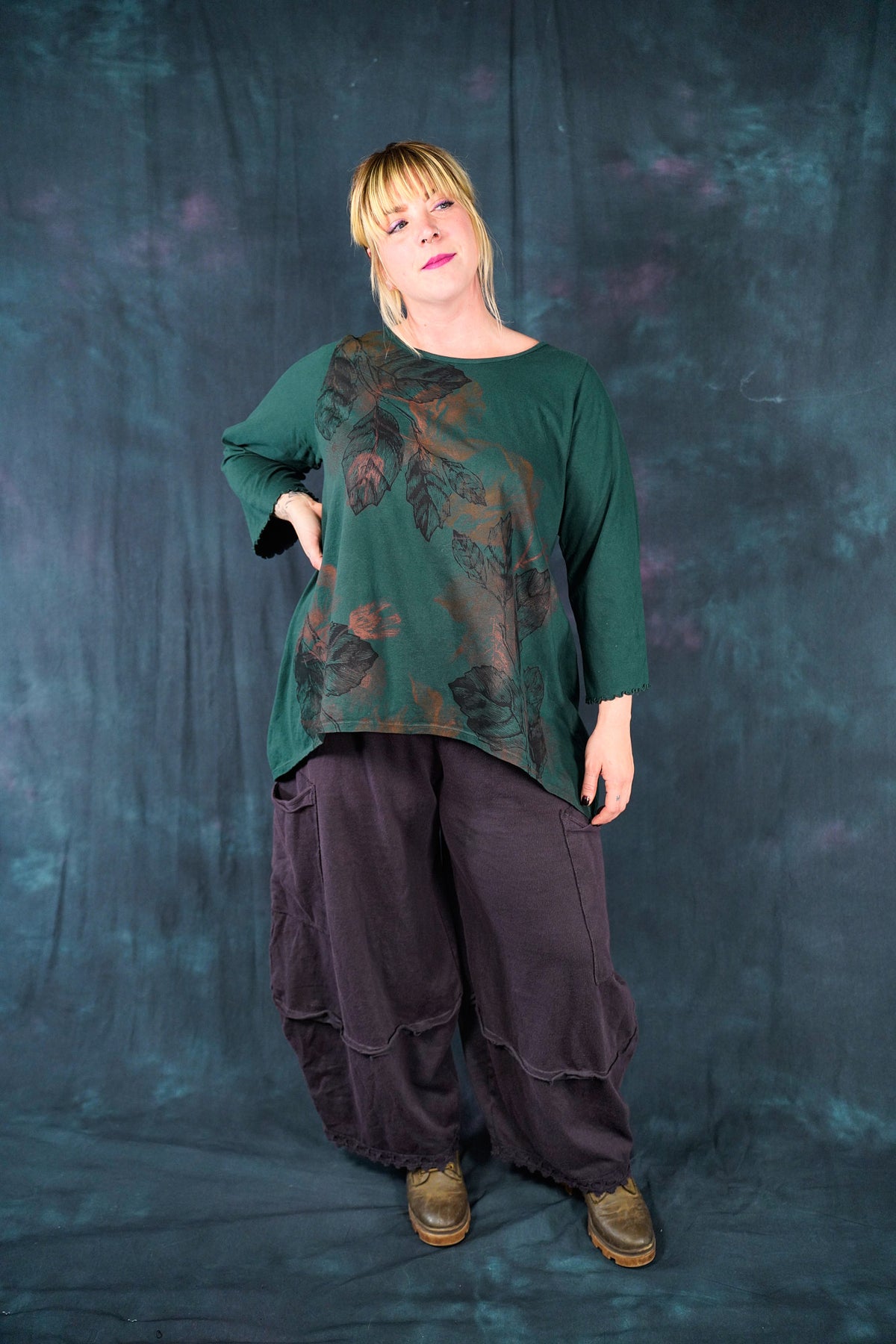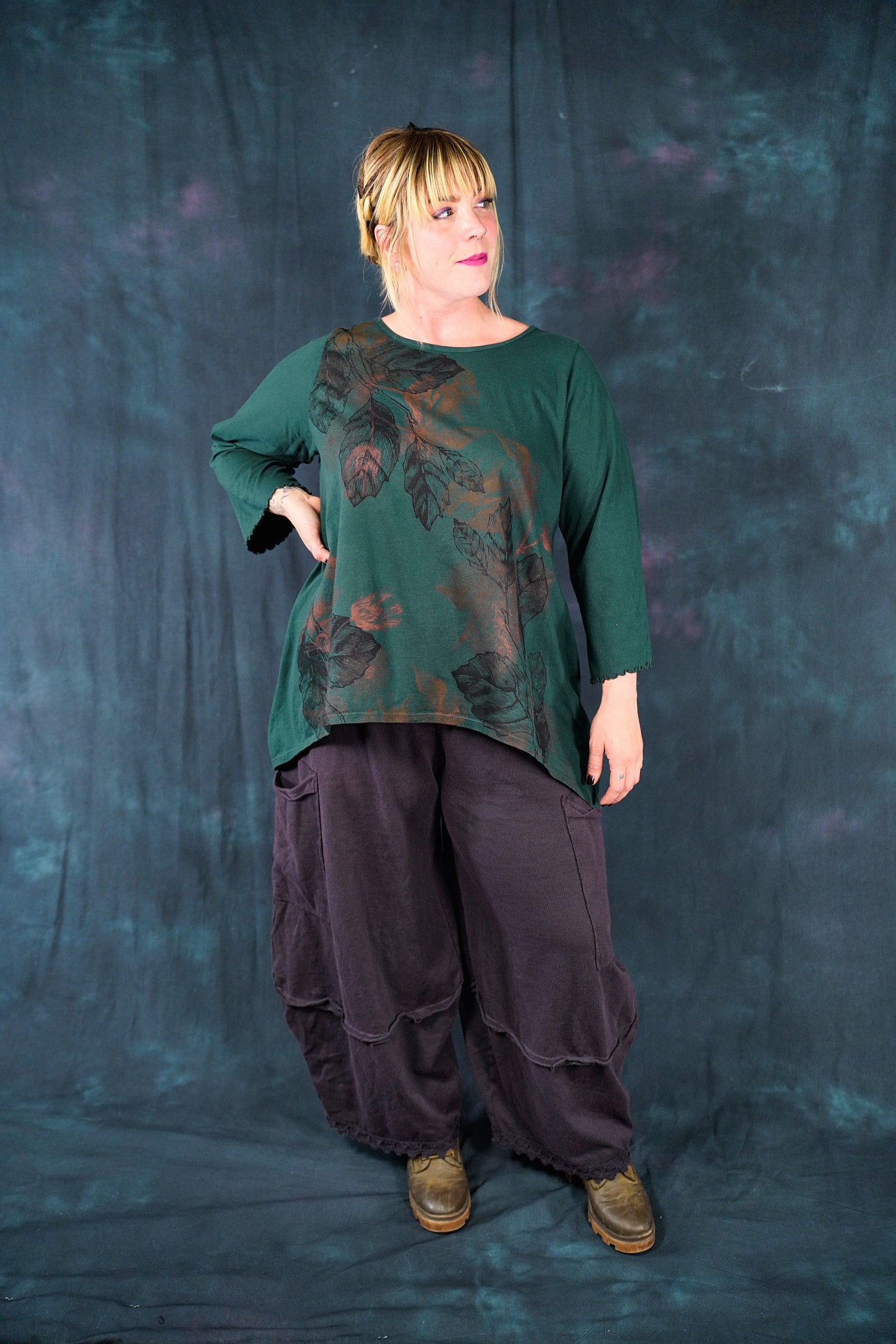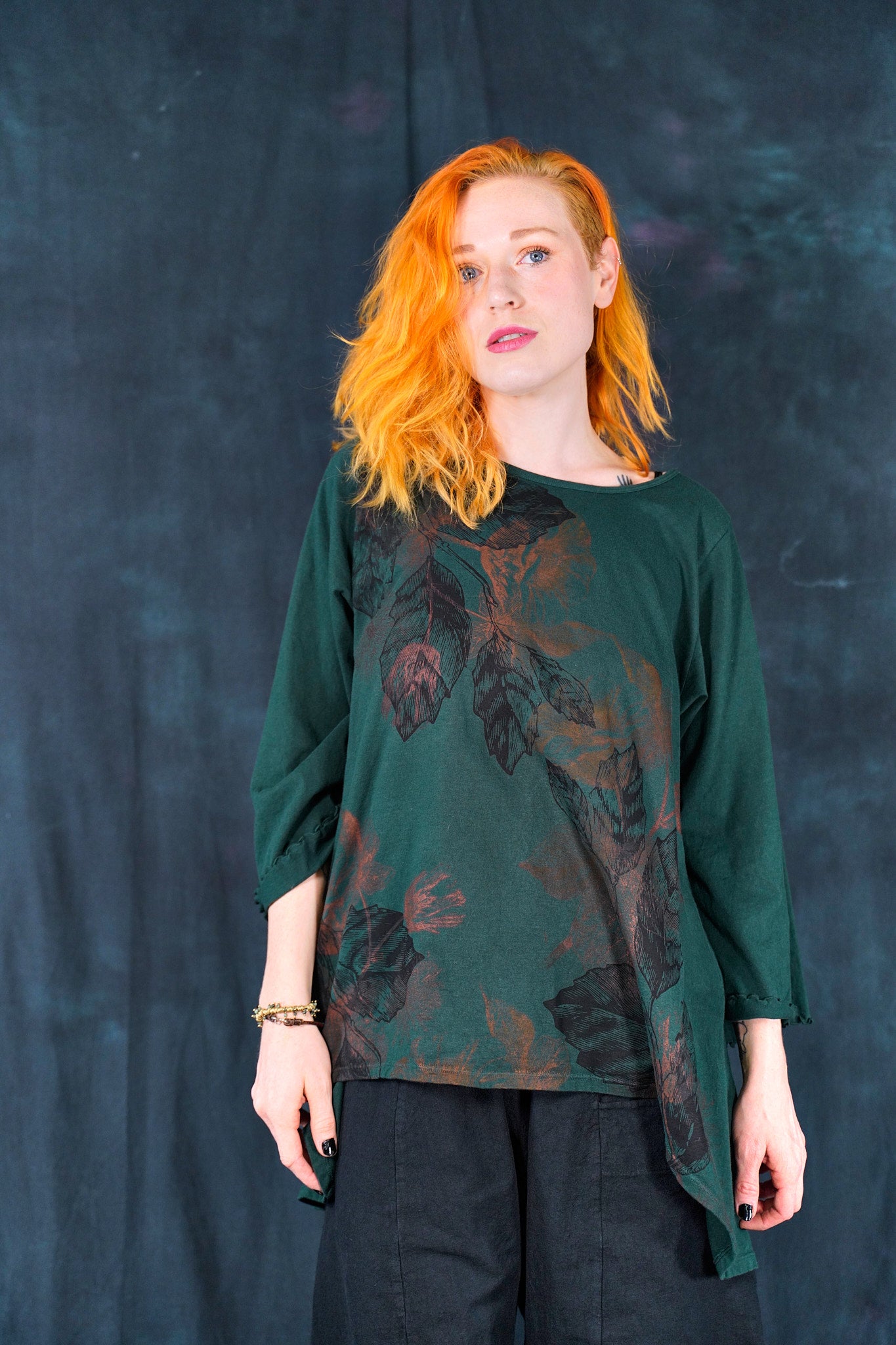 A NEW organic hi-lo tunic with a longer back. layer over a striped layer tee for a fun look.