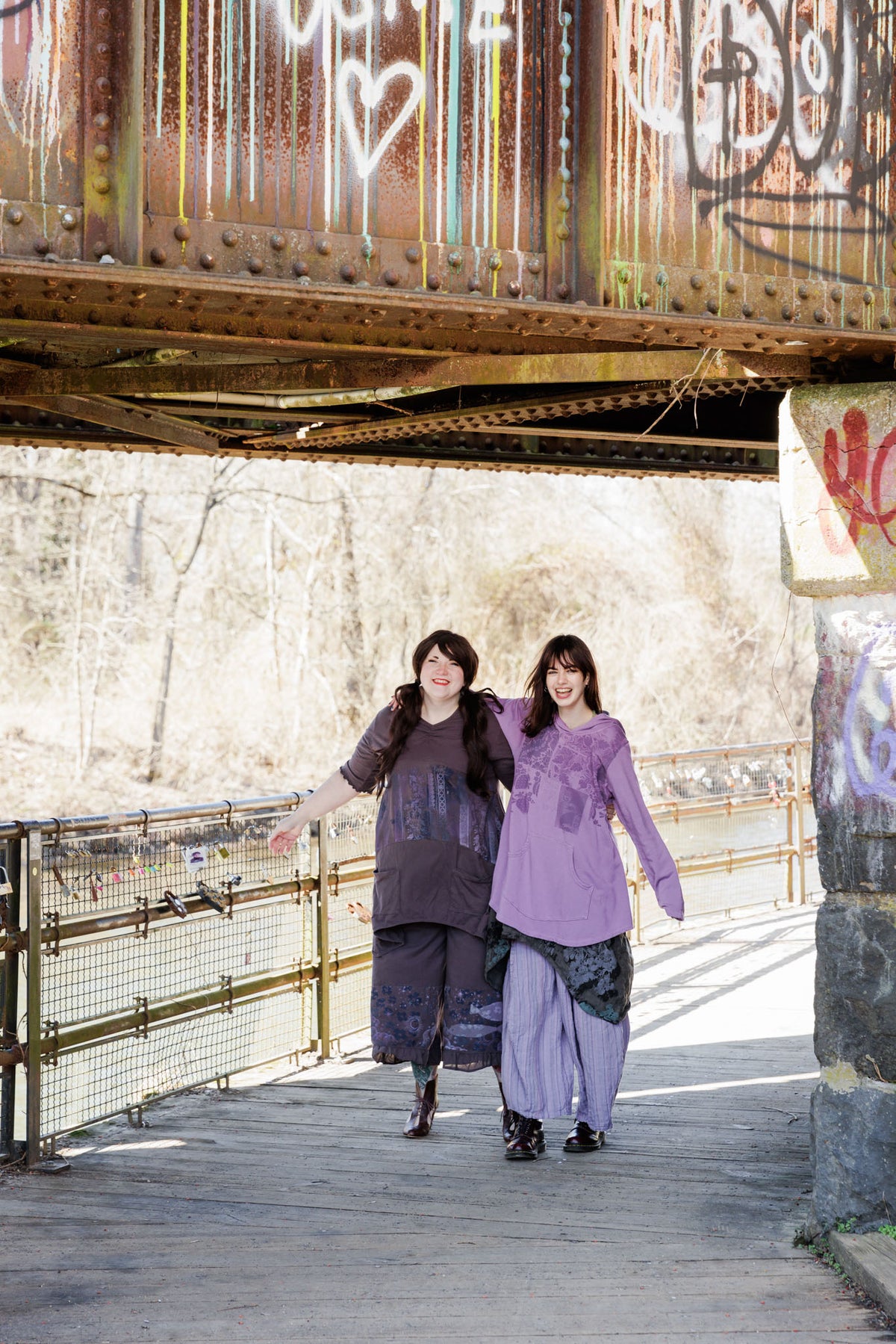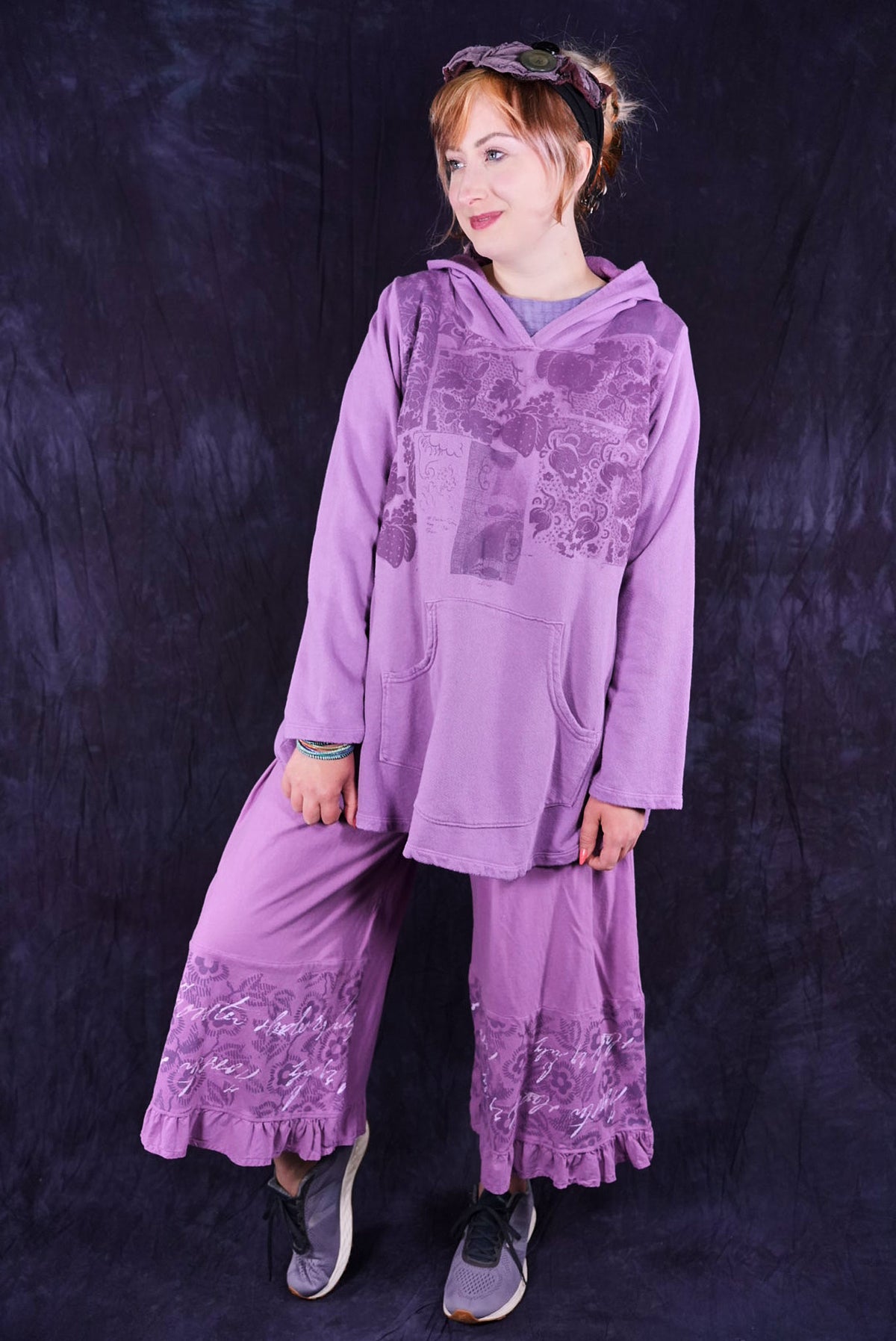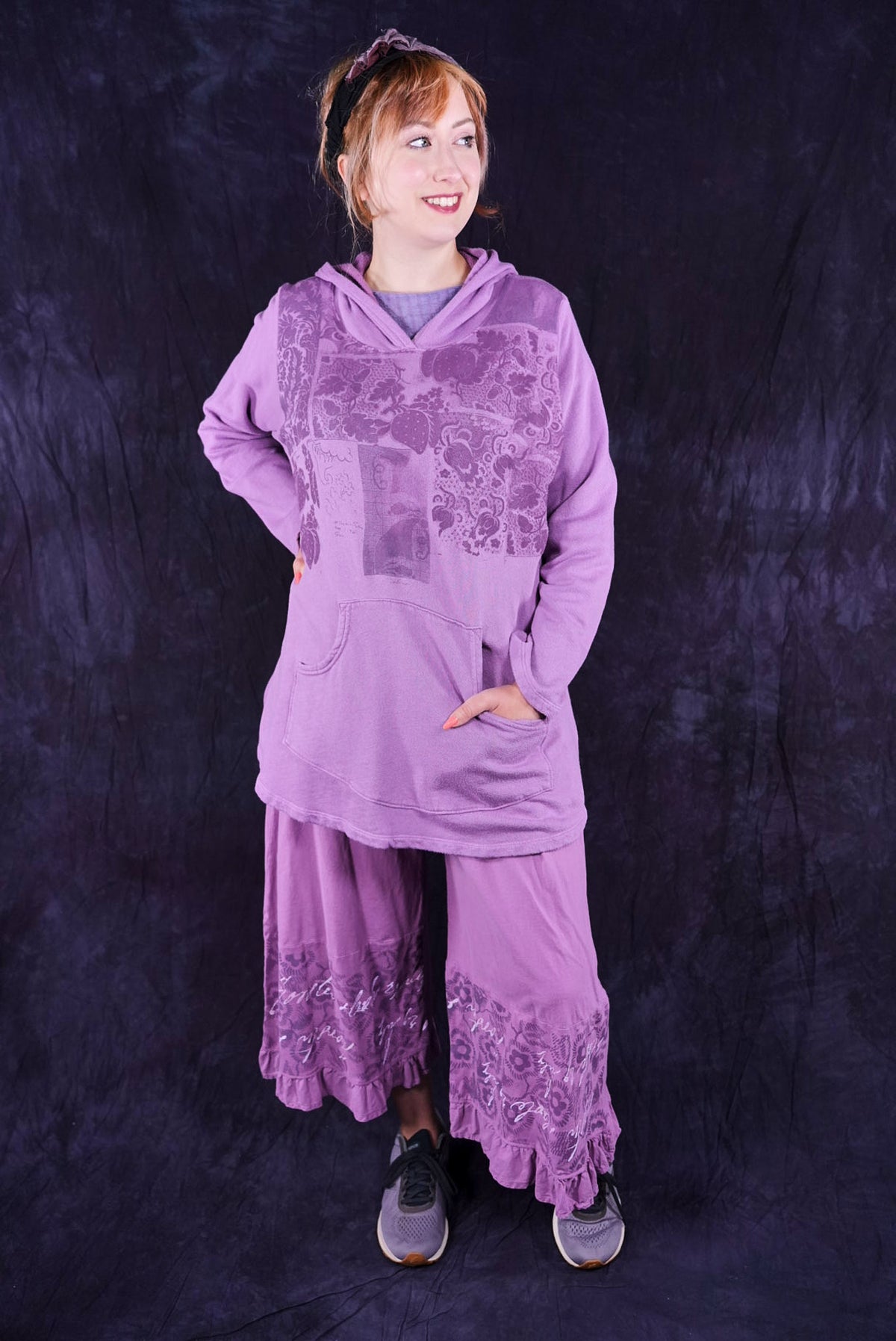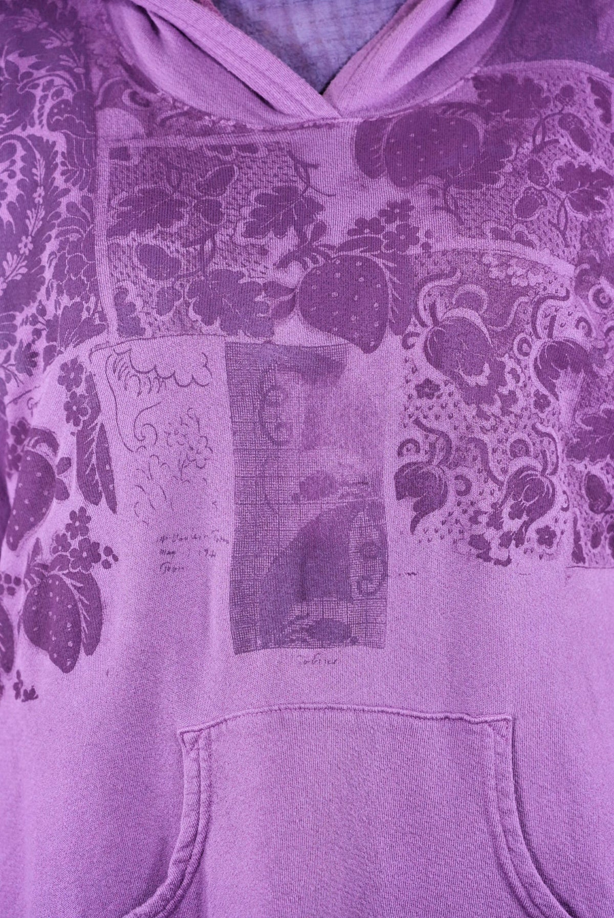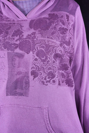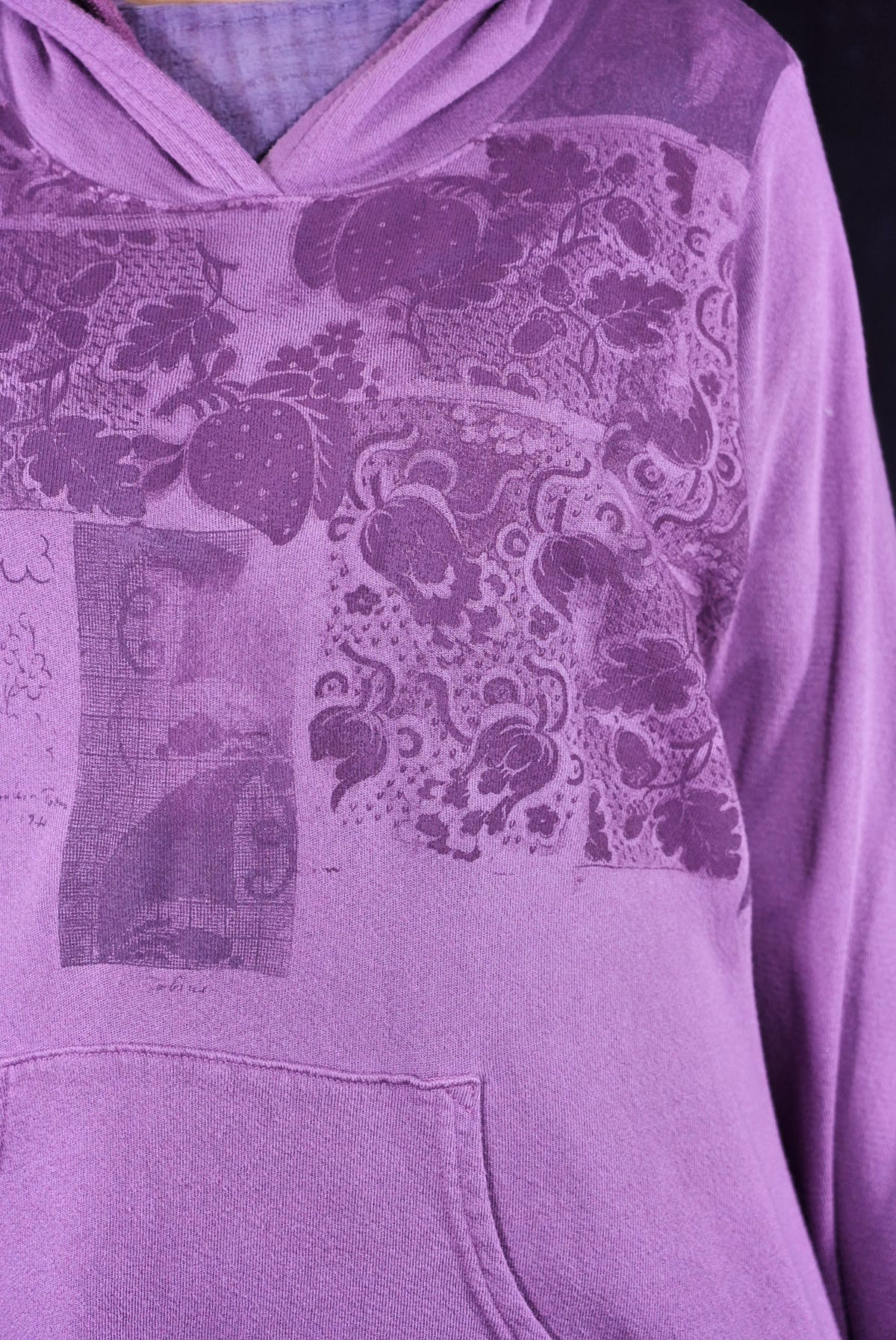 A simple print design inspired by vintage textiles. A nice lighter weight hoodie with pockets to layer, wear any season! Gently feminine shaping through the body, not too boxy.