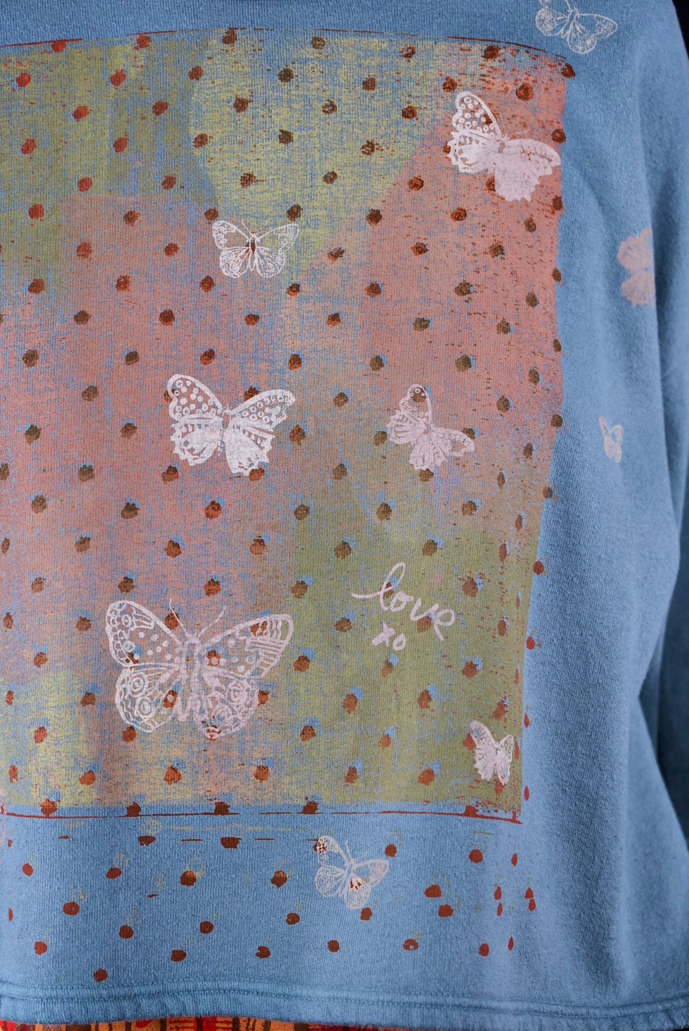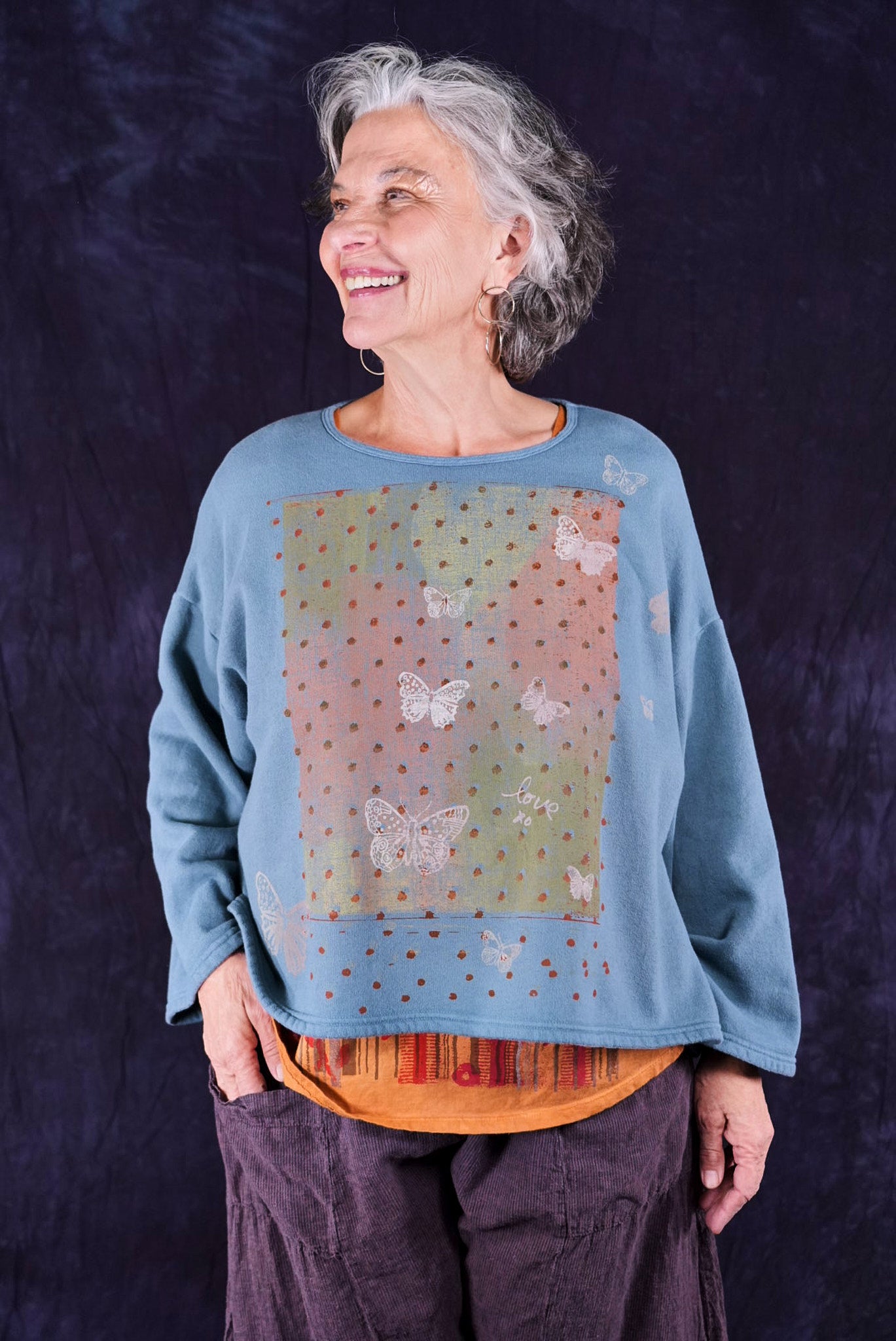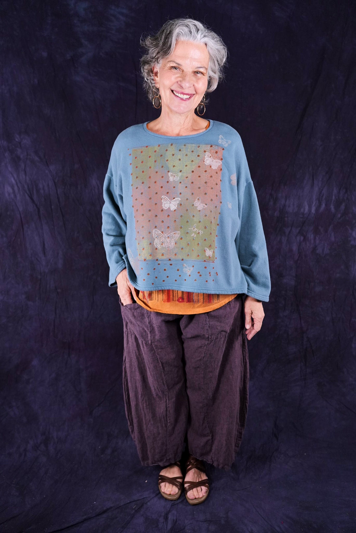Super cute sweatshirt for layering over a tee or tank or even an apron midlayer. Incredibly soft cotton over-layer for those chilly mornings and evenings... This a staple piece that will help you transition from season to season.