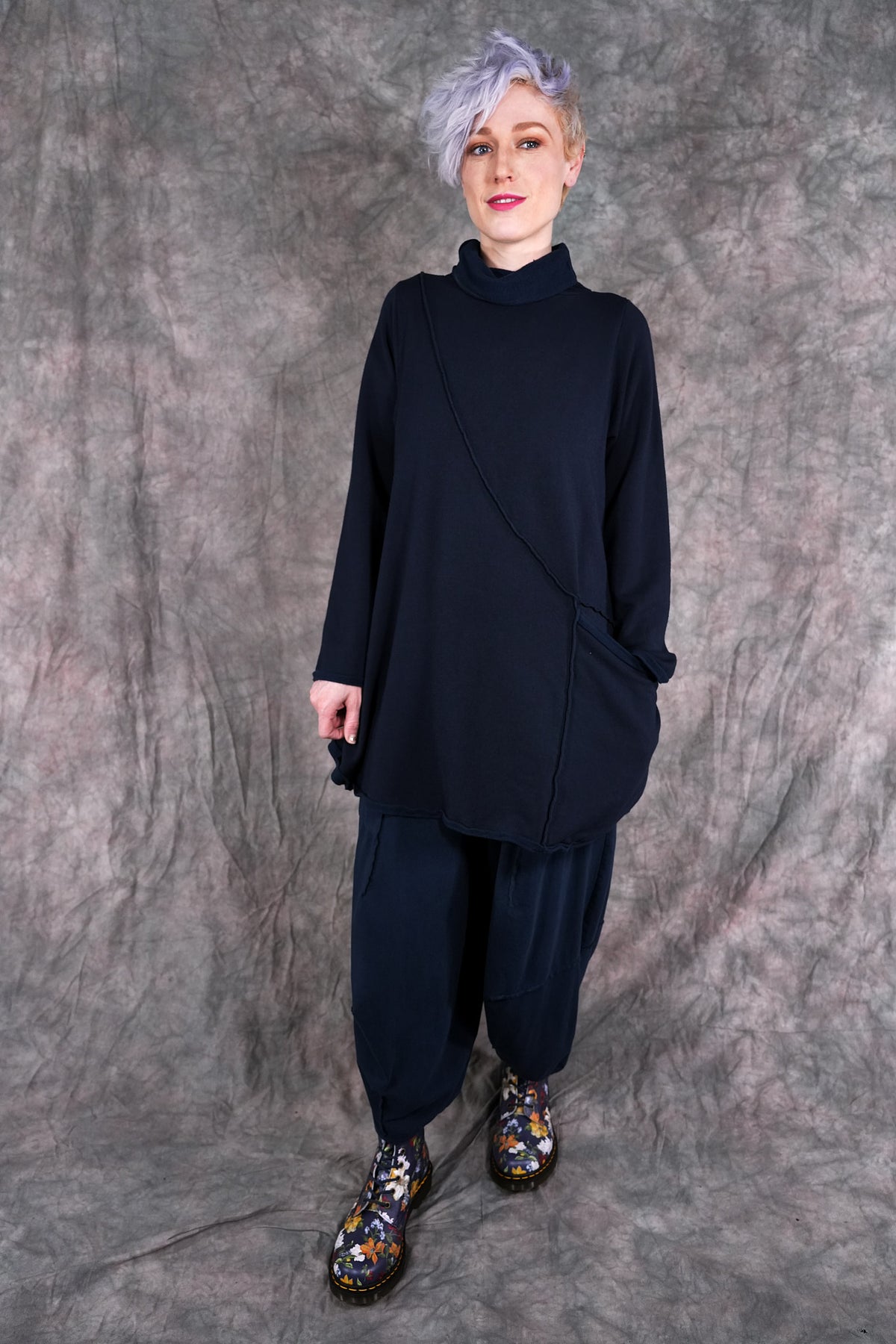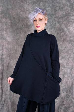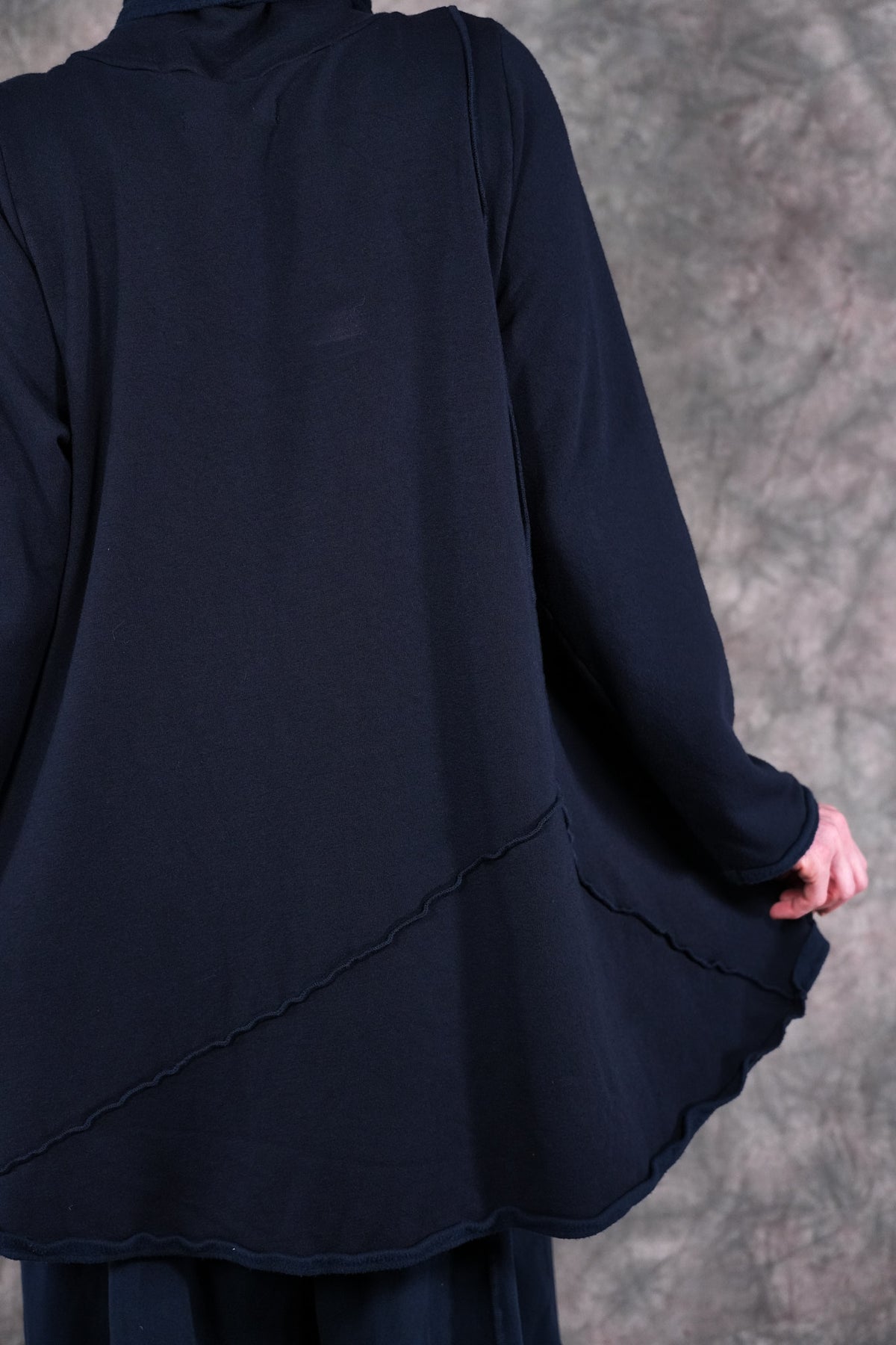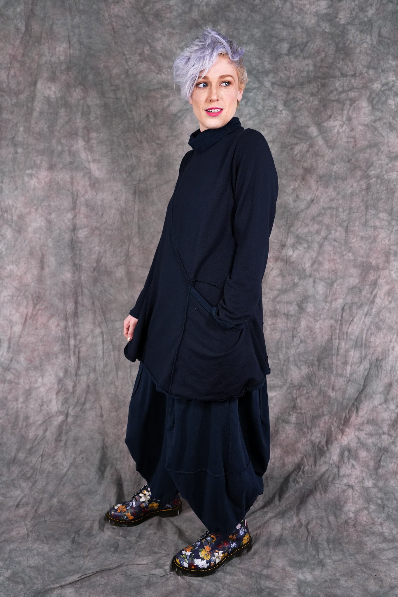 Well, we made too many and we want to share them with you- so here they are at a great price! Made from incredibly soft organic cotton modal stretch fleece. Smooth outside, plush and cozy inside. or wear it reversed. Large off center pocket. Flattering seams and shape, will keep you warm without weighing you down. A great sweatshirt to layer!