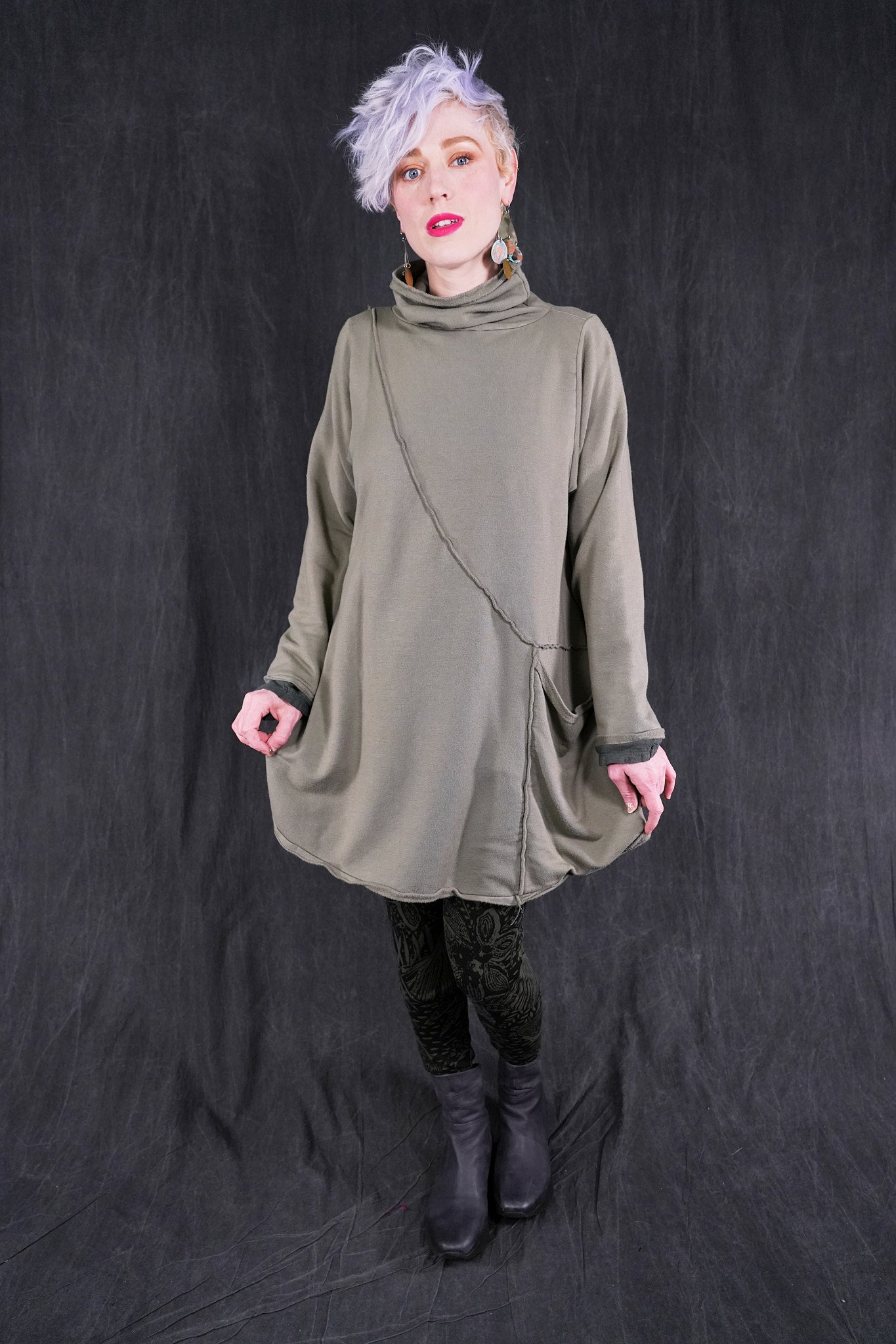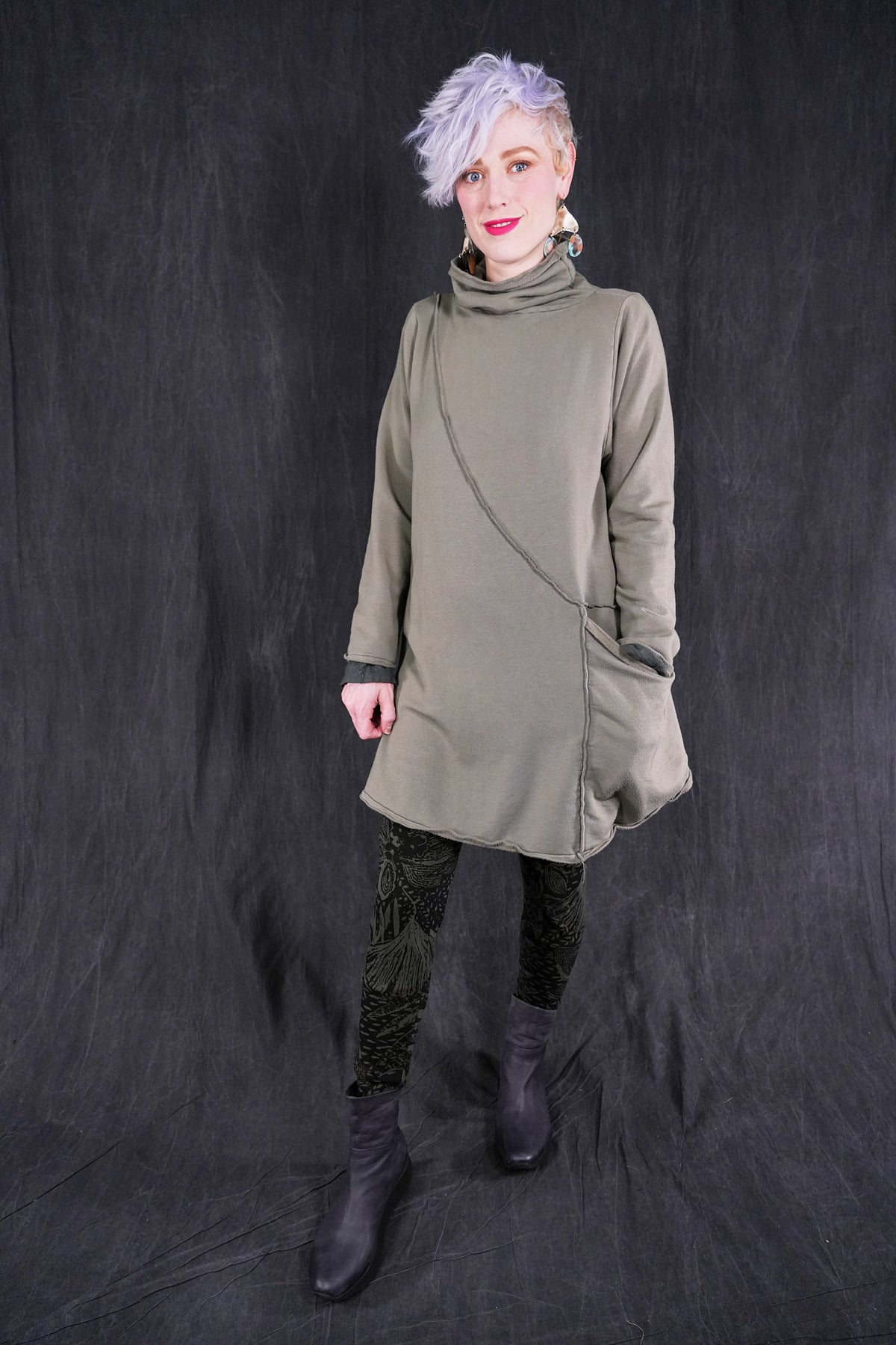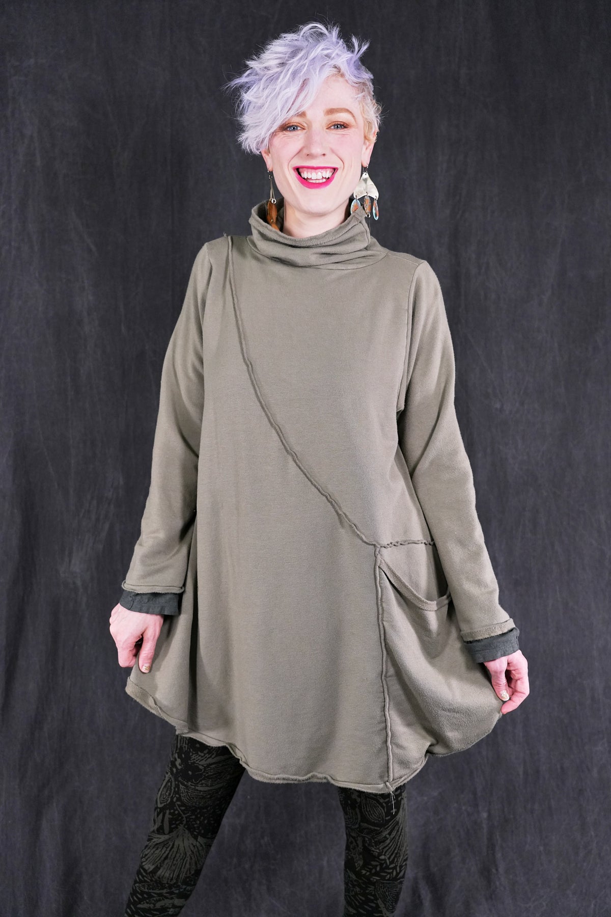 Well, we made too many and we want to share them with you- so here they are at a great price!  Made from incredibly soft organic cotton modal stretch fleece. Smooth outside, plush and cozy inside. or wear it reversed. Large off center pocket. Flattering seams and shape, will keep you warm without weighing you down. A great sweatshirt to layer!
