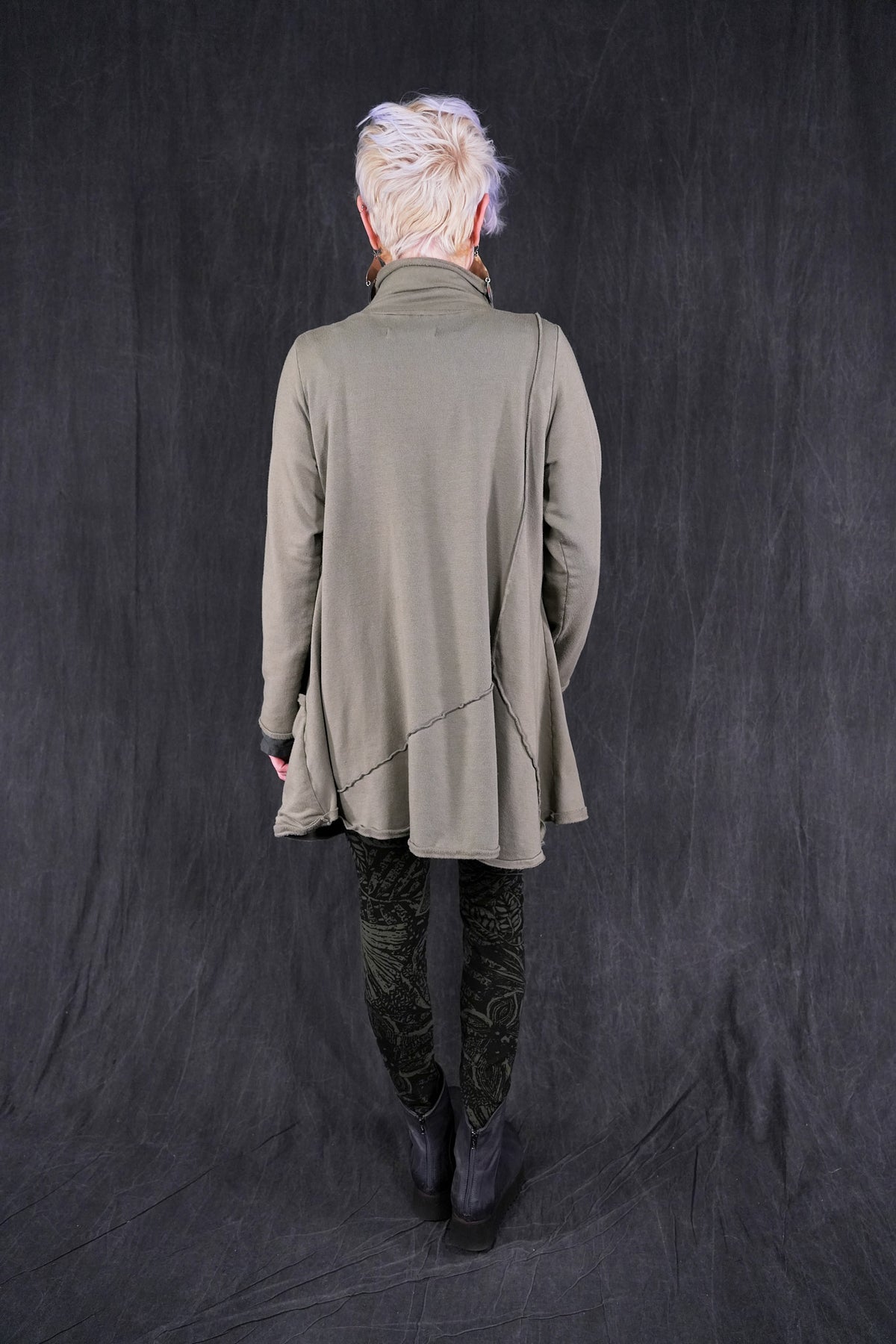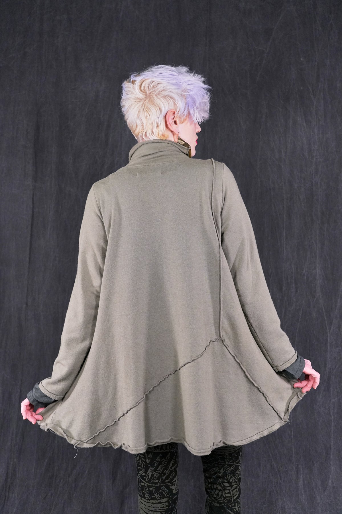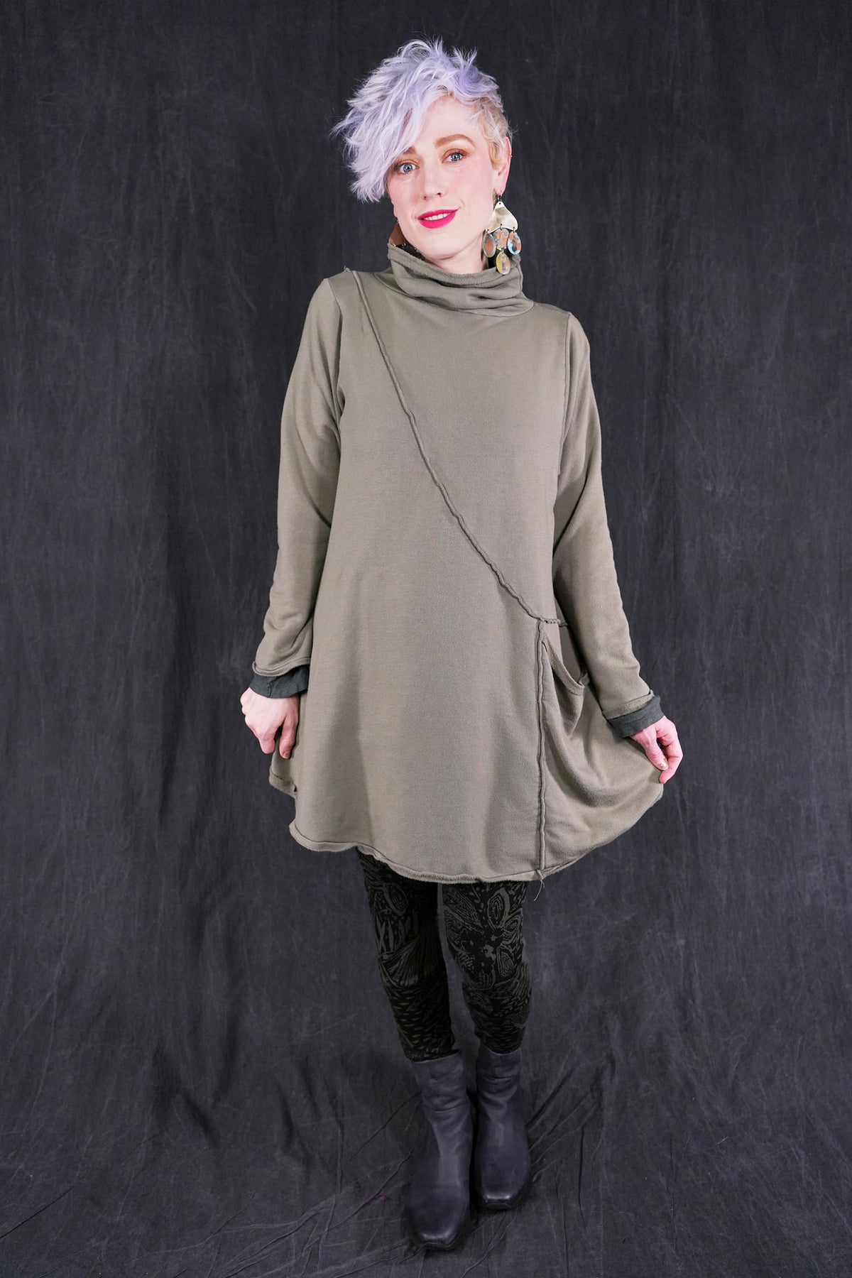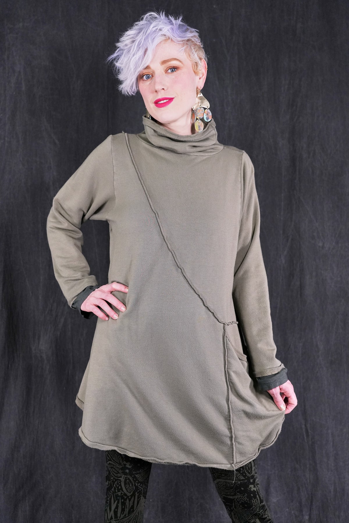 Well, we made too many and we want to share them with you- so here they are at a great price!  Made from incredibly soft organic cotton modal stretch fleece. Smooth outside, plush and cozy inside. or wear it reversed. Large off center pocket. Flattering seams and shape, will keep you warm without weighing you down. A great sweatshirt to layer!