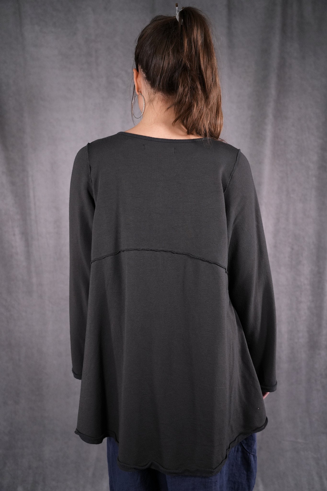 Made from incredibly soft organic cotton fleece, with a curved hem giving it a flattering shape and style. A piece that will mix with this collection as well as collections past .