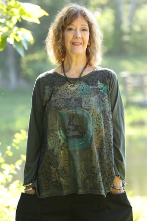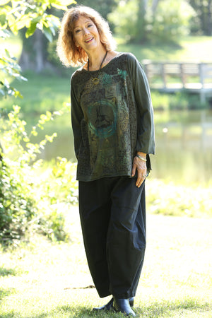 The classic Blue Fish cafe tee now with long sleeves for the season- in our perfect seasonless weight organic cotton jersey. The style features an A-line cut which is more fitted at the top, and which flatters nearly every body.
