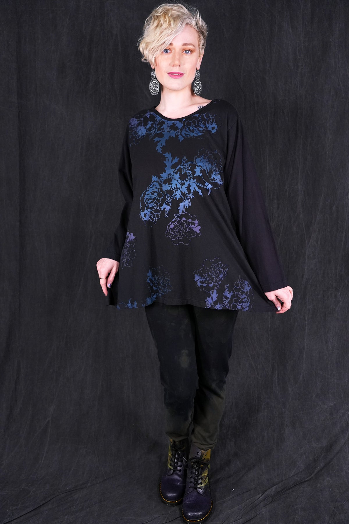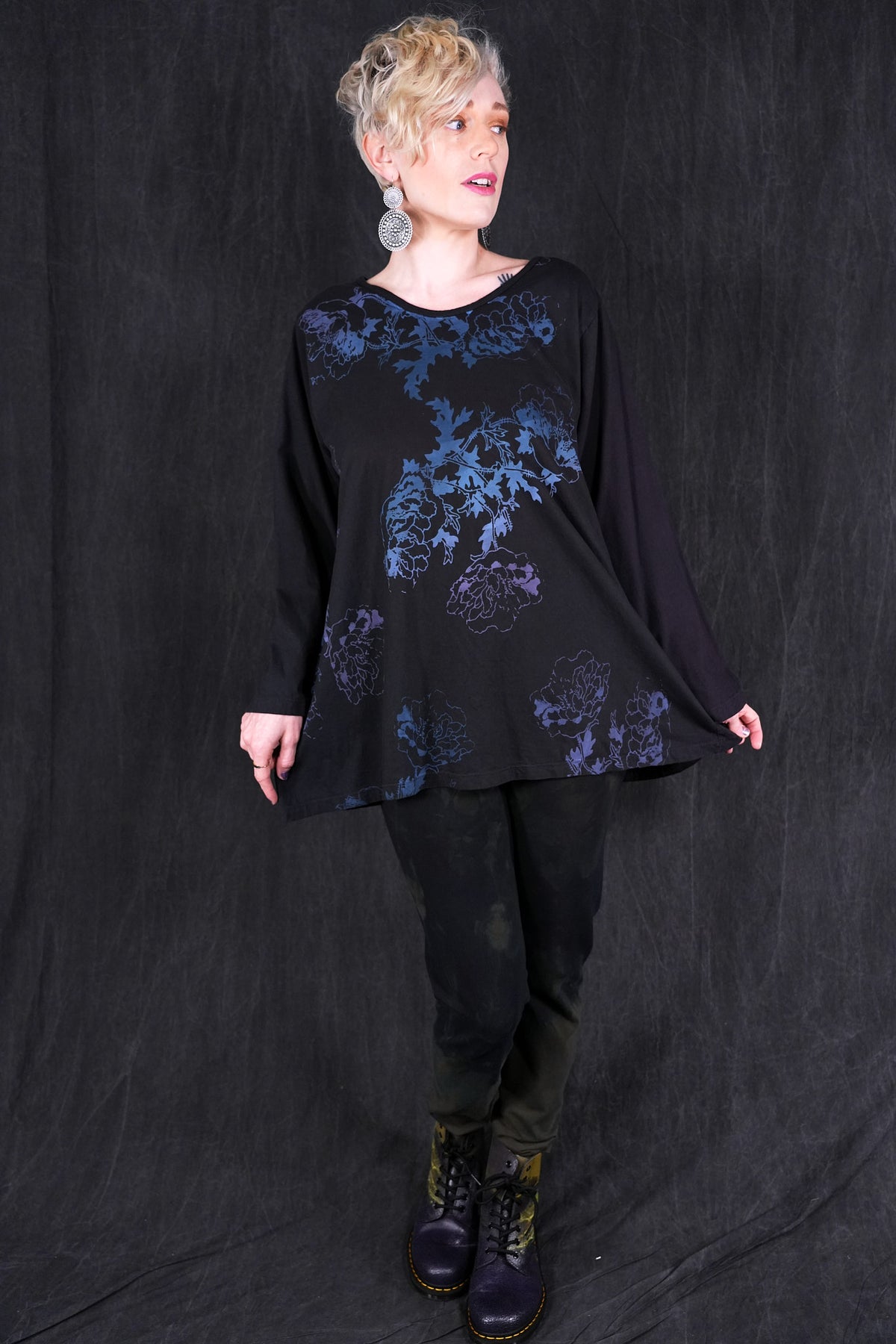 Perfect tee for any and every day. Slight scoop neck, long sleeves and soft a-line cut. Printed with love in our Iowa studio on our softest Blue Fish Organic cotton jersey.