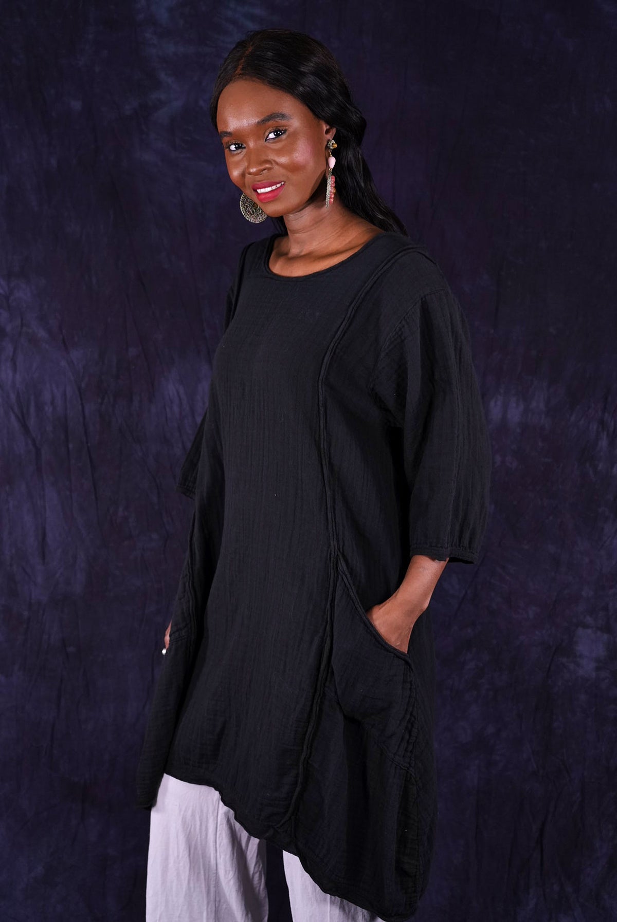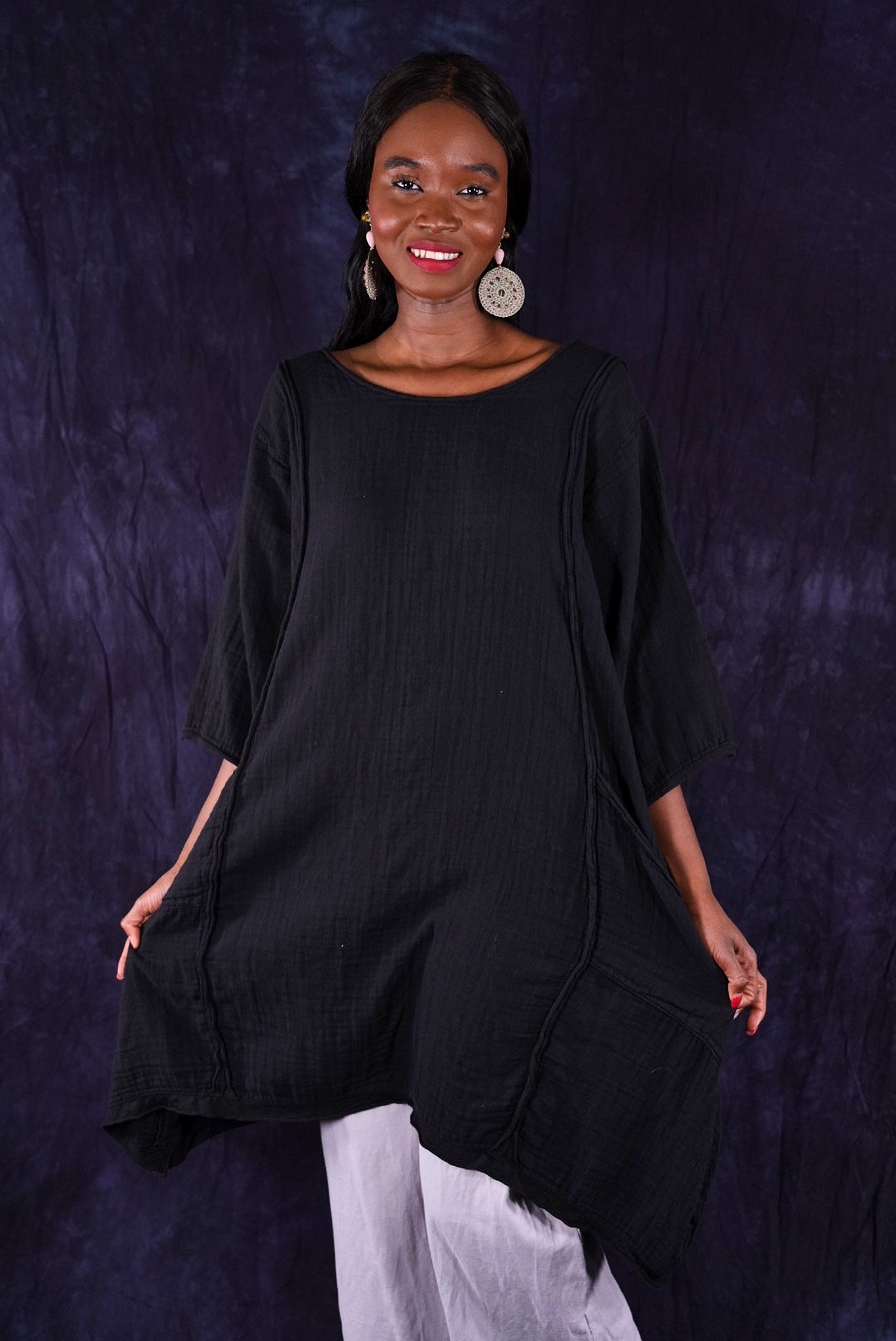 Perfect ease, easy to wash and wear, not wrinkly, Cool cotton woven double gauze which can of course be worn to lunch or dressed up for an evening out.