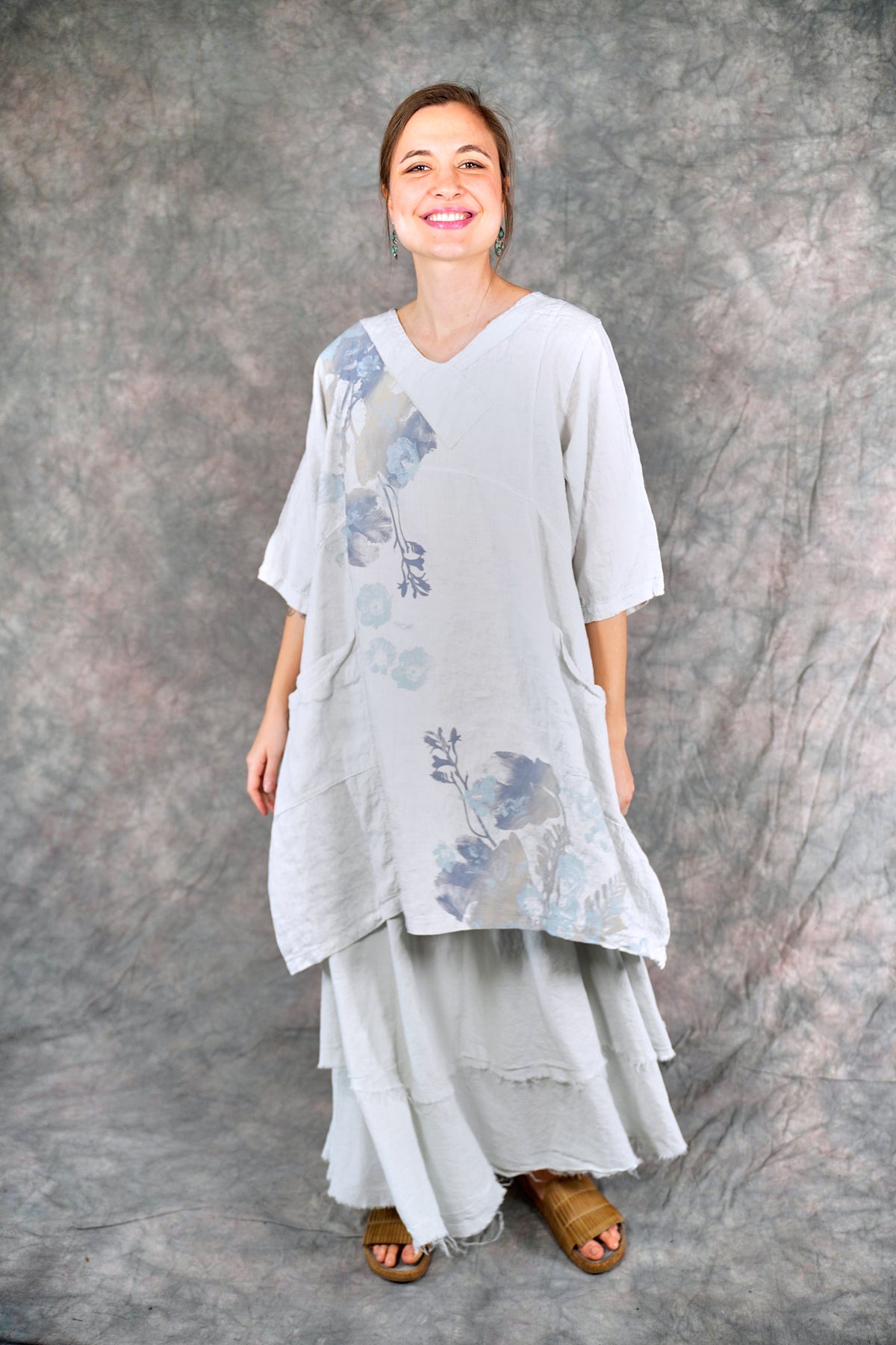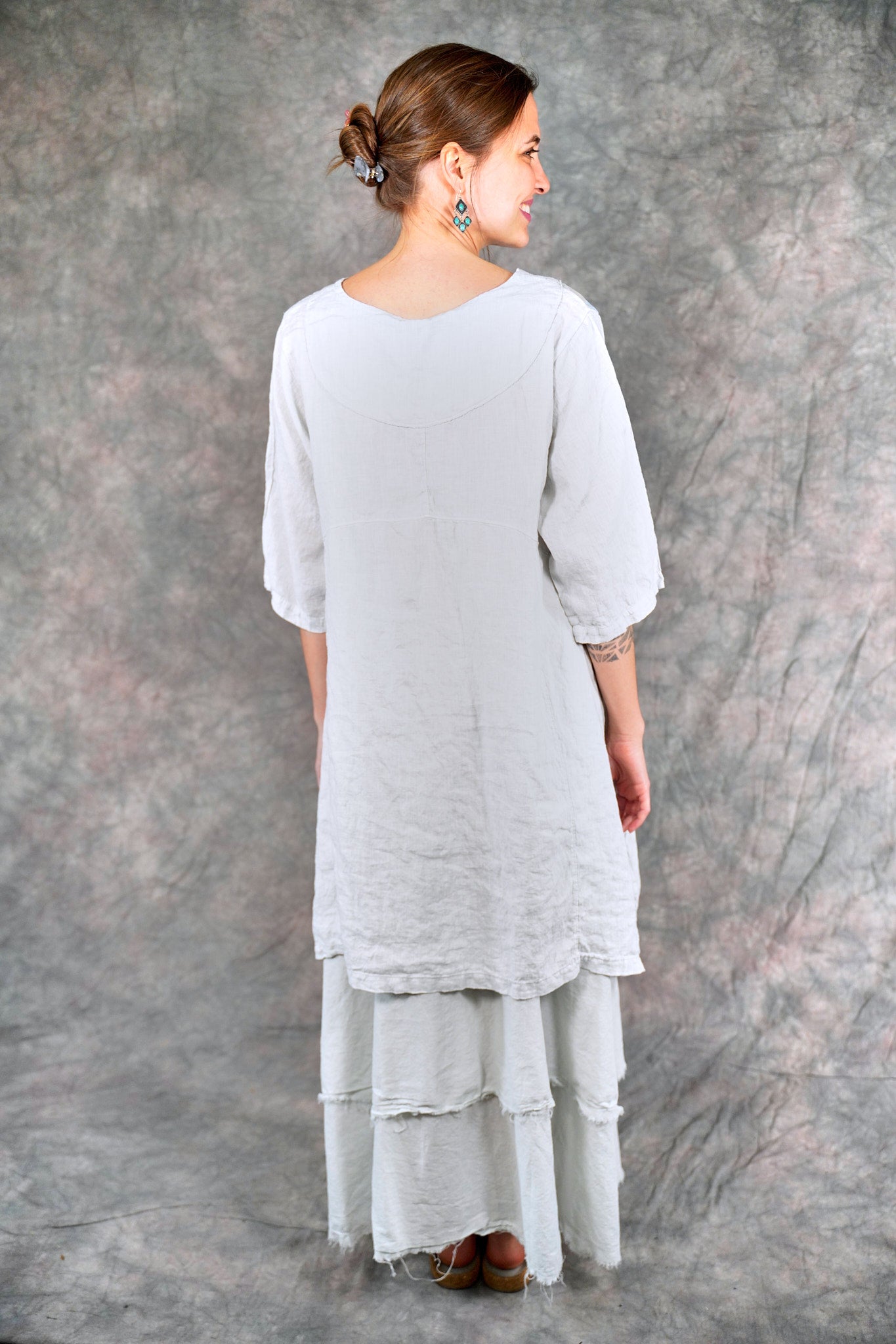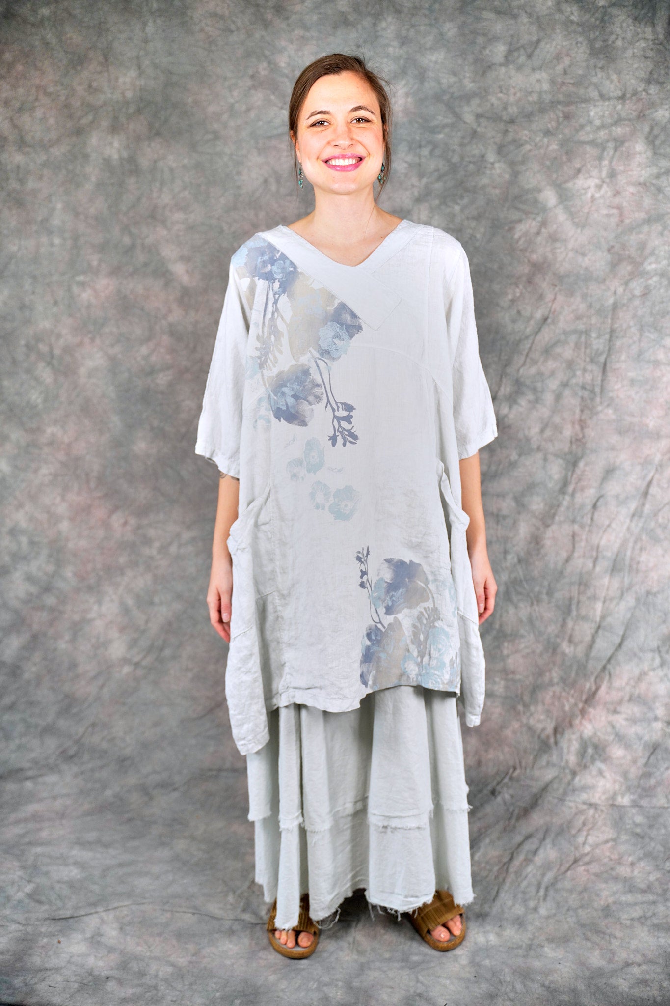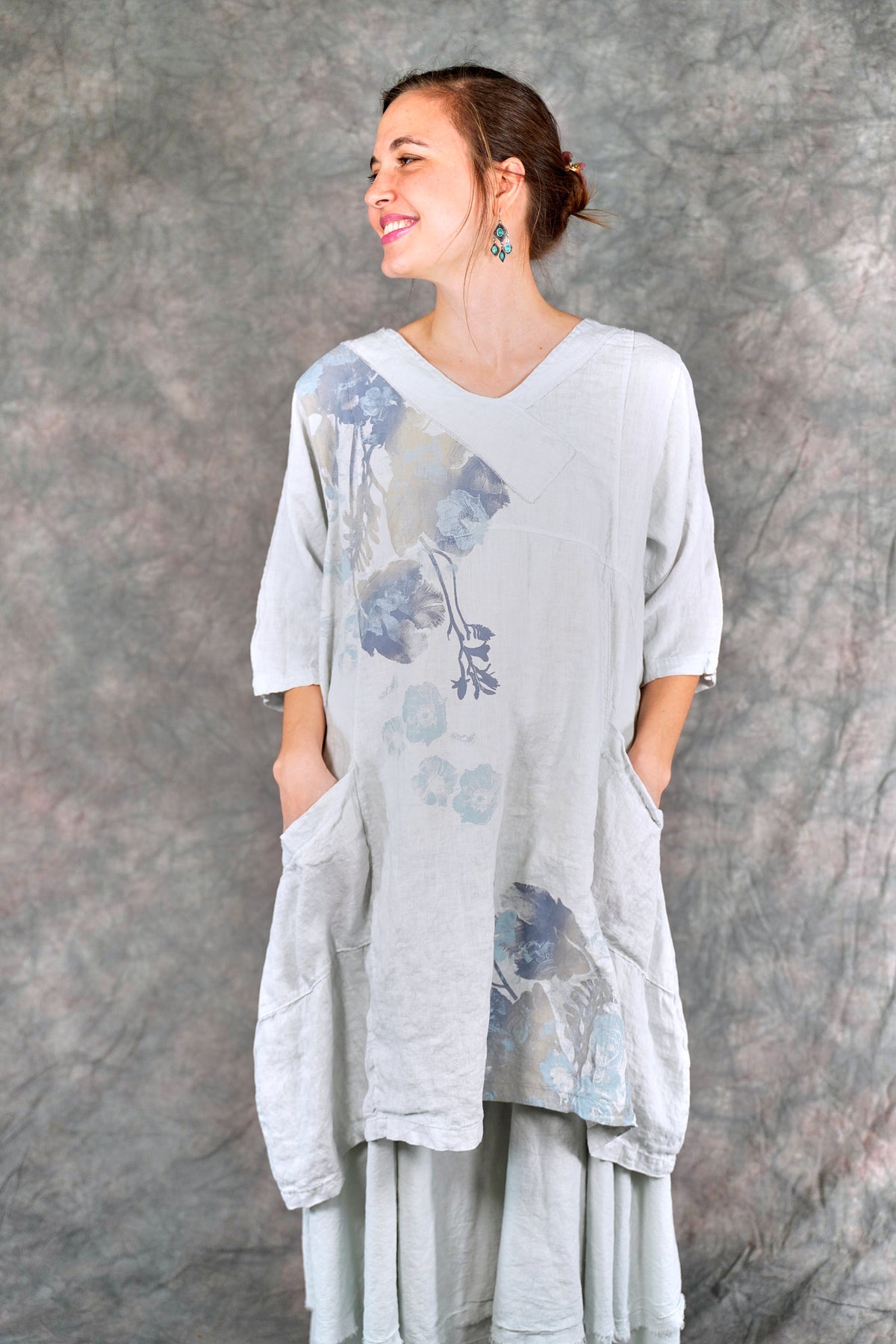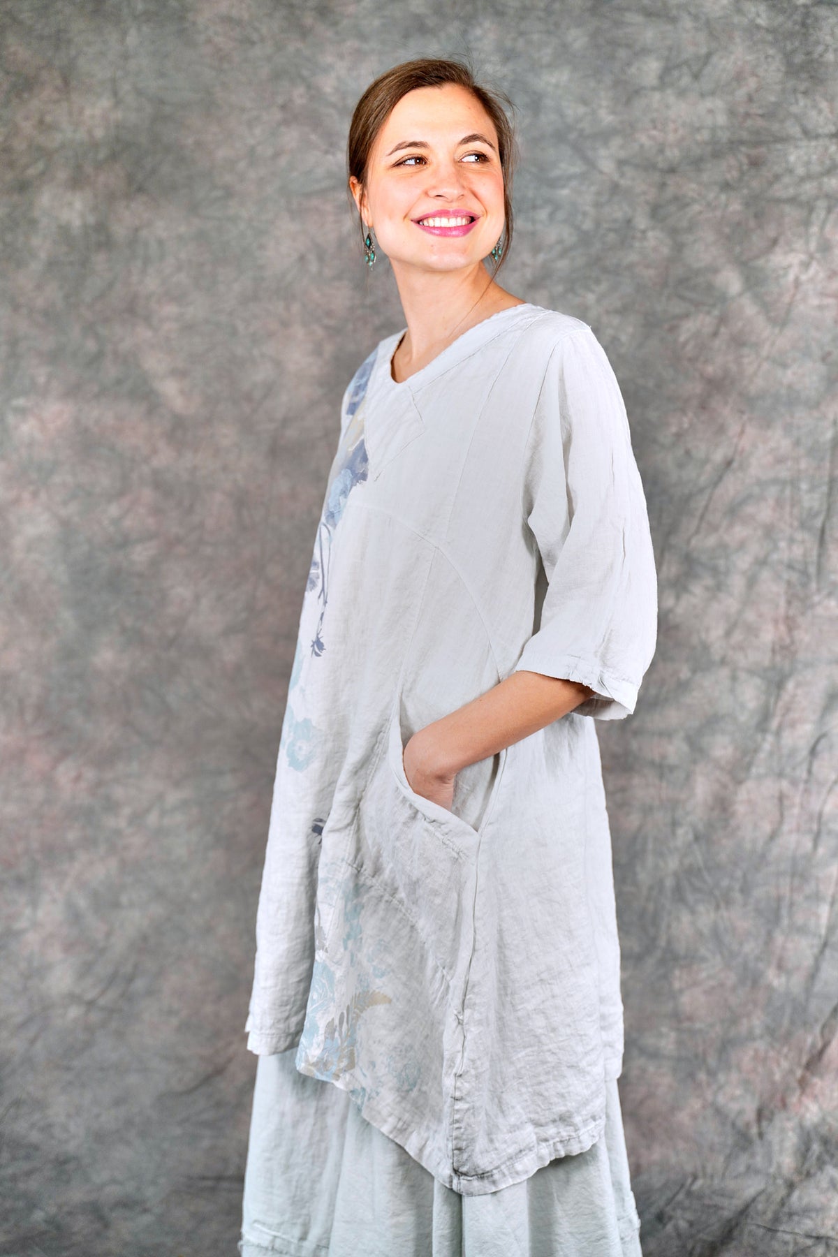 The Crossover Urchin Tunic is a Blue Fish classic. Made from soft 100% linen. The bodice is a gentle A-line with a slight taper at the curved hem for subtle shaping. Wear it over pants or skirt. Generous pockets and beautiful neckline make it a favorite.