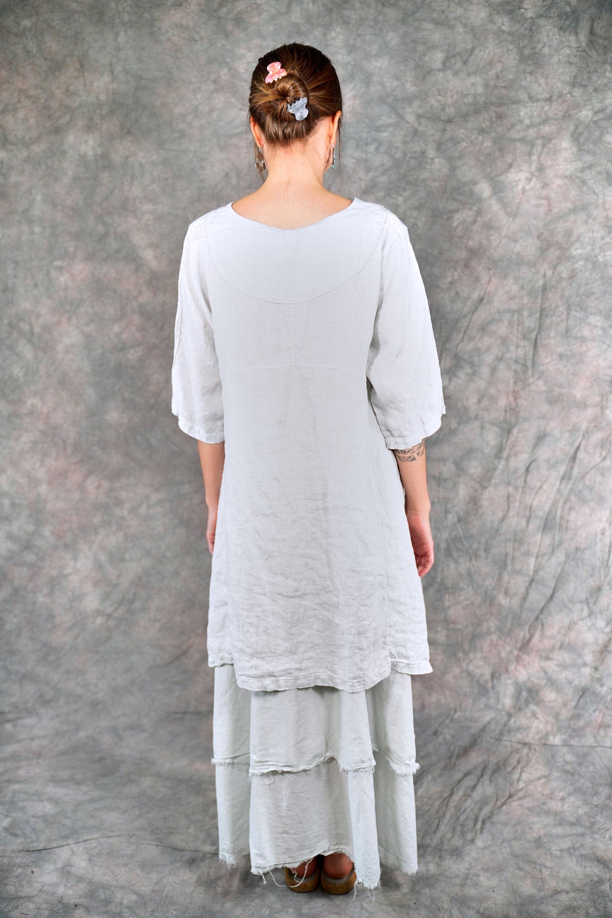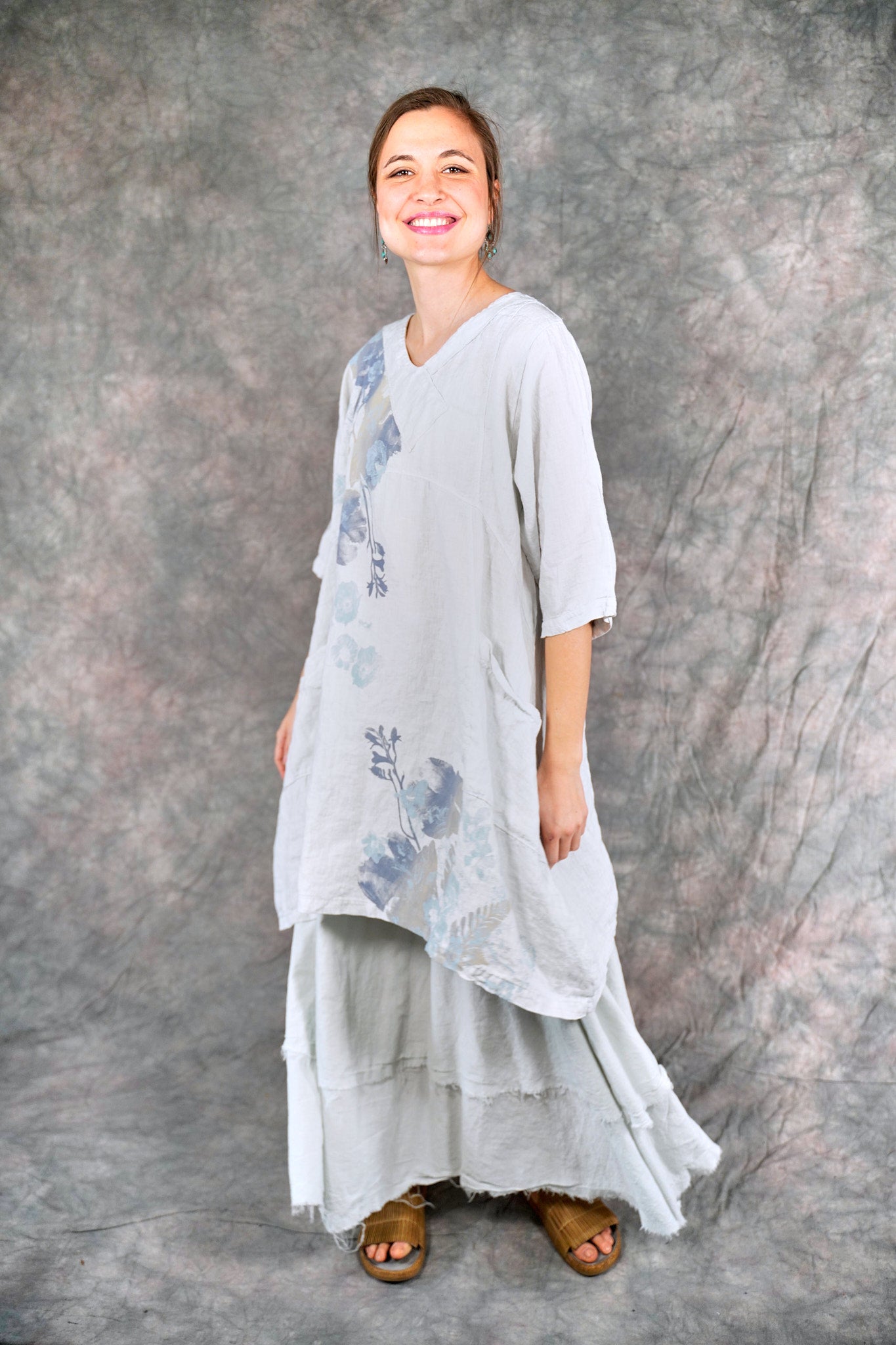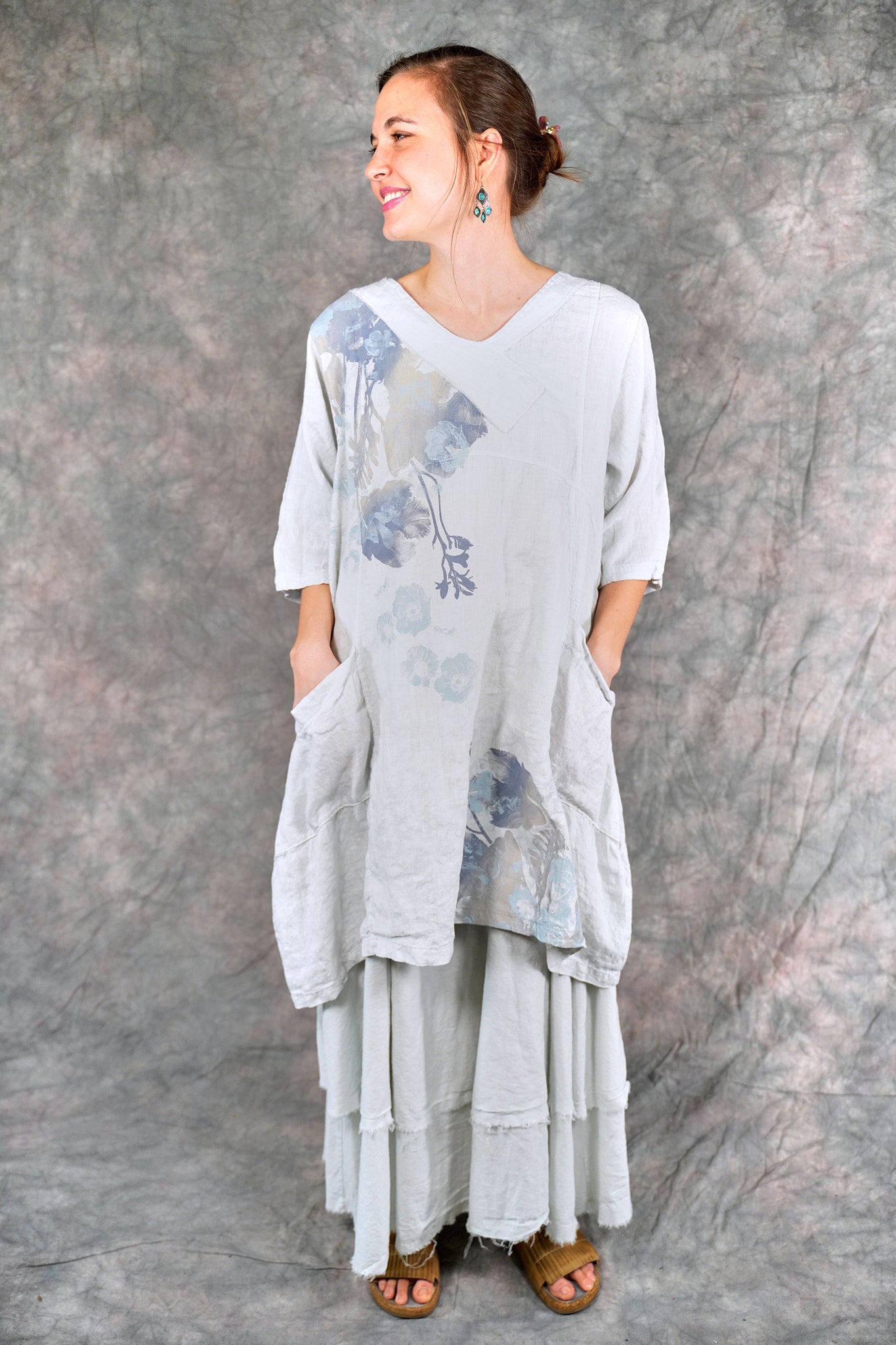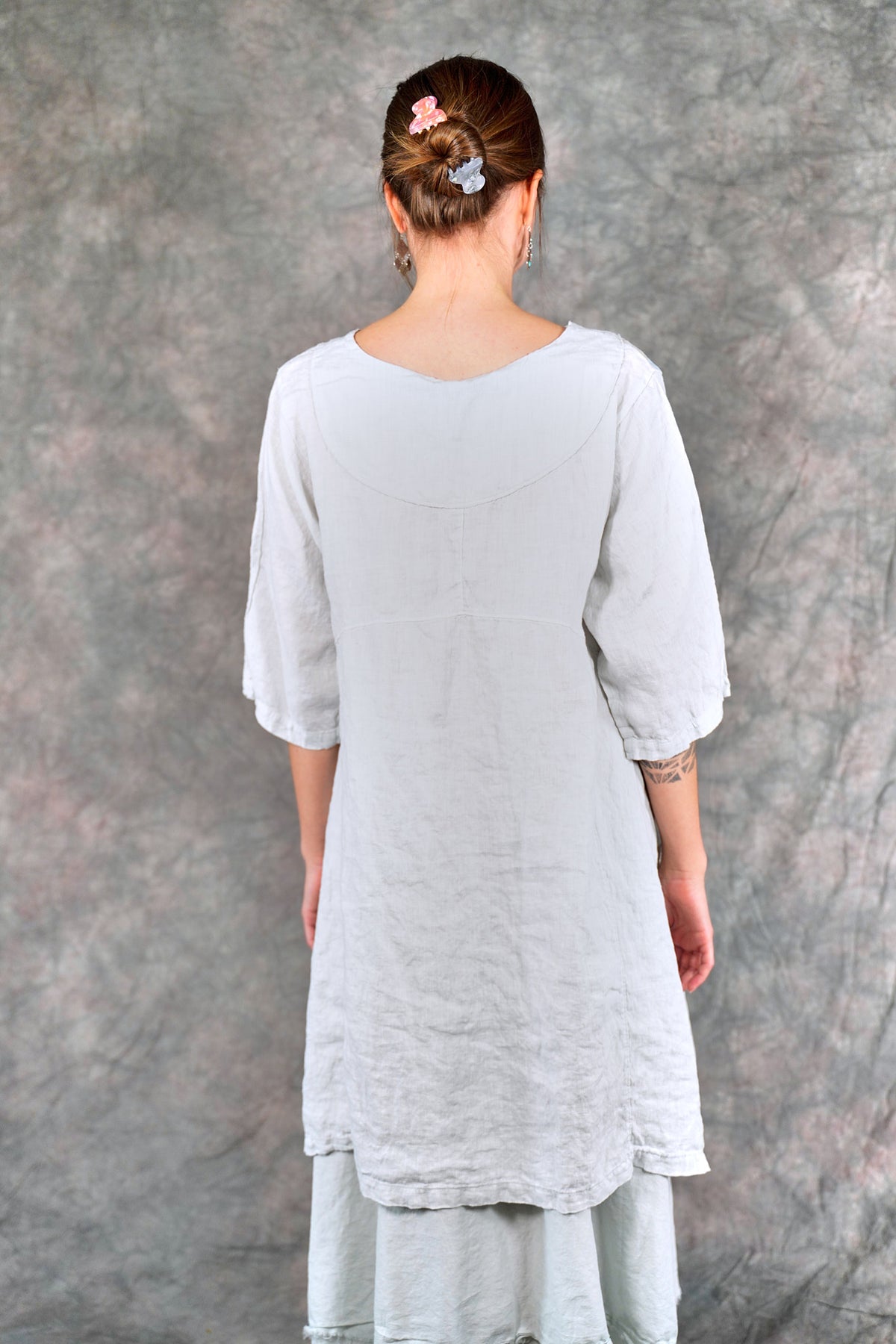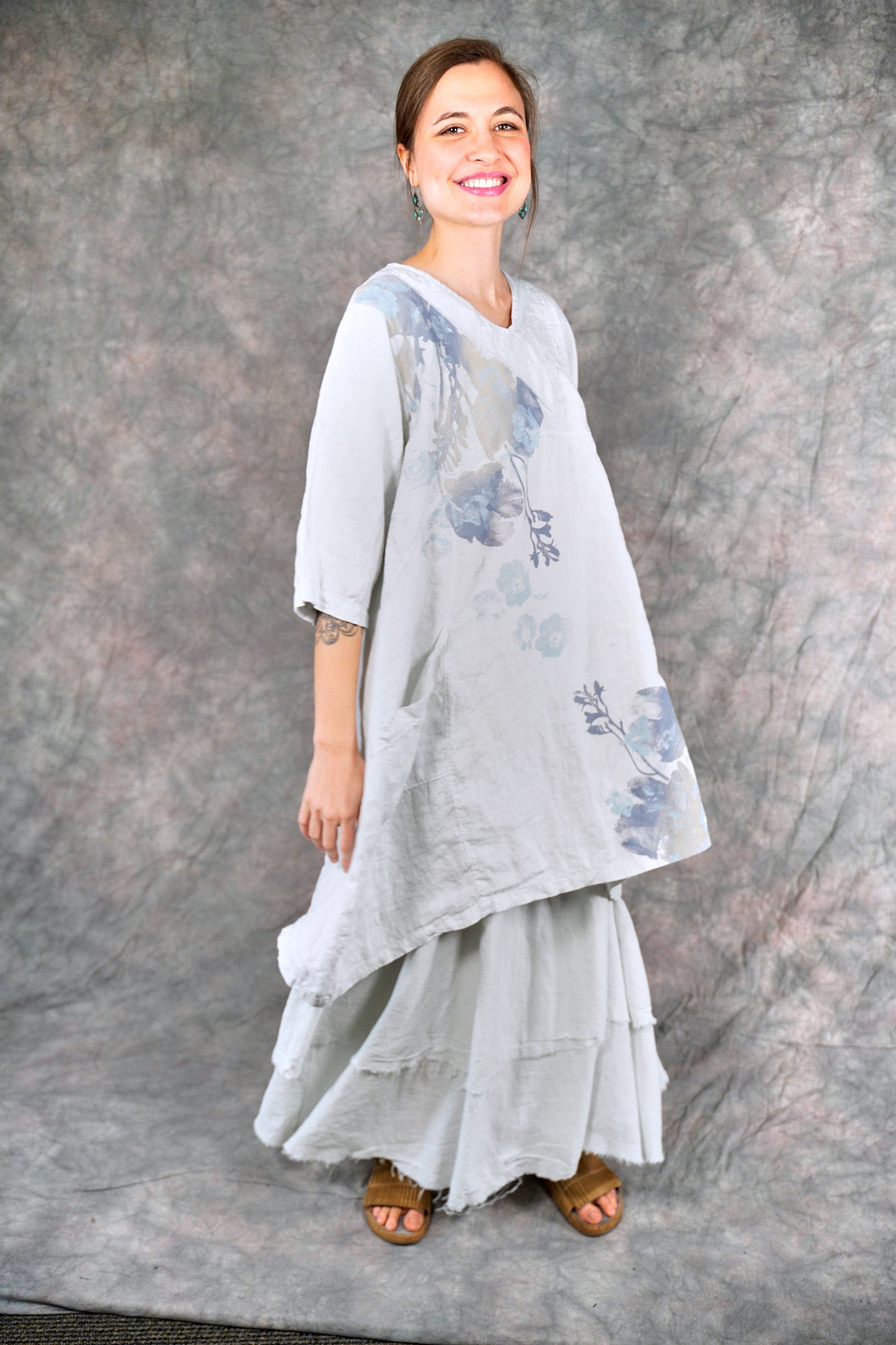 The Crossover Urchin Tunic is a Blue Fish classic. Made from soft 100% linen. The bodice is a gentle A-line with a slight taper at the curved hem for subtle shaping. Wear it over pants or skirt. Generous pockets and beautiful neckline make it a favorite.