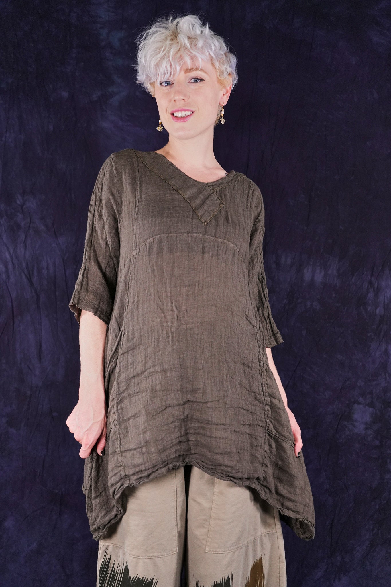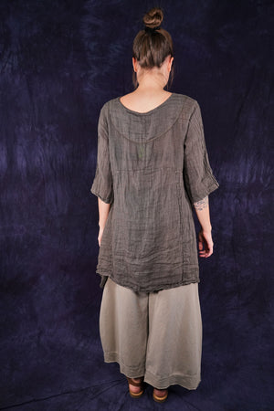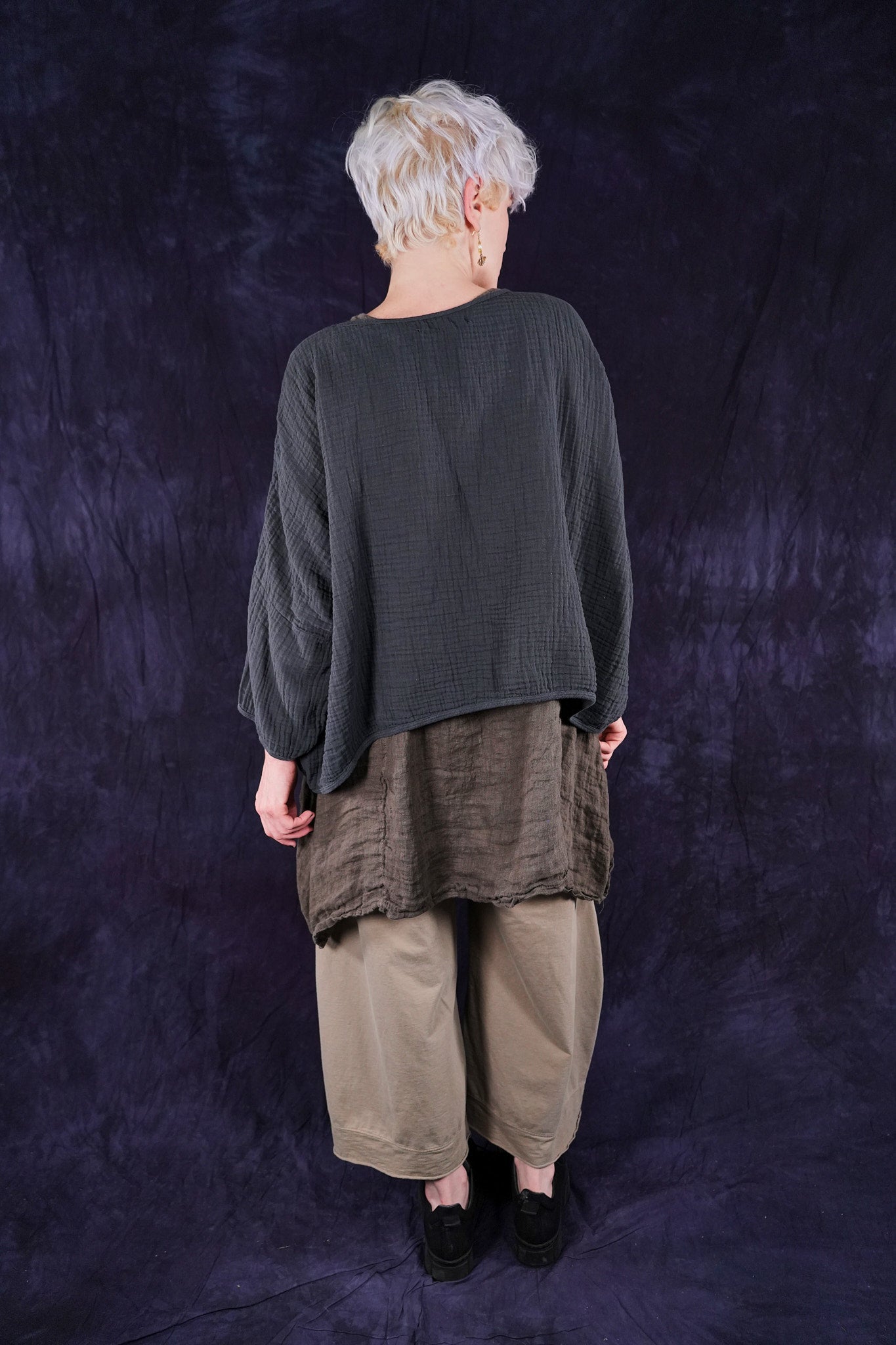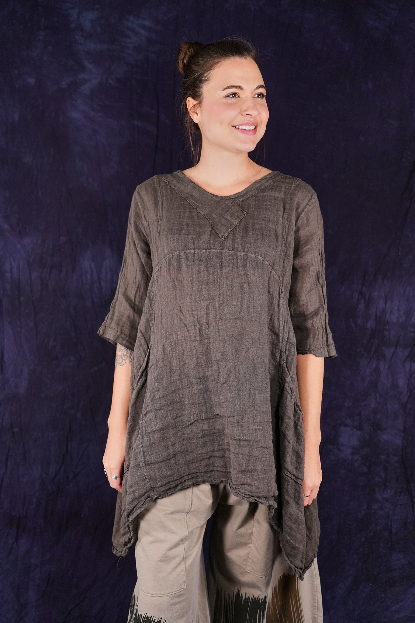 Happy color in gauzey textured linen, with the crossover neckline and pockets you love. Color is a vibrant crayon yellow, a nice richer/bright tone- not lemon yellow. This is the piece, one of our classics and all time favorites! It has the shape of the Urchin tunic with the gorgeous crossover neckline. The linen fabric is soft and breathable . Wear over pants, skirts or dresses it will make you happy... Try it with our #3353 Crop Gauze/Lawn Petaloon or the #4184 Airy Skirt.
