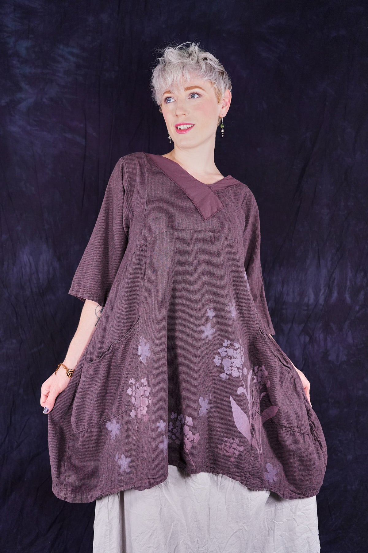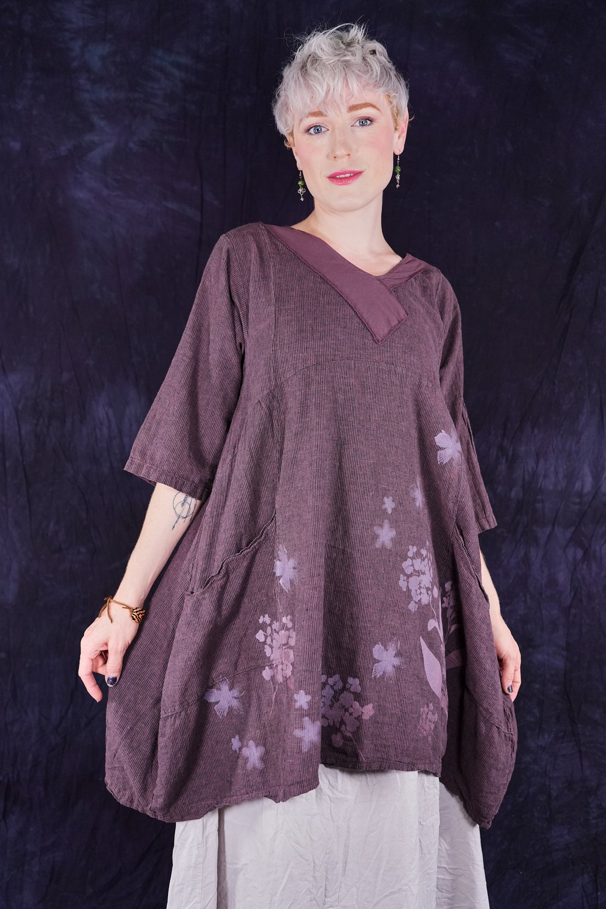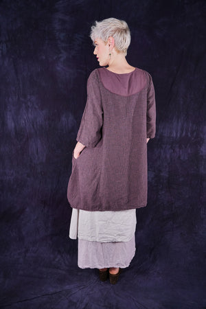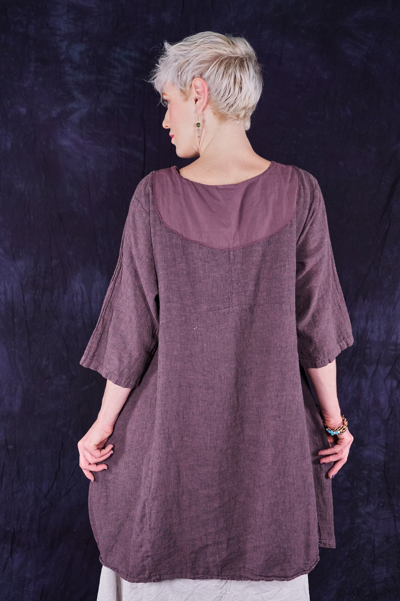 This is the piece, one of our classics and all time favorites! It has the shape of the Urchin tunic with the gorgeous crossover neckline. The fabric is soft and breathable with tiny stripes. Wear over pants, skirts or dresses it will make you feel happy...