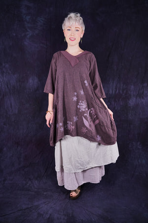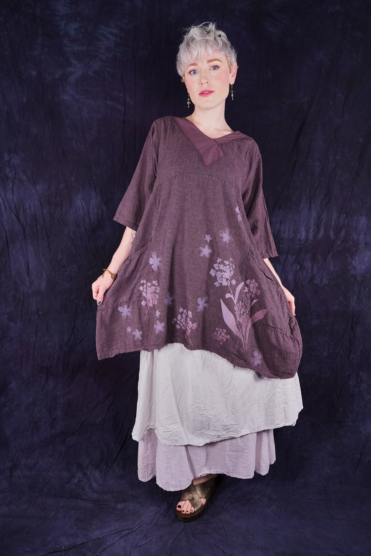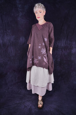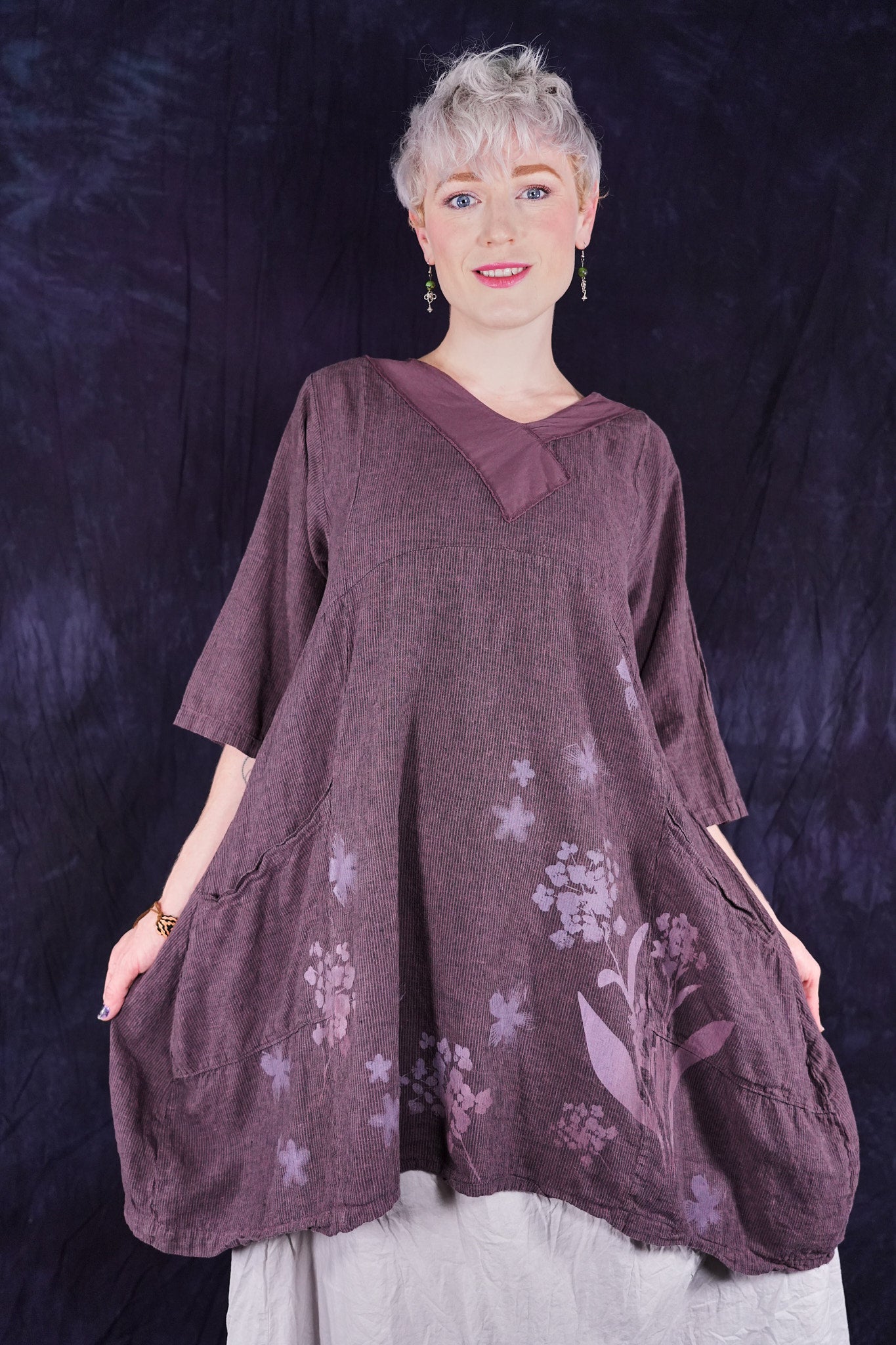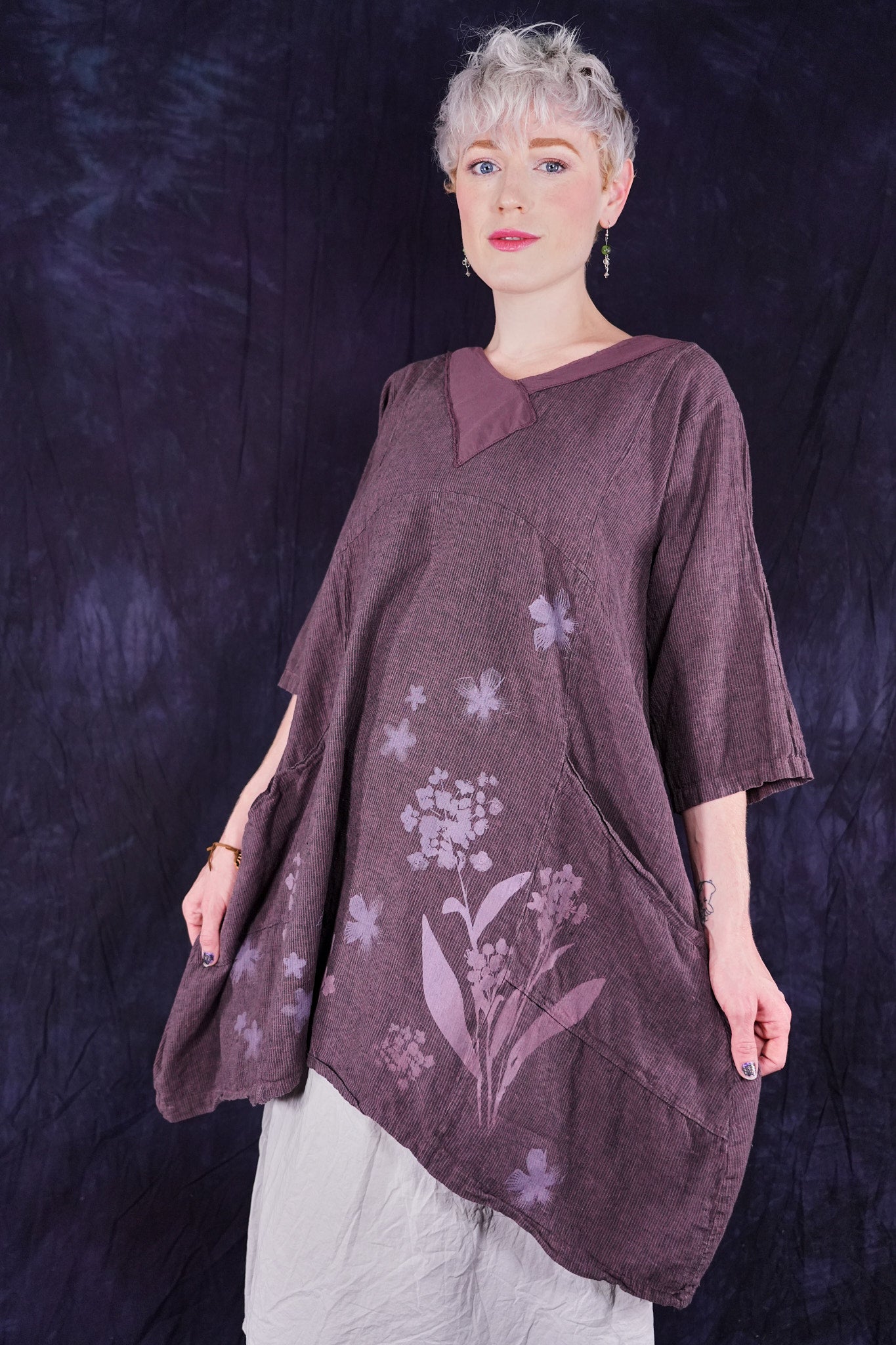This is the piece, one of our classics and all time favorites! It has the shape of the Urchin tunic with the gorgeous crossover neckline. The fabric is soft and breathable with tiny stripes. Wear over pants, skirts or dresses it will make you feel happy...