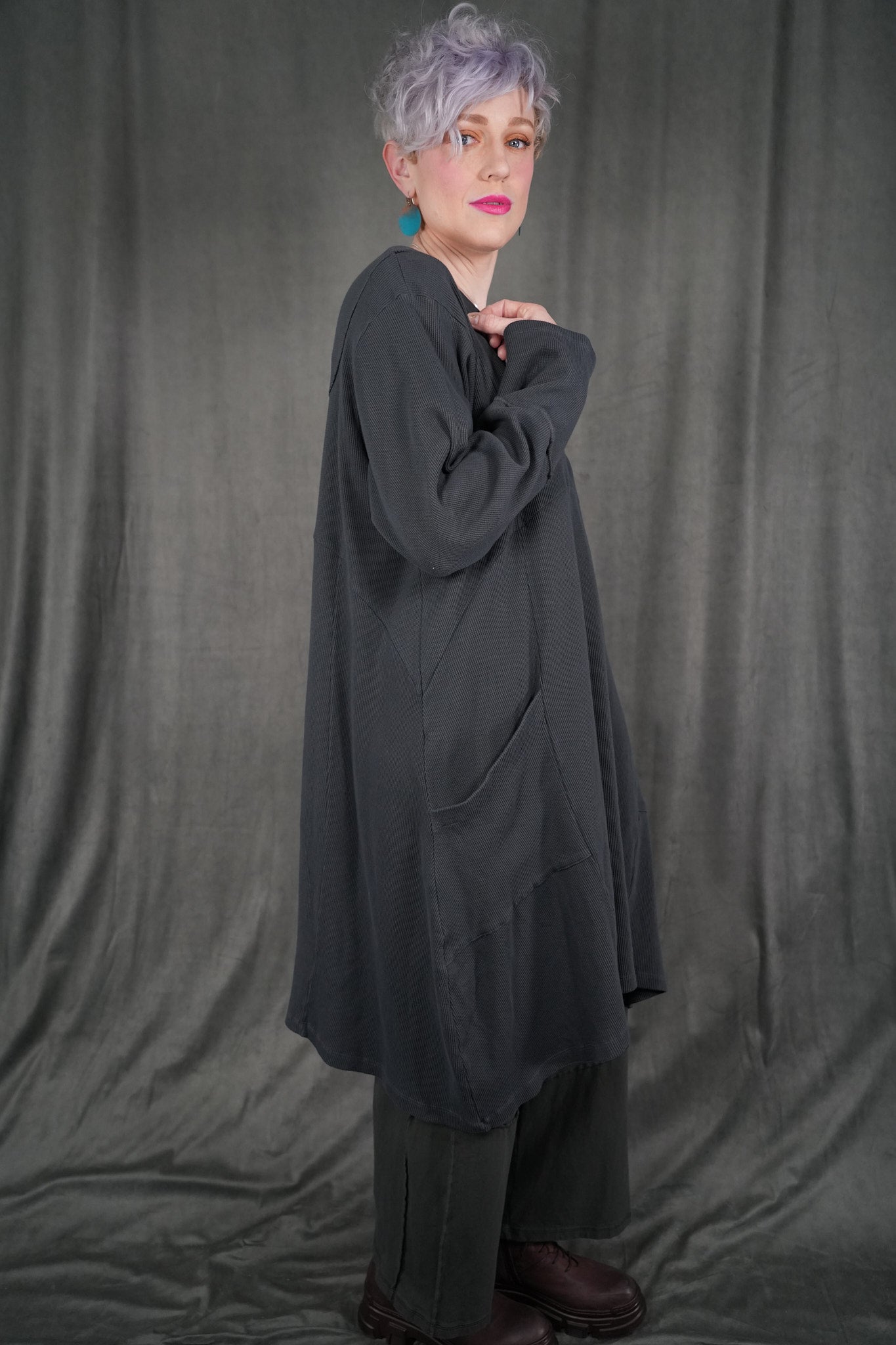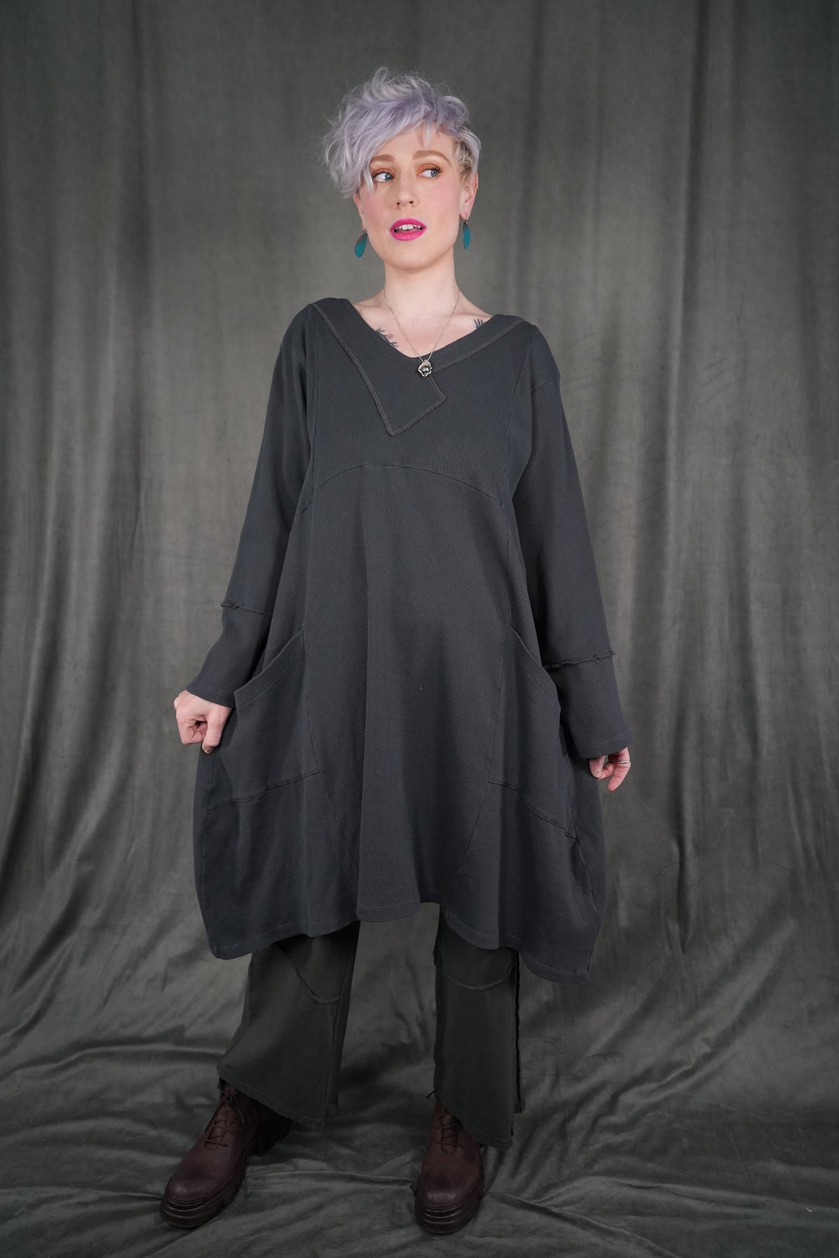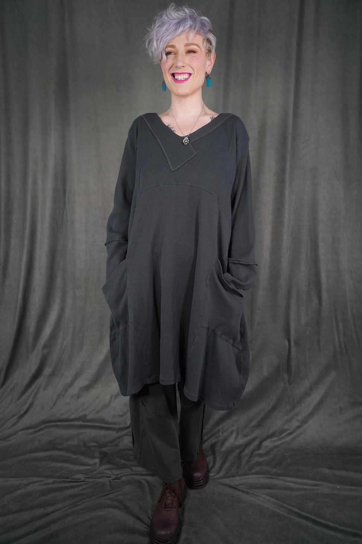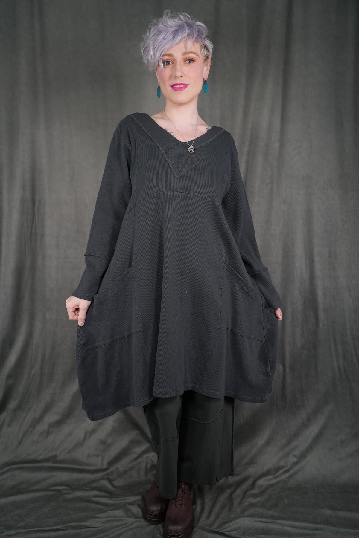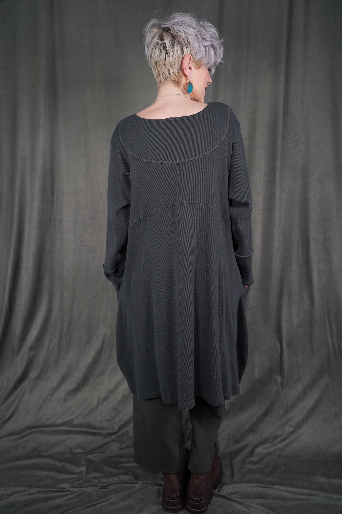 The thermal dress of the season. Dress it up or down. Made from 100% organic cotton , styled to wear over pants , a skirt or another dress. The urchin is our favorite style and now it is in thermal. The bodice is a gentle A-line with a slight taper at the curved hem for subtle shaping. Generous pockets and beautiful neckline make it a favorite.