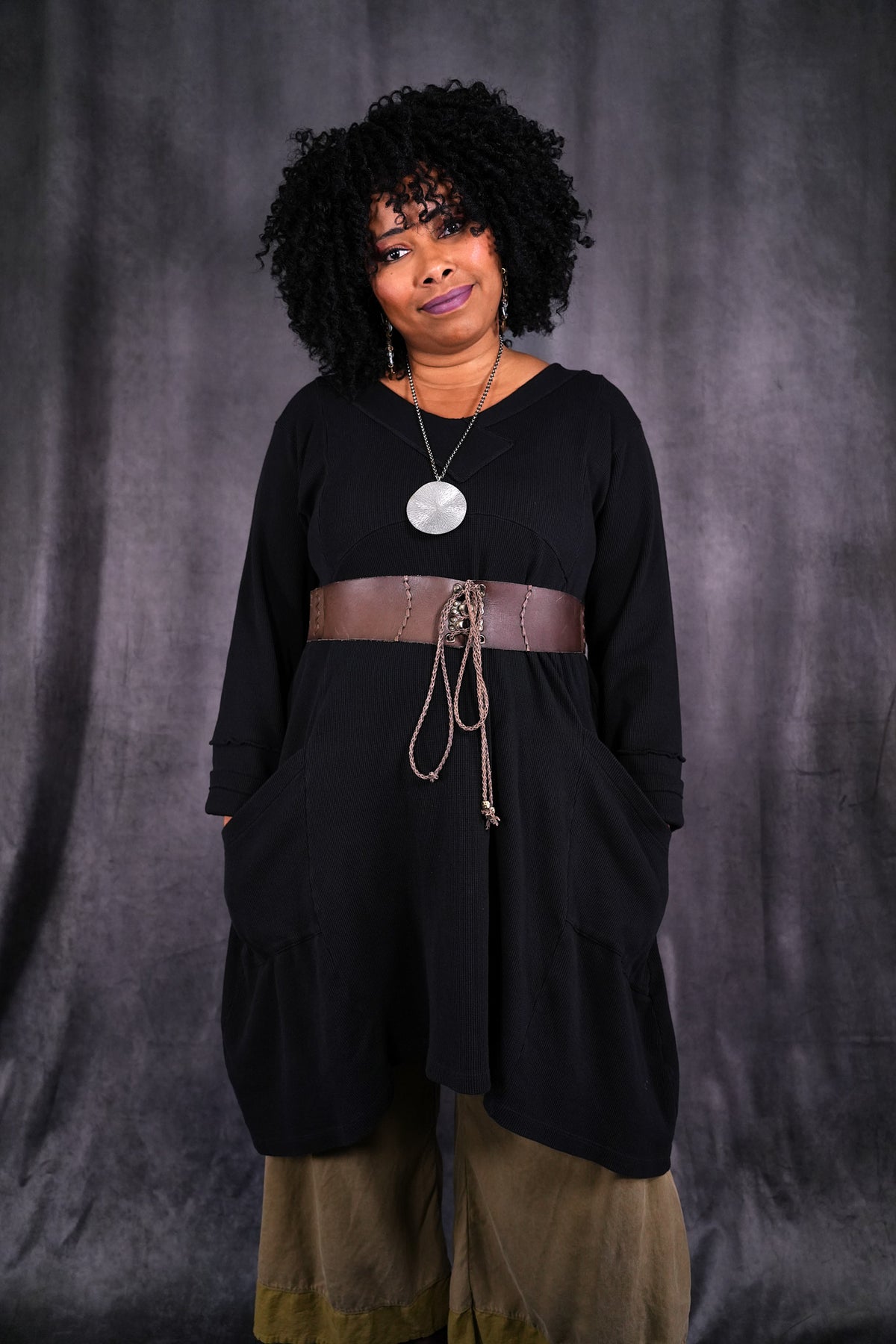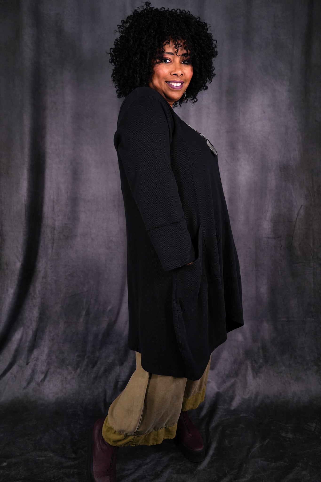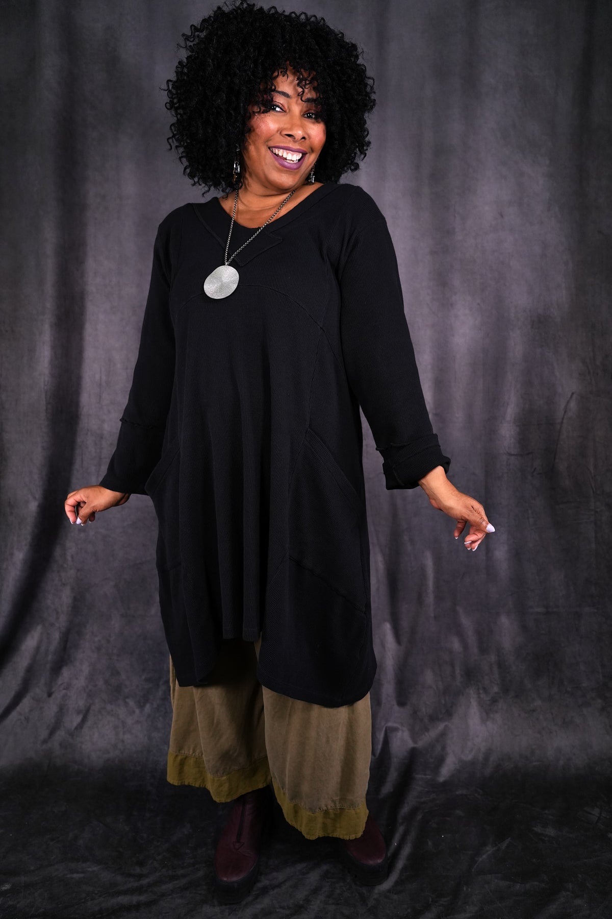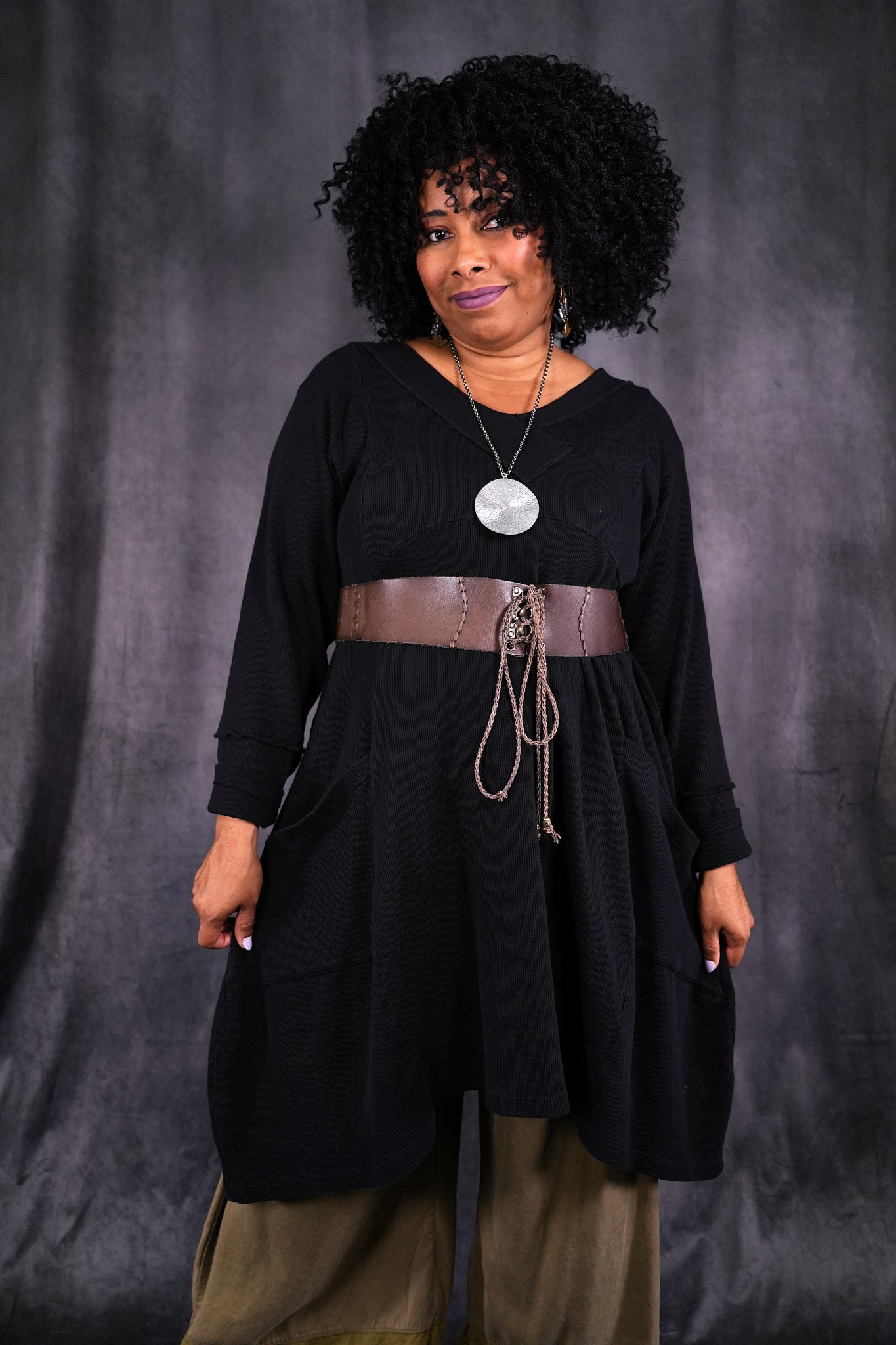 The thermal dress of the season. Dress it up or down. Made from 100% organic cotton , styled to wear over pants , a skirt or another dress. The urchin is our favorite style and now it is in thermal. The bodice is a gentle A-line with a slight taper at the curved hem for subtle shaping. Generous pockets and beautiful neckline make it a favorite.