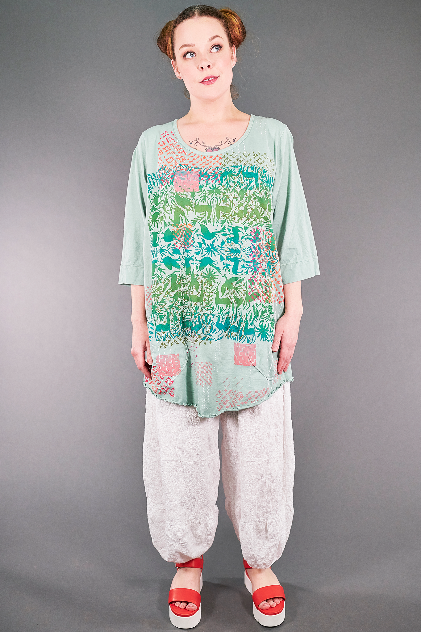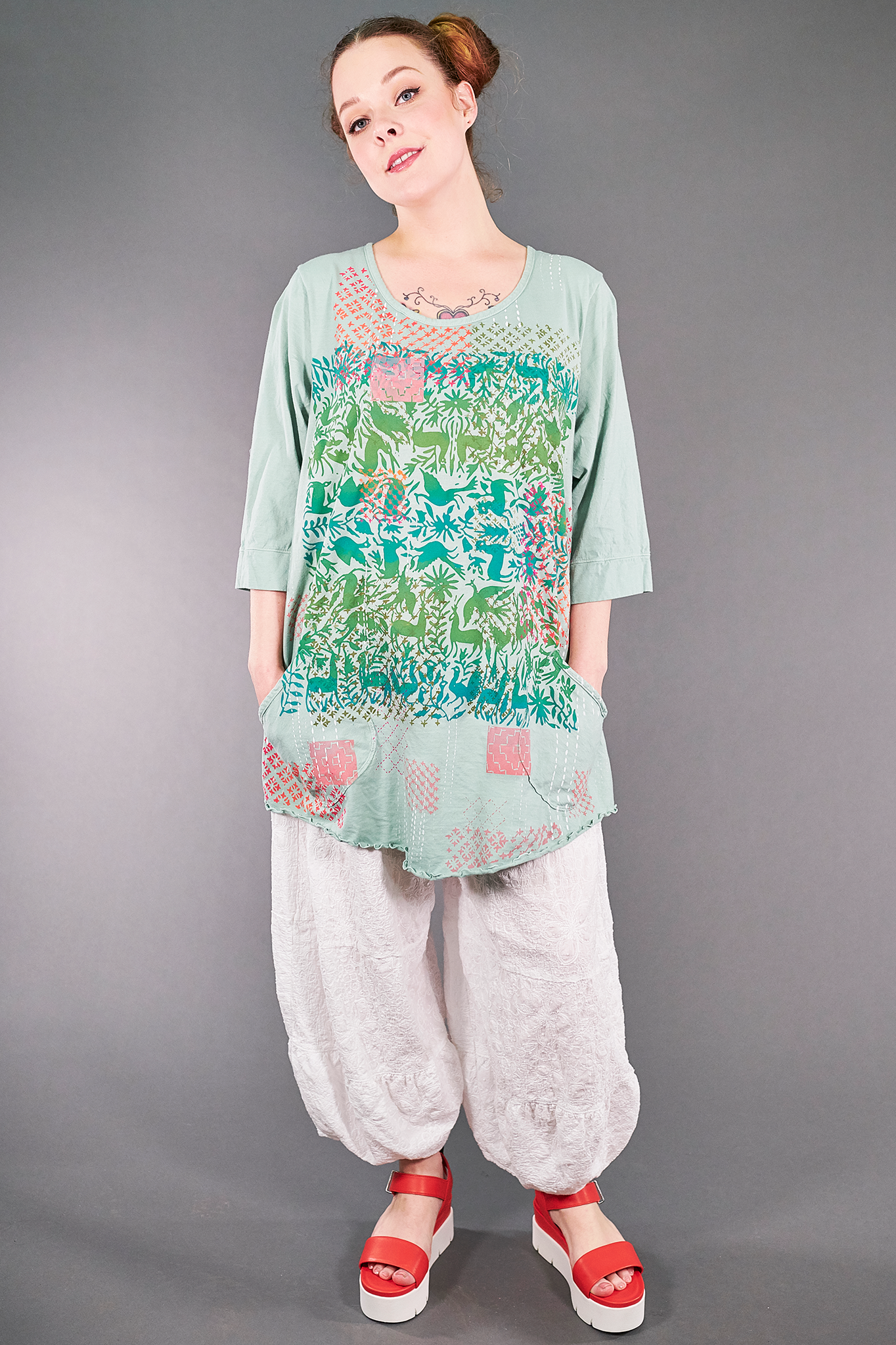 We adore this sweet top: It is the perfect blend of elegance, artistry, & practicality. Imagine wearing this to lunch at a cafe, on a stroll through town on a picturesque spring day, or even gardening or painting (hello, pockets!). Printing on the front from our Iowa studio is so dreamy that you’ll want to wear this every day.
